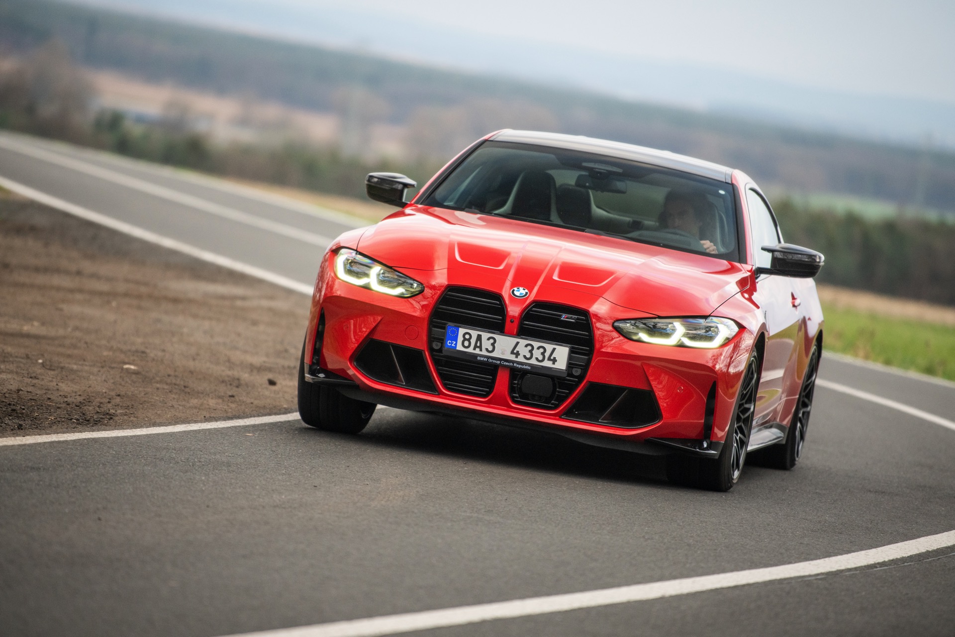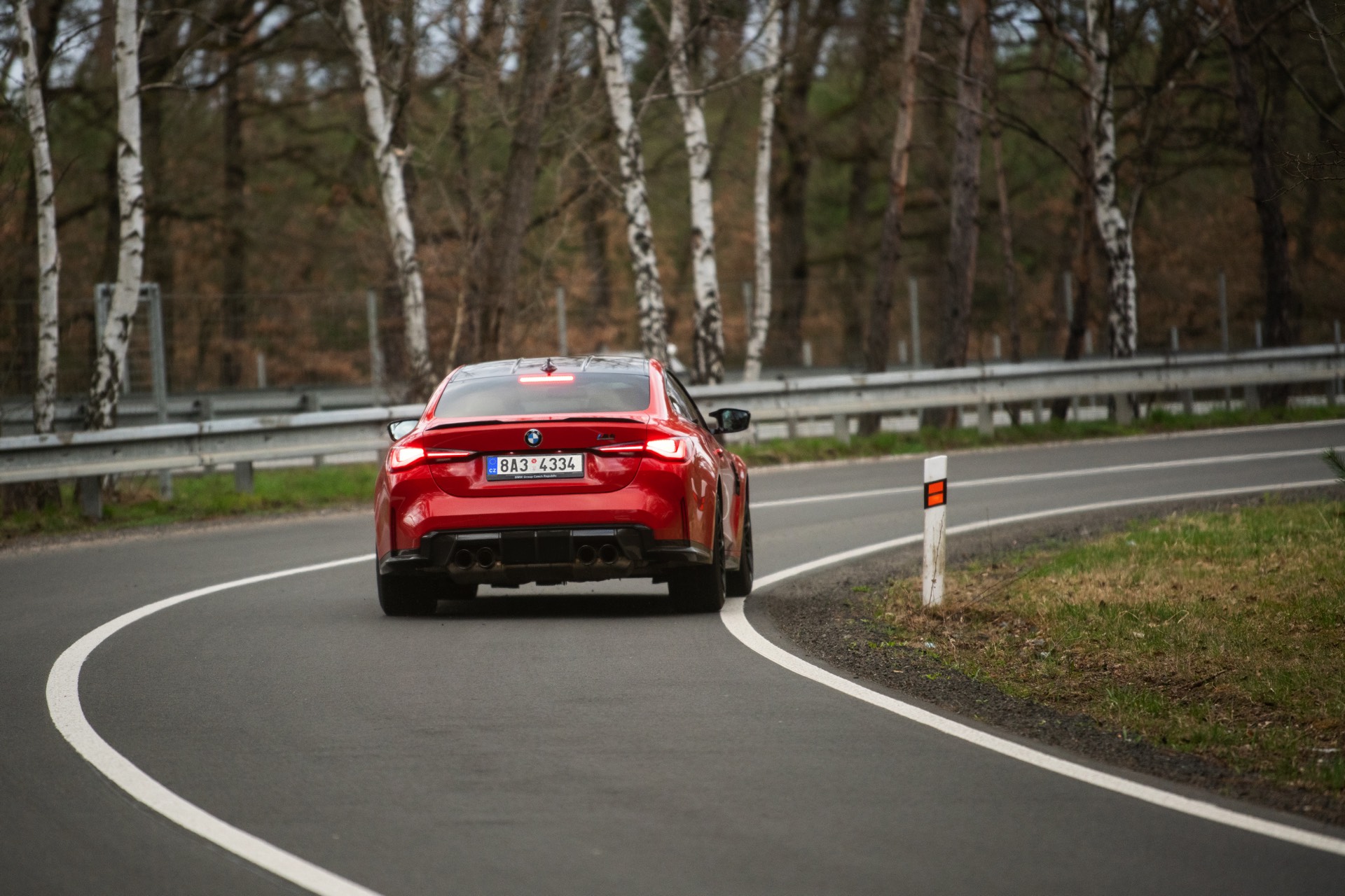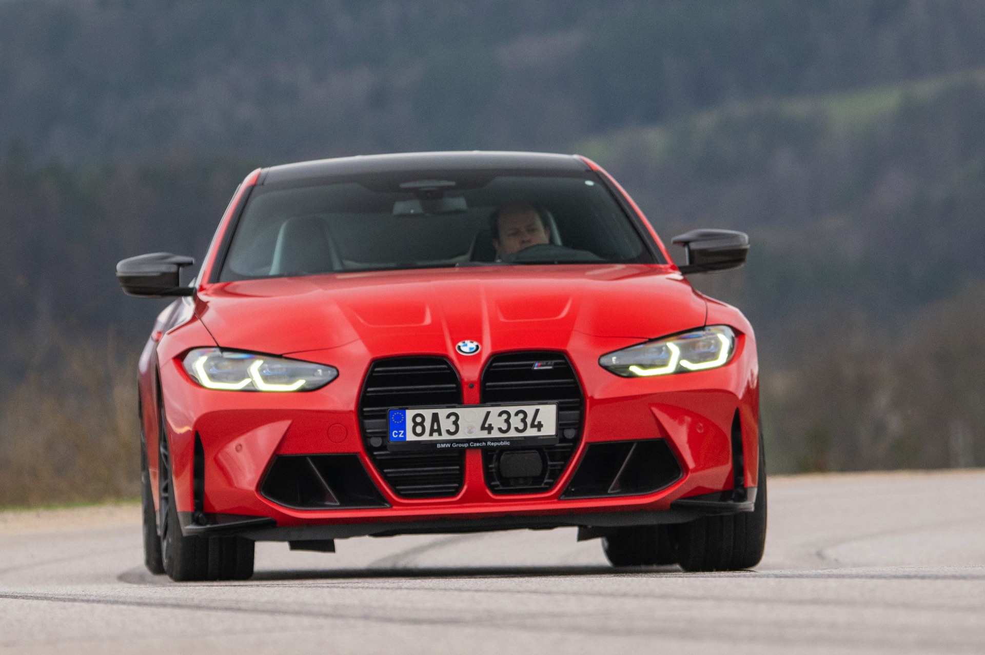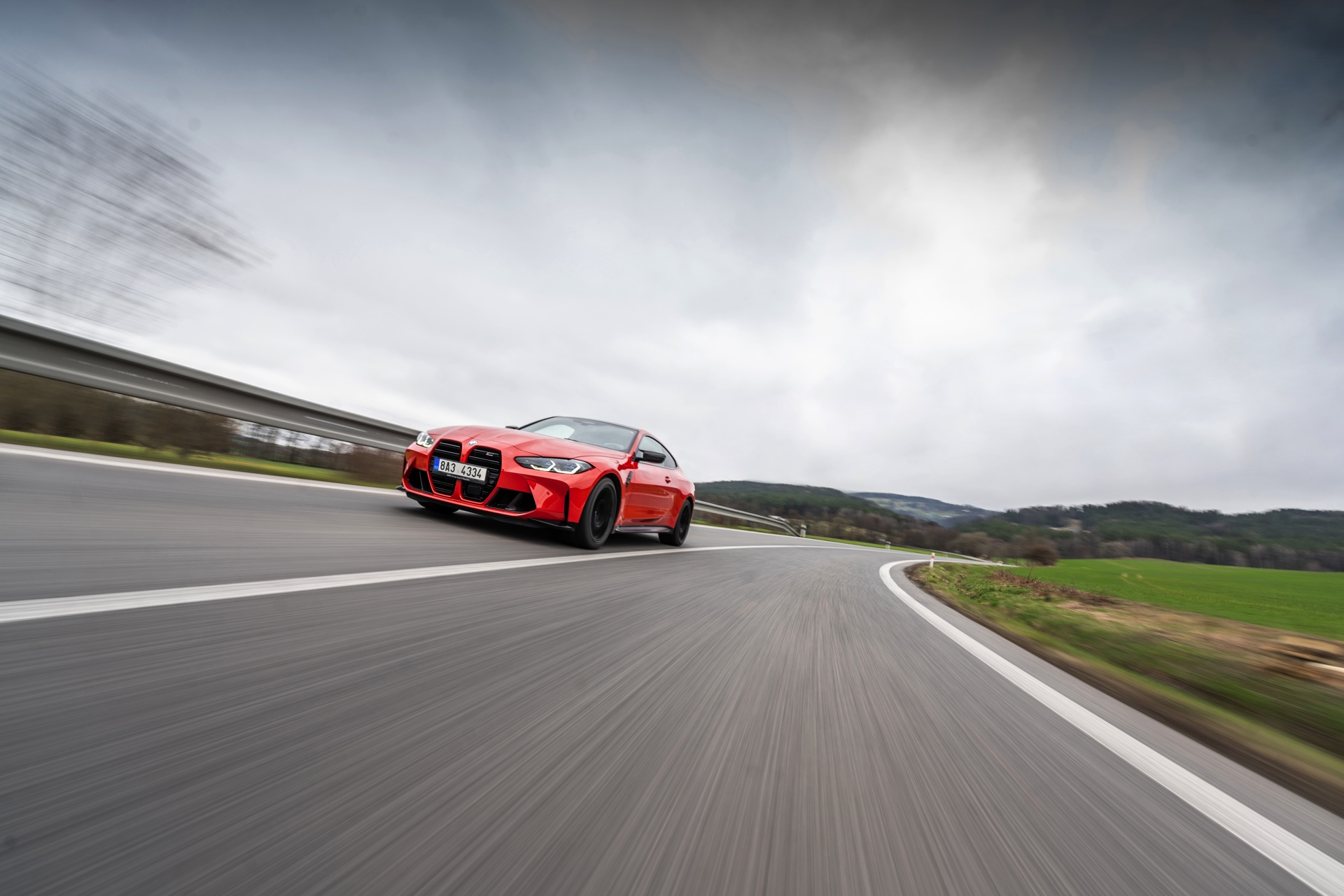 Die Freude am Querfahren ist auch auf einigen der offiziellen Fotos von der Präsentation in der Tschechischen Republik unübersehbar. Auf den Bildern aus dem Nachbarland stehen der BMW M3 Competition G80 in Tansanitblau und der BMW M4 Competition G82 in Toronto Rot im Mittelpunkt: