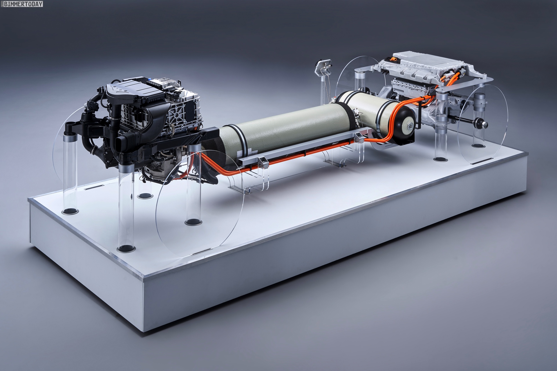 In der Brennstoffzelle werden bei der Reaktion von Wasserstoff und Sauerstoff kontinuierlich bis zu 125 kW elektrische Energie erzeugt, einziges Produkt der Reaktion ist reines Wasser. Die in einem Lithium-Ionen-Akku gesammelte Energie wird von einem bis zu 275 kW (374 PS) starken BMW eDrive-Motor der fünften Generation an die Räder geschickt und so schließlich erfahrbar. Wie sich ein solches Technik-Paket für den Fahrer anfühlt, durften wir bereits vor mehreren Jahren am Steuer eines früheren Prototypen erfahren.