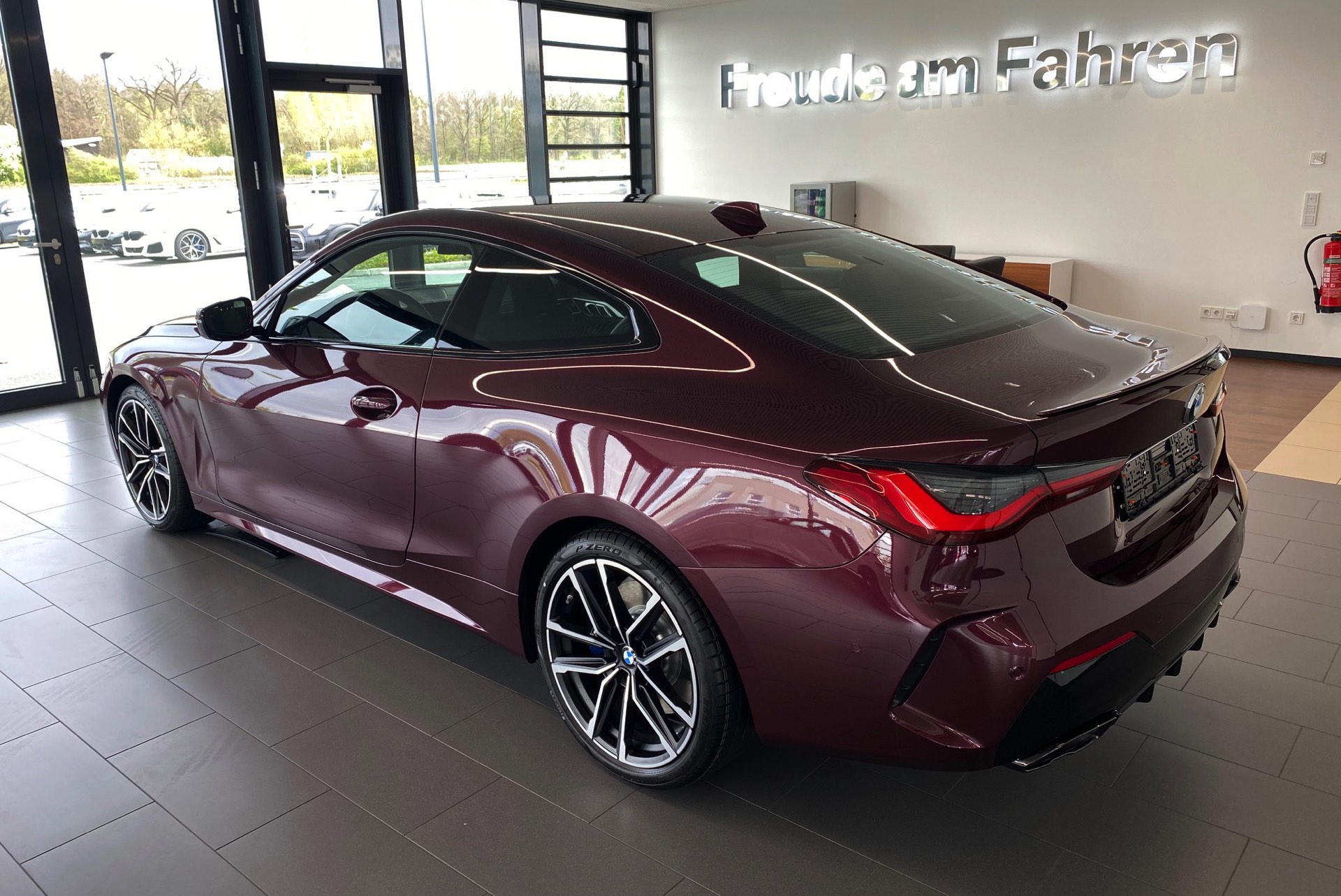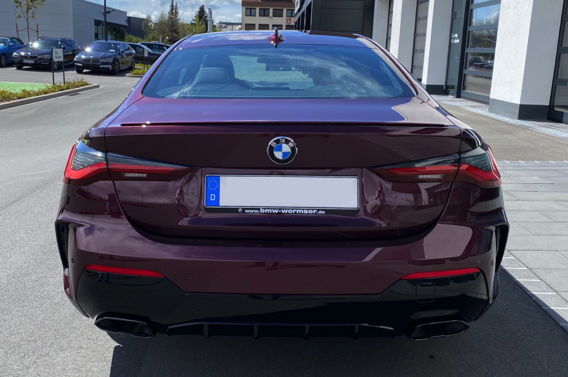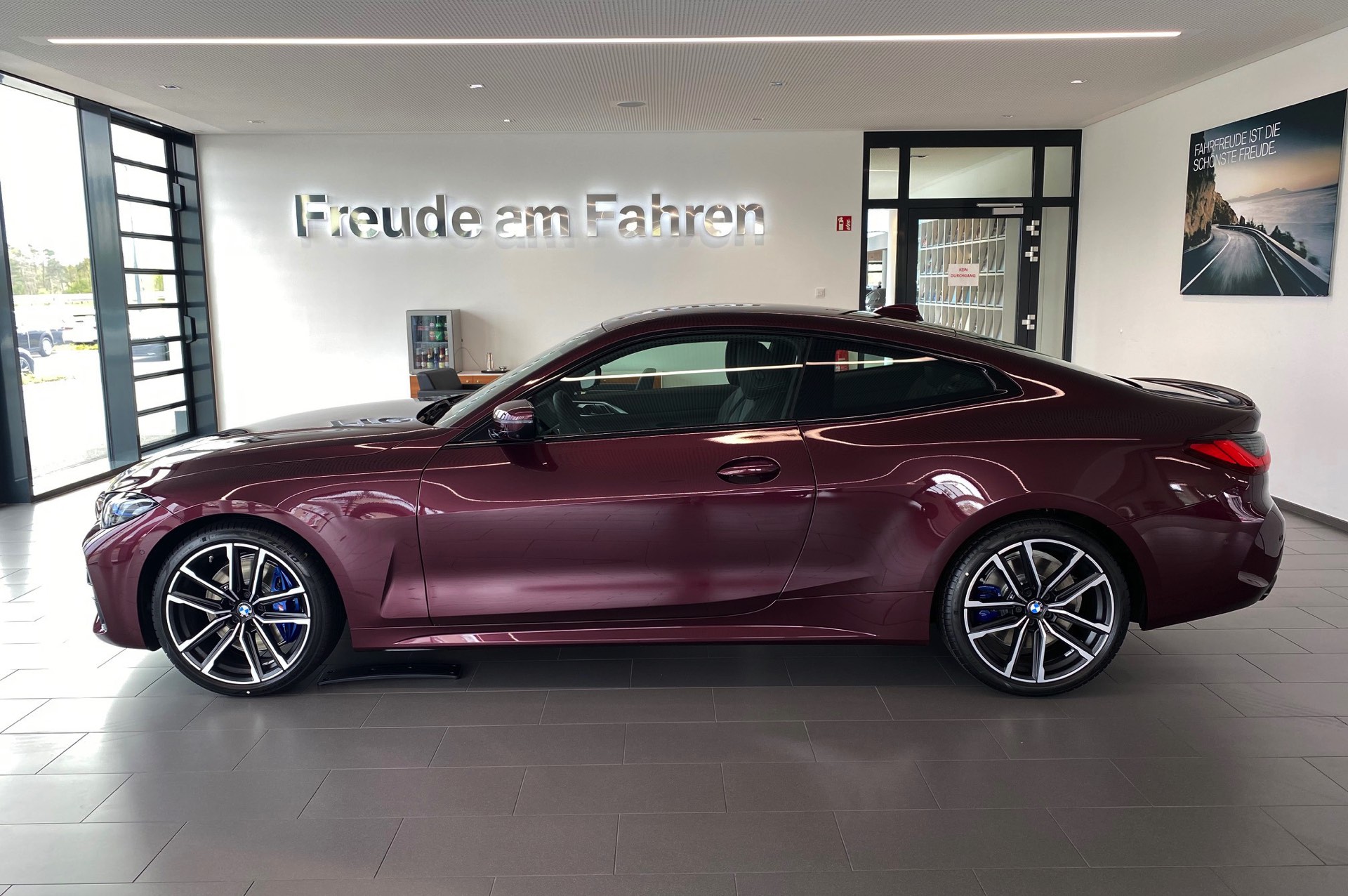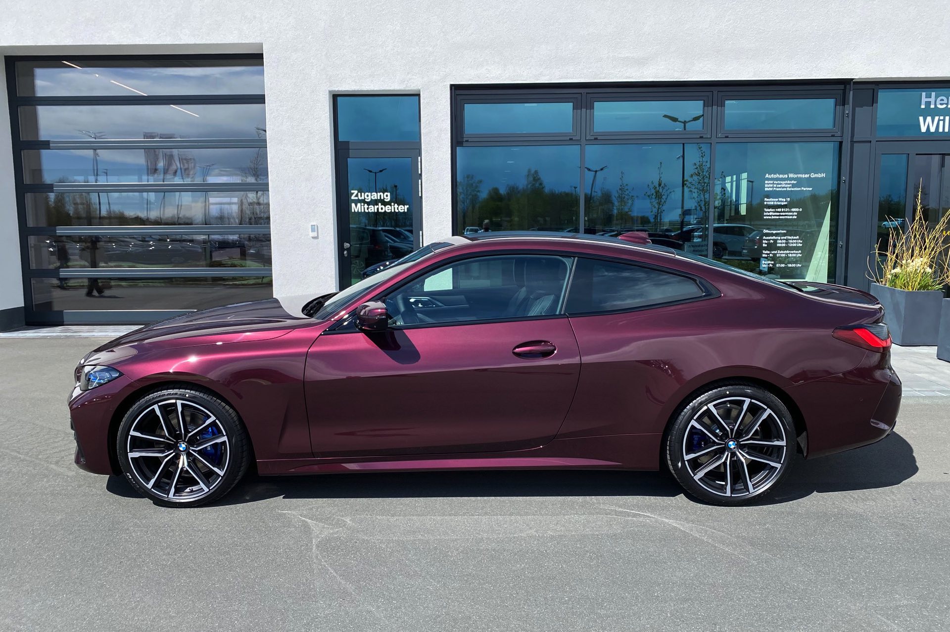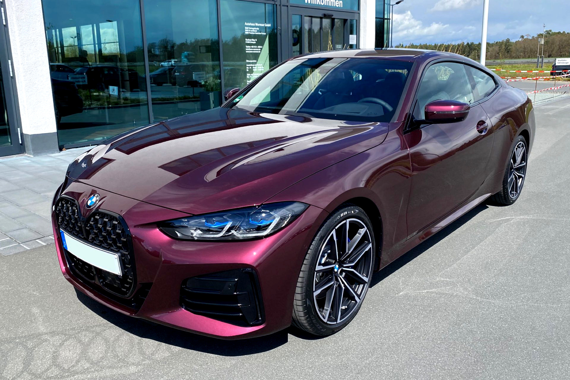 Es muss nicht immer Silber sein – und für Versteckspiele von Schüchternen eignet sich das neue BMW 4er Coupé G22 mit seiner selbstbewussten Front ohnehin nicht. Wer also auffallen will, kann auch gleich richtig glänzen: Aktuelle Fotos von BMW-Verkäufer und BimmerToday-Leser Fabian Poss zeigen uns einen M440i mit Individual-Lackierung in Wildberry Metallic. Die extrem extrovertierte Farbe hatten wir schon vor einiger Zeit an einem 7er vorgestellt, sie funktioniert aber offenbar auch auf dem 4er hervorragend.
