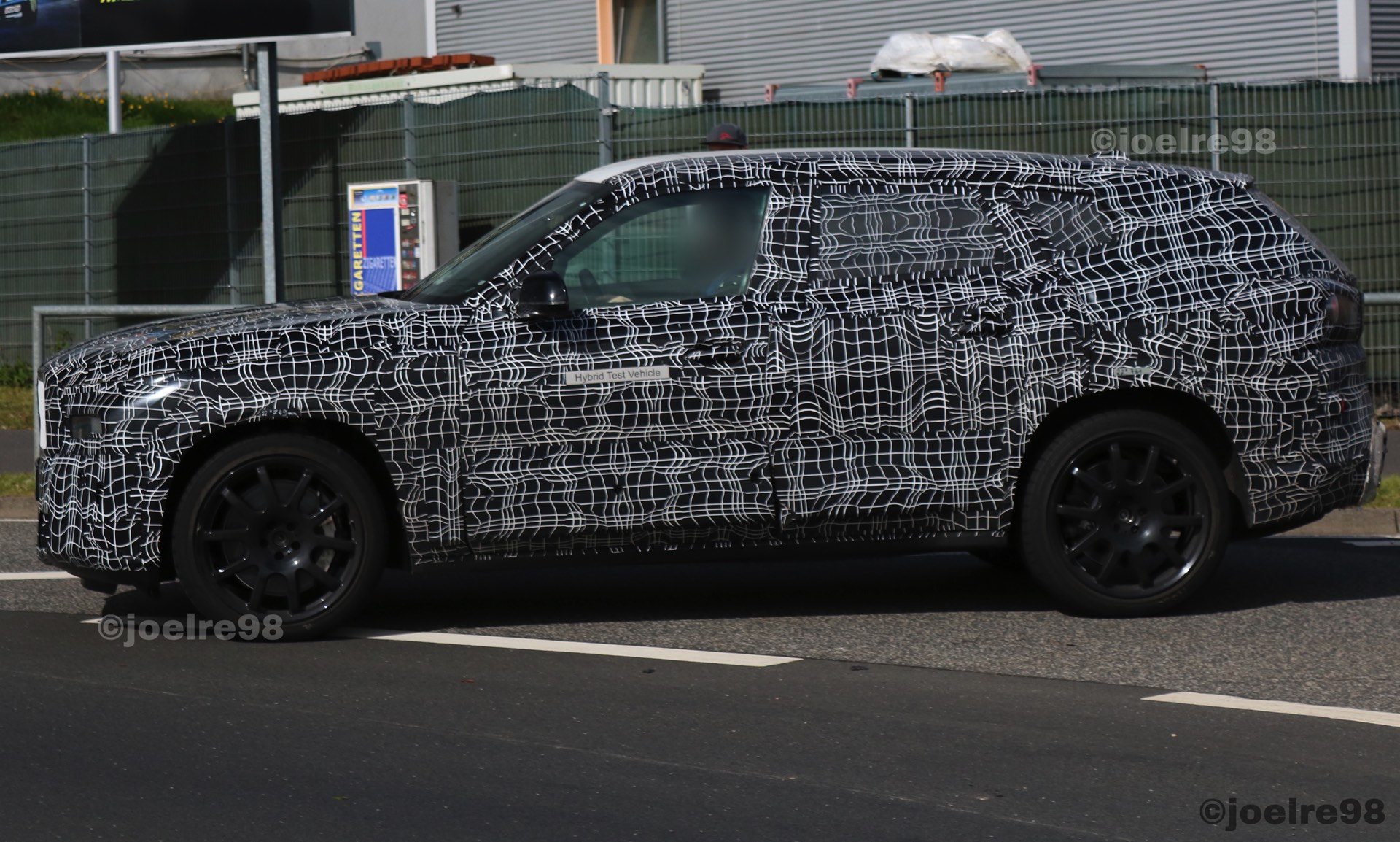 Aktuelle Erlkönig-Fotos von unserem Leser joelre98 zeigen das mächtige Fahrzeug auf den Straßen im Umfeld der Nürburgring Nordschleife, die schon jetzt zur zweiten Heimat des Bayern avanciert. Deutlich erkennbar sind auch die Aufkleber an den Türen und der Heckschürze, die einen wichtigen Hinweis auf den Antrieb liefern: Die “Hybrid Test Vehicle”-Schriftzüge lassen keinen Zweifel daran, dass der möglicherweise als BMW X8 M auf den Asphalt geschickte Bayer über einen Hybrid-Antriebsstrang mit Verbrennungs- und Elektro-Motor verfügen wird.