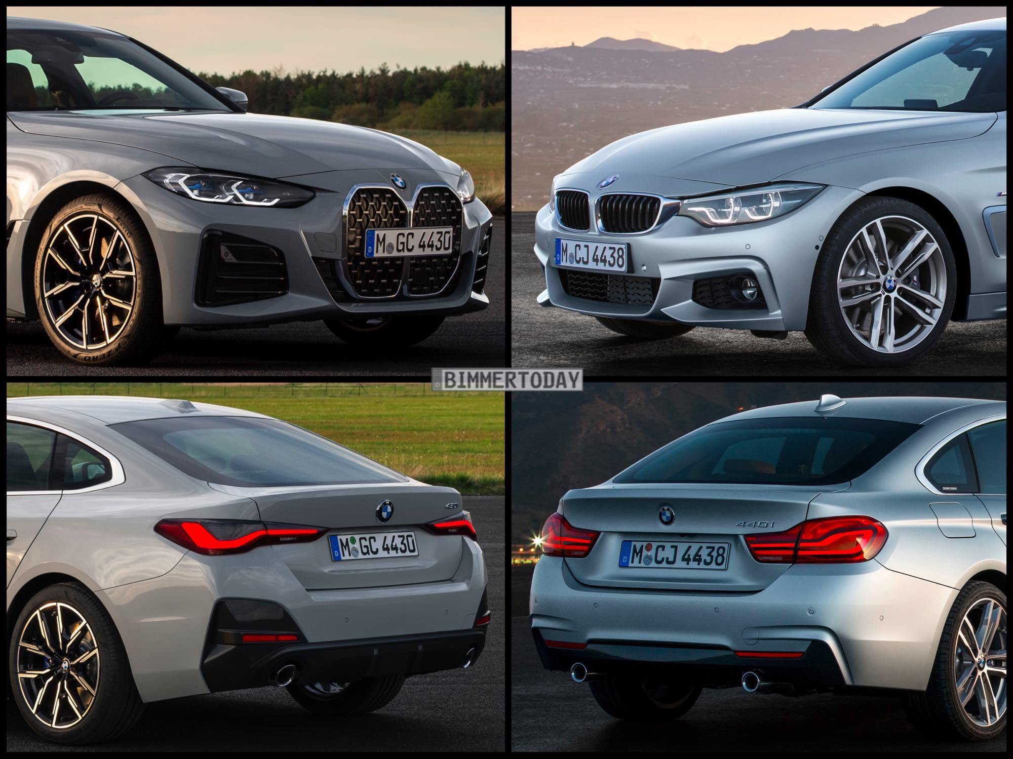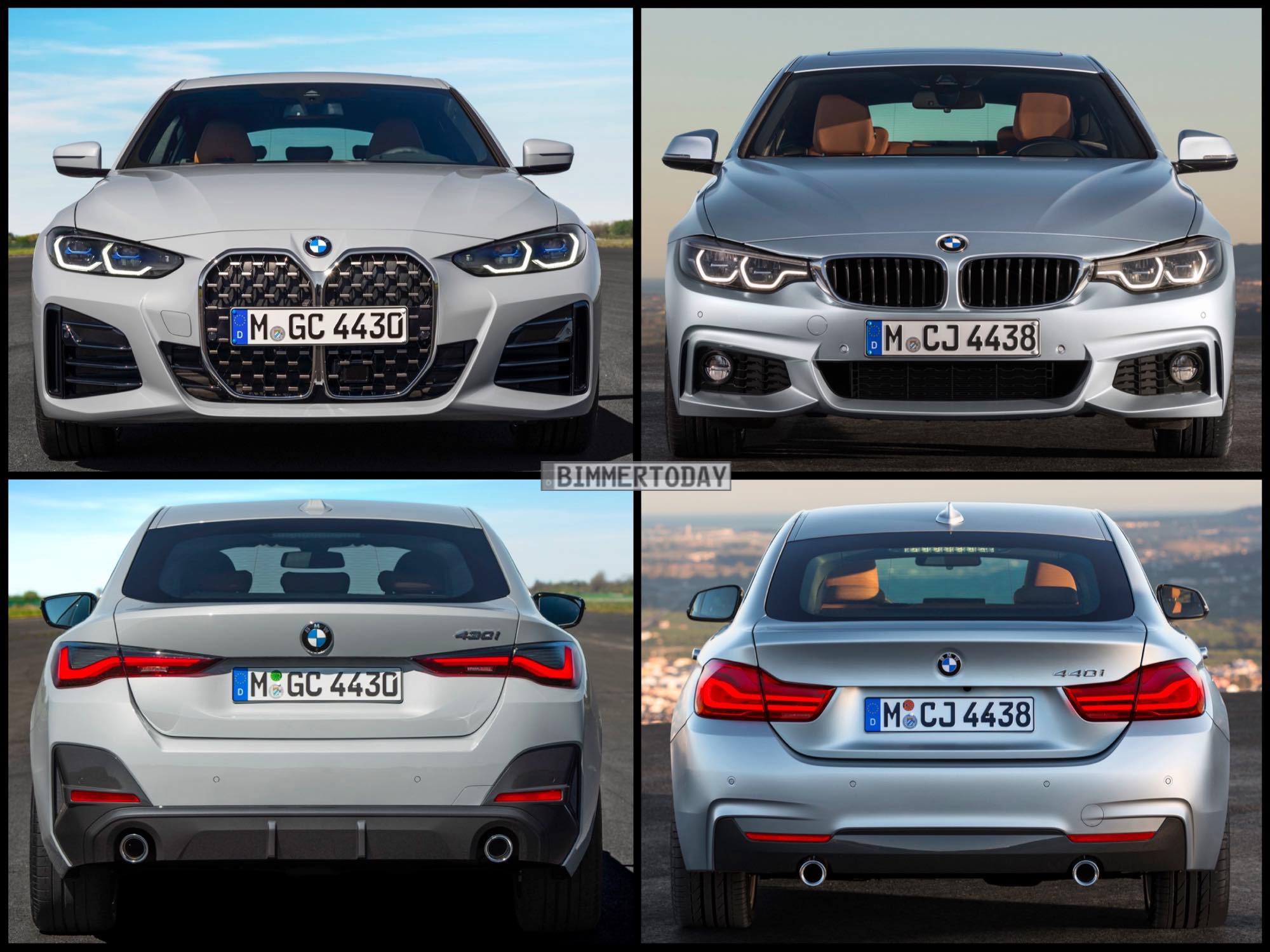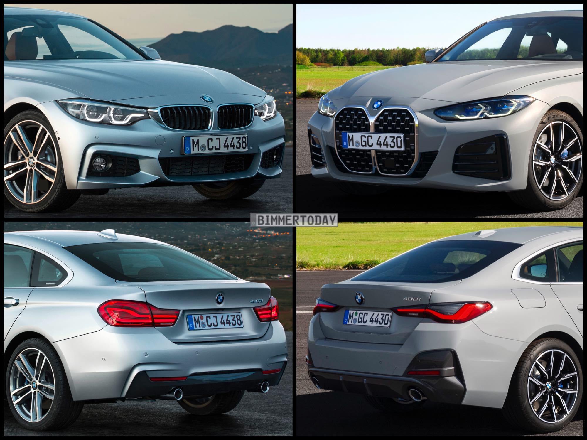 Manchmal kommt es eben doch auf die Größe an: Beim Bild-Vergleich des neuen BMW 4er Gran Coupé G26 mit seinem Vorgänger (F36 LCI) ist es vor allem die Niere, die die völlig veränderte Design-Philosophie unterstreicht. Zwar hatten die Designer auch schon beim Vorgänger eine sanfte Abgrenzung vom 3er versucht, verglichen mit dem vollkommen eigenständigen Auftritt der zweiten 4er-Generation war diese aber zumindest an der Front kaum gegeben. Konnte es beim Vorgänger also durchaus zu Verwechslungen zwischen 3er und 4er kommen, sind diese nun tatsächlich ausgeschlossen.