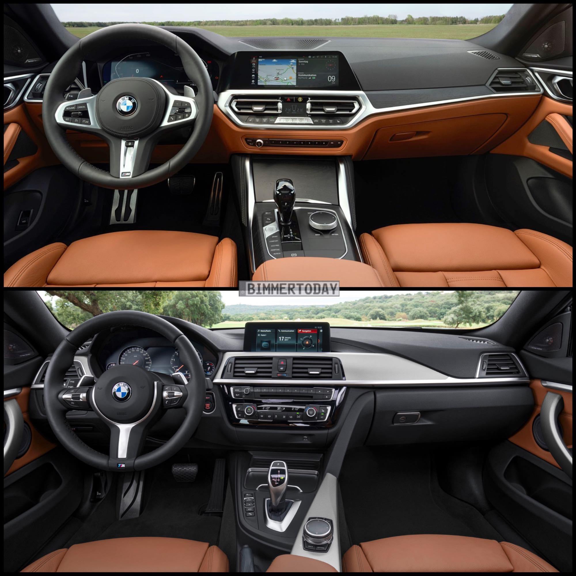 Eine erhebliche Weiterentwicklung ist auch im Innenraum unübersehbar. Vollständig digitalisierte Anzeigen treffen auf einen spürbar hochwertigeren Materialmix, außerdem tragen wie im 3er wesentlich reduzierte Windgeräusche und eine bessere Abschirmung des Innenraums von der Außenwelt zum Premium-Feeling bei. Wie die ersten beiden Generationen BMW 4er Gran Coupé aus vergleichbaren Perspektiven wirken, zeigt die Gegenüberstellung in unserem Bild-Vergleich: