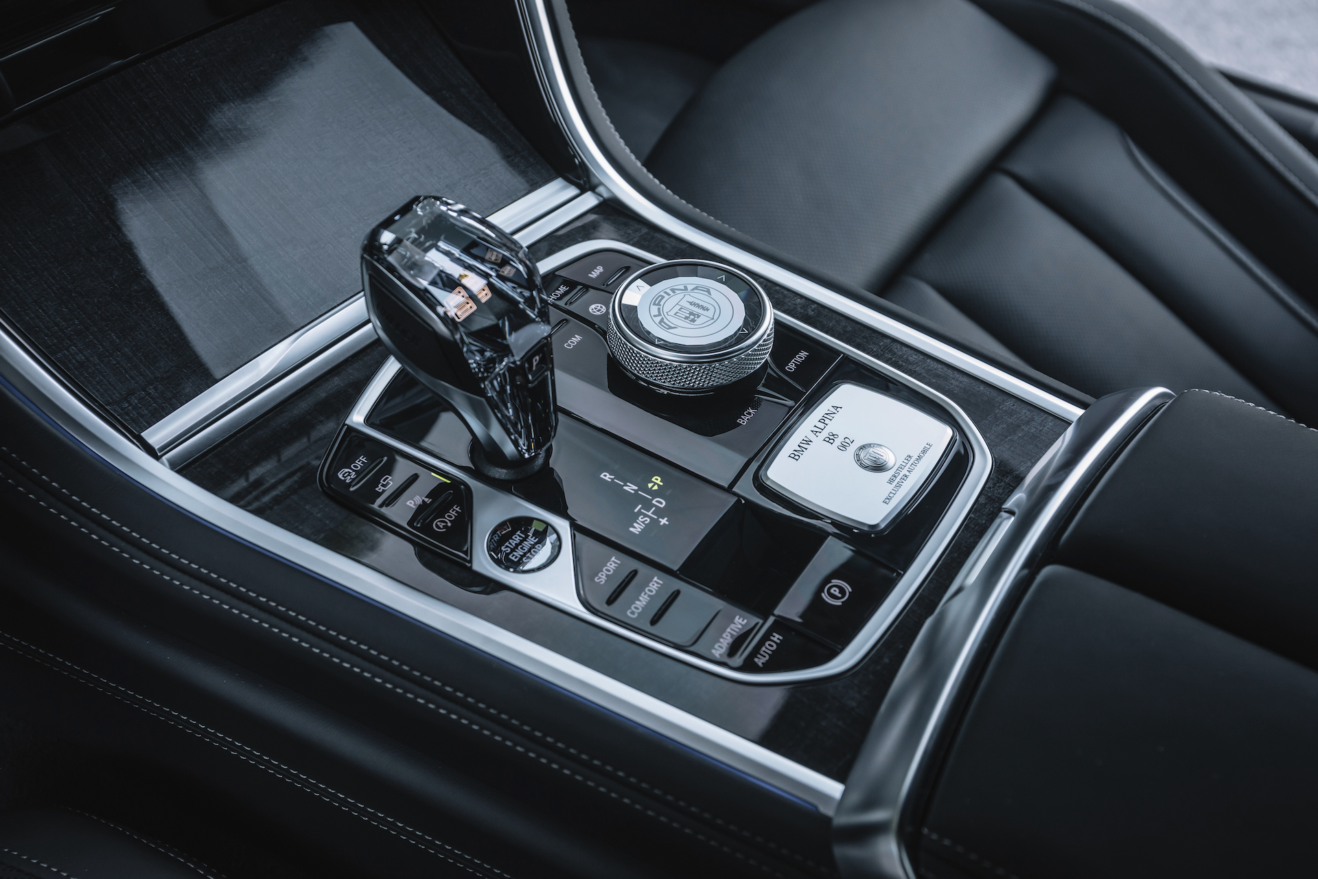 Mit einer leichten Kurve, etwas Steigung und langen Bodenwellen tritt der Rundkurs den Rückweg in Richtung Ostschleife an. Unter sonorer, niemals überpräsenter Klangentfaltung dreht der Achtzylinder in Richtung Begrenzer. Zeit für klare Gedanken – und für einen Blick auf den Fahrerlebnisschalter. Wo andere Hersteller zusätzliche Performance-Ebenen und brachiale Drift-Modi unterbringen, konzentriert sich Alpina auf das Thema Fahrkomfort.