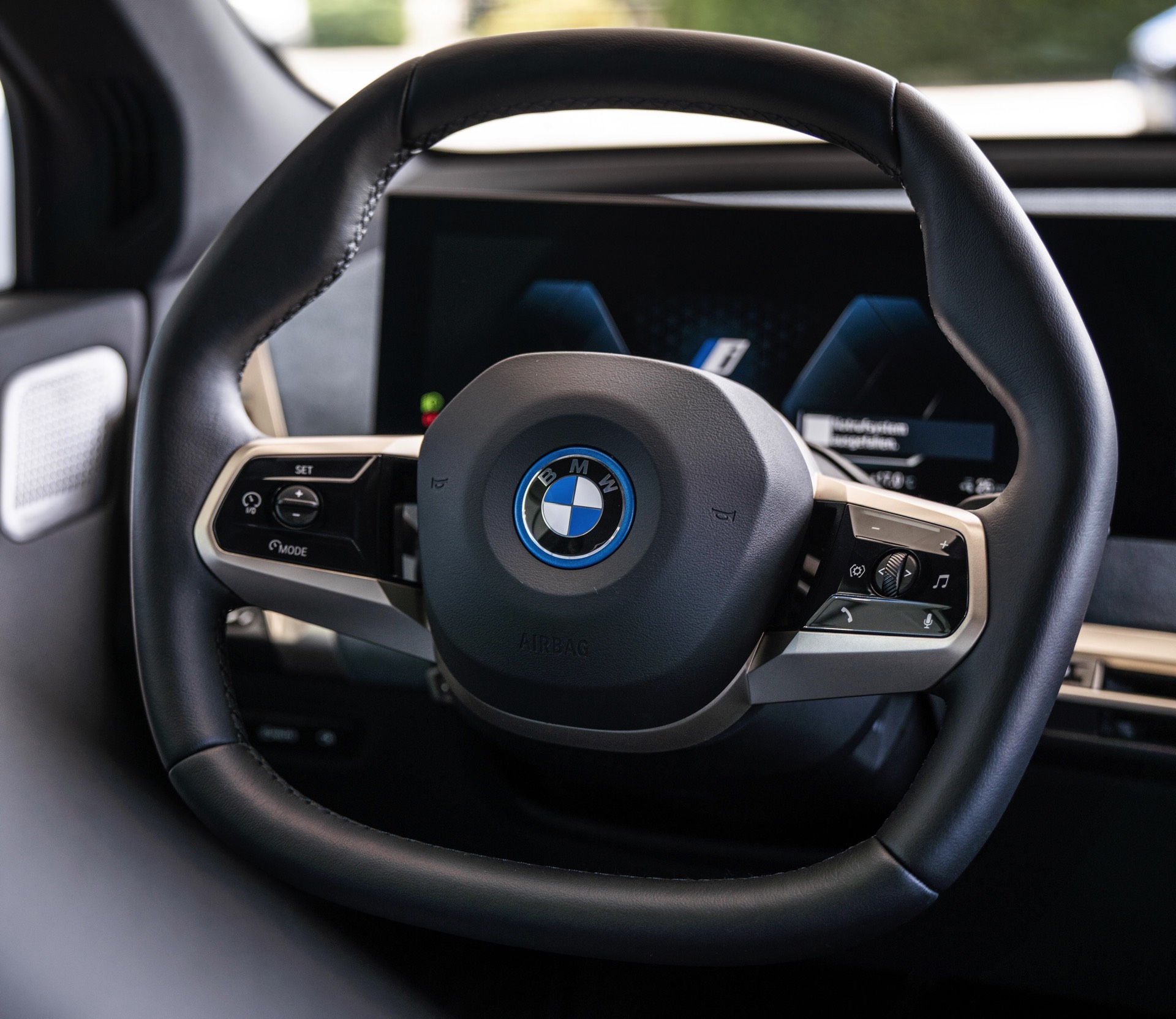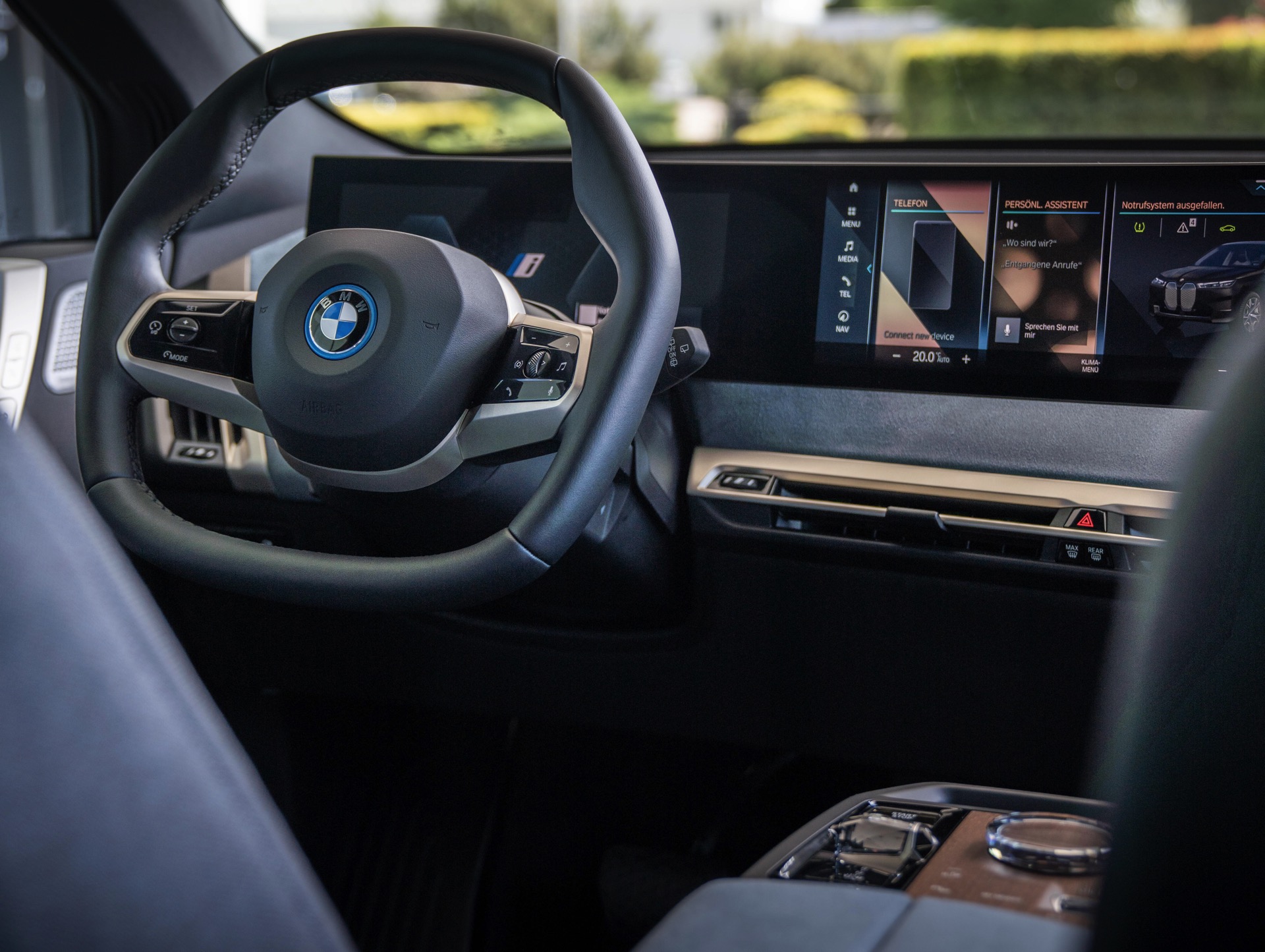 Auch sonst versteckt der BMW iX xDrive50 einen großen Teil seiner Technik: Auch mit Sportpaket sieht man ihm seine 523 PS und 765 Newtonmeter Drehmoment nicht wirklich an, trotz einem EU-Leergewicht von fast 2,6 Tonnen beschleunigt das vorläufige Topmodell in nur 4,6 Sekunden von 0 auf 100 km/h. Großen Anteil am hohen Gewicht hat der Lithium-Ionen-Akku mit einer Netto-Kapazität von 105,2 kWh, der andererseits eine WLTP-Reichweite von 549 bis 630 km ermöglicht, aber natürlich haben auch andere Ausstattungen wie die adaptive 2-Achs-Luftfederung und die Integral-Aktivlenkung genannte Hinterachslenkung ihren Anteil an der gewaltigen Masse des iX xDrive50.