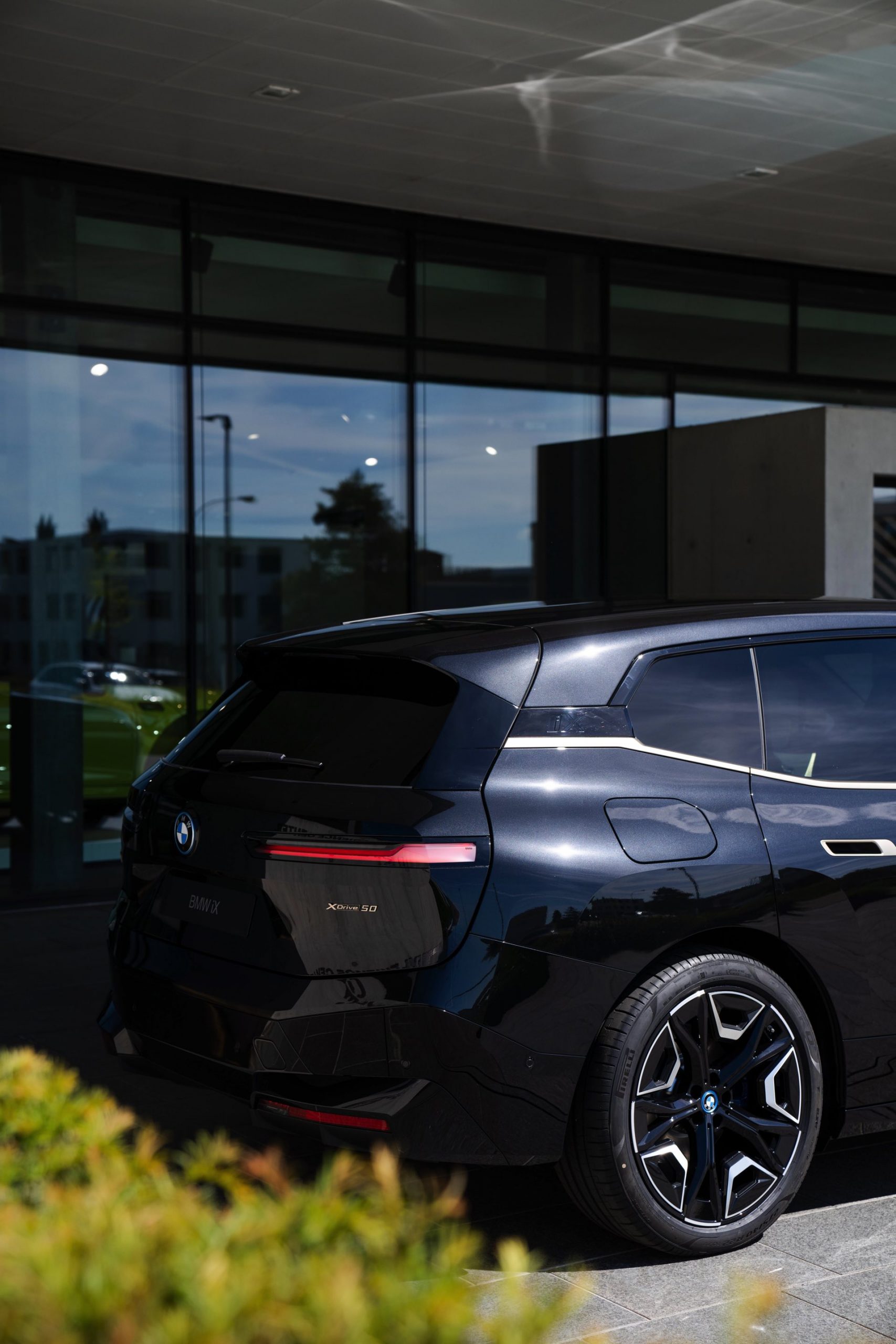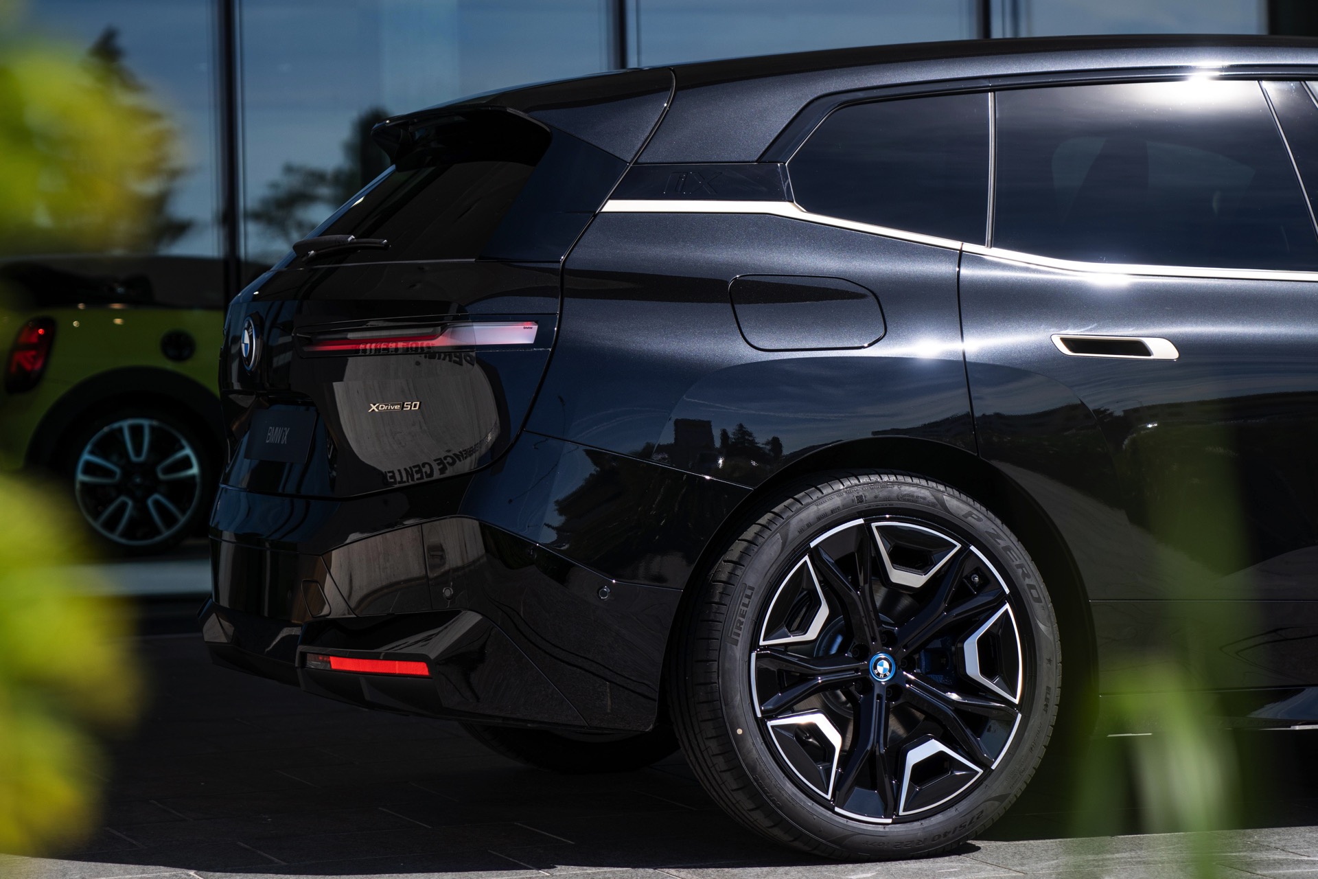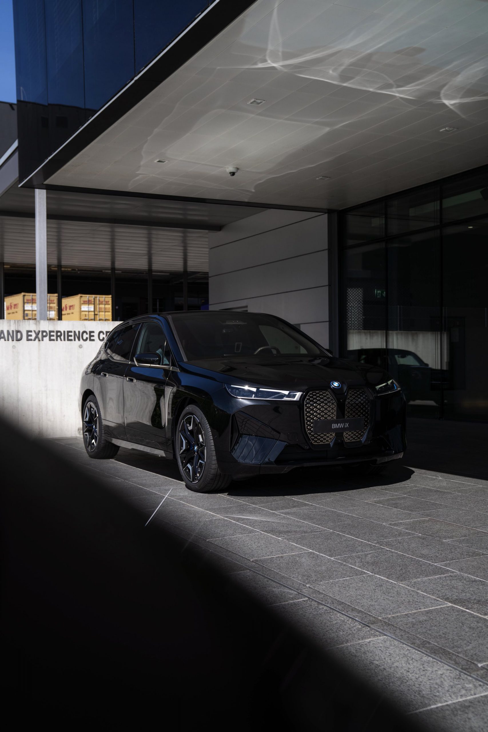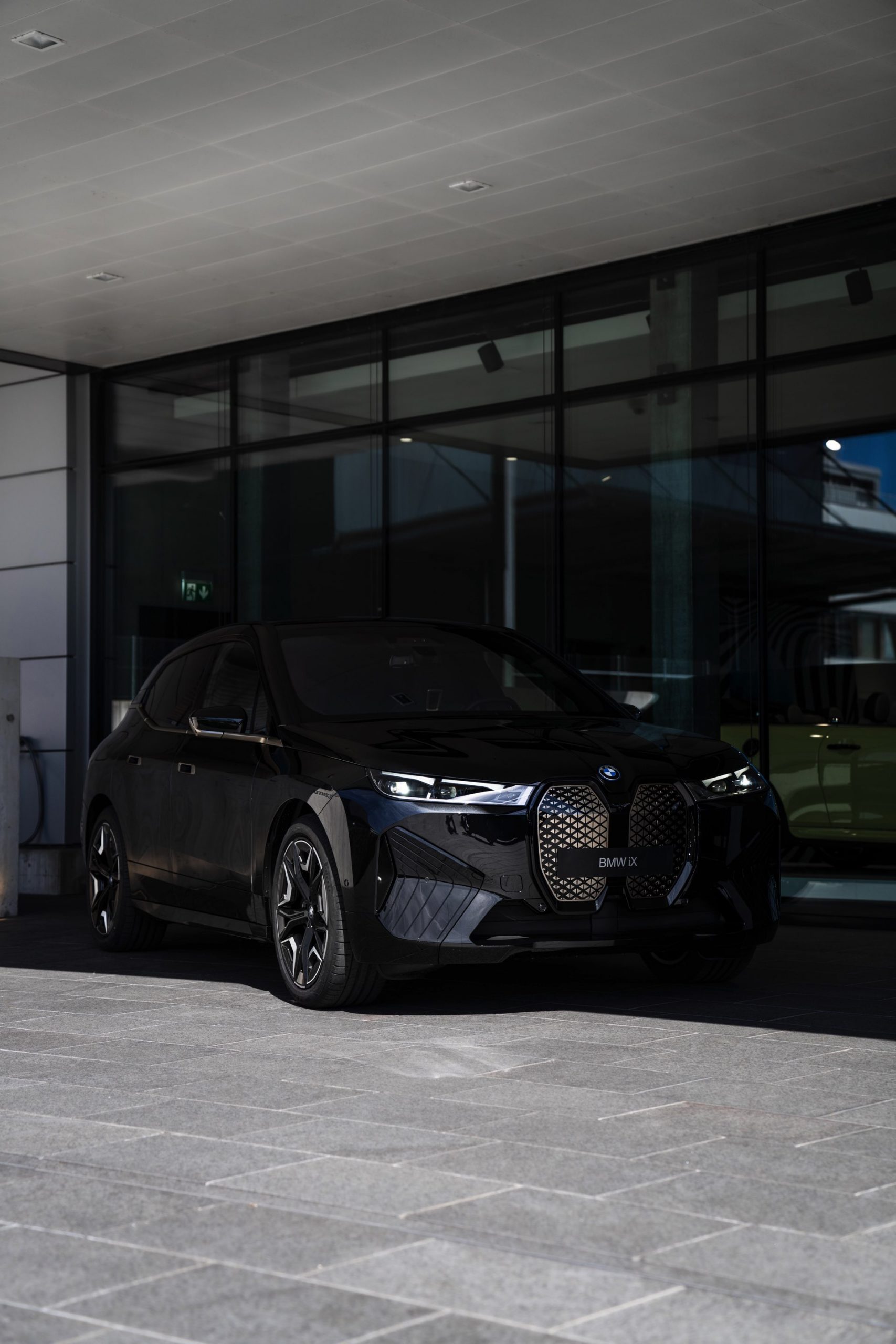 Bei seinen offiziellen Auftritten war der neue BMW iX bisher stets in relativ hellen oder kräftigen Farben zu sehen, aber das Elektro-SUV gibt offenbar auch in Schwarz eine gute Figur ab. Sichtbar wird das auf den aktuellen Fotos aus dem BMW Group Brand Experience Center in der Schweiz, denn dort ist der iX in einer sportlich-eleganten Konfiguration zu sehen: Wir sehen das vorläufige Topmodell BMW iX xDrive50 mit Sportpaket und Lackierung in Saphirschwarz Metallic sowie den 22 Zoll großen Aerodynamikräder 1020 Bicolor 3D-Glanzschliff.