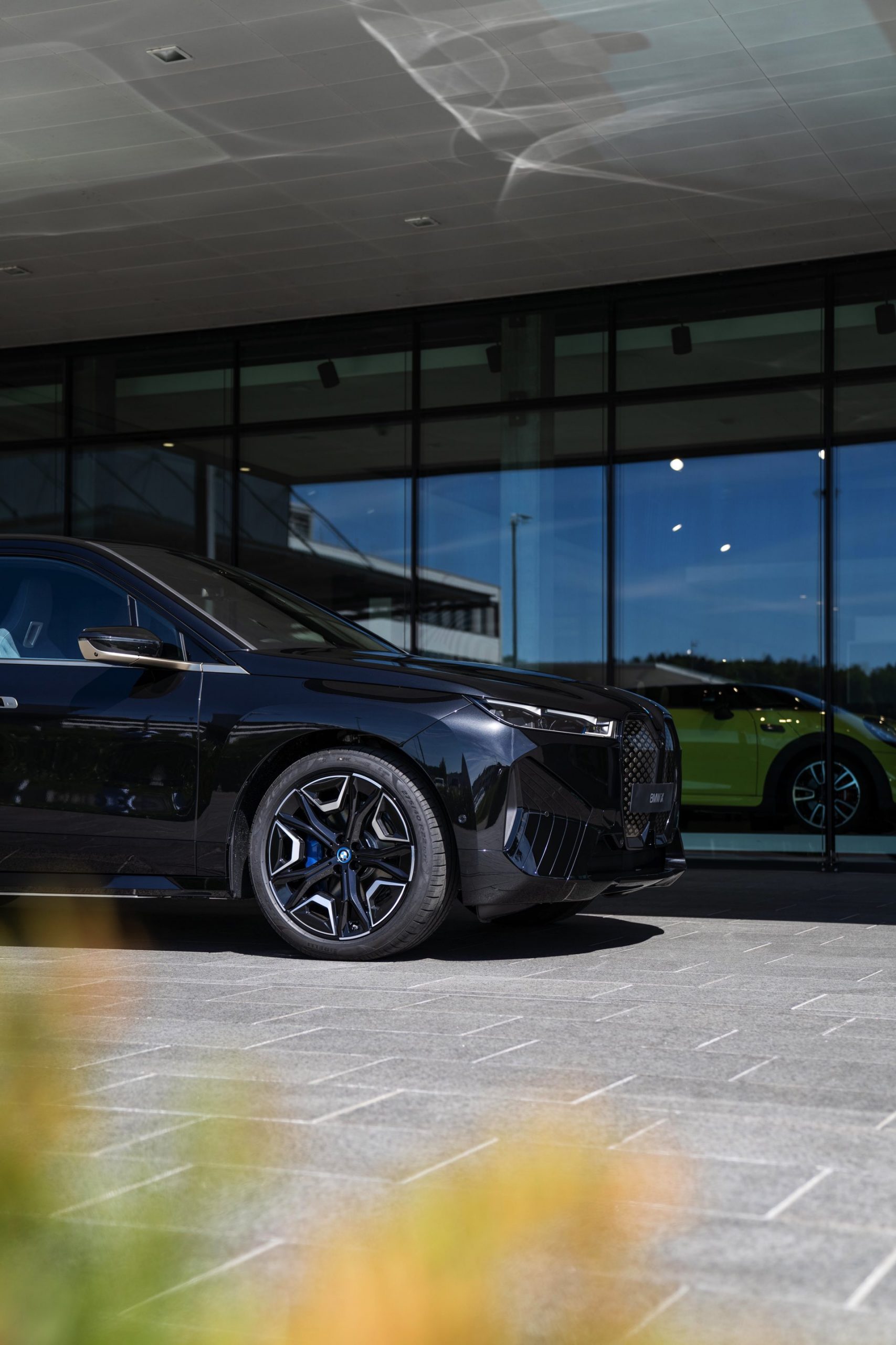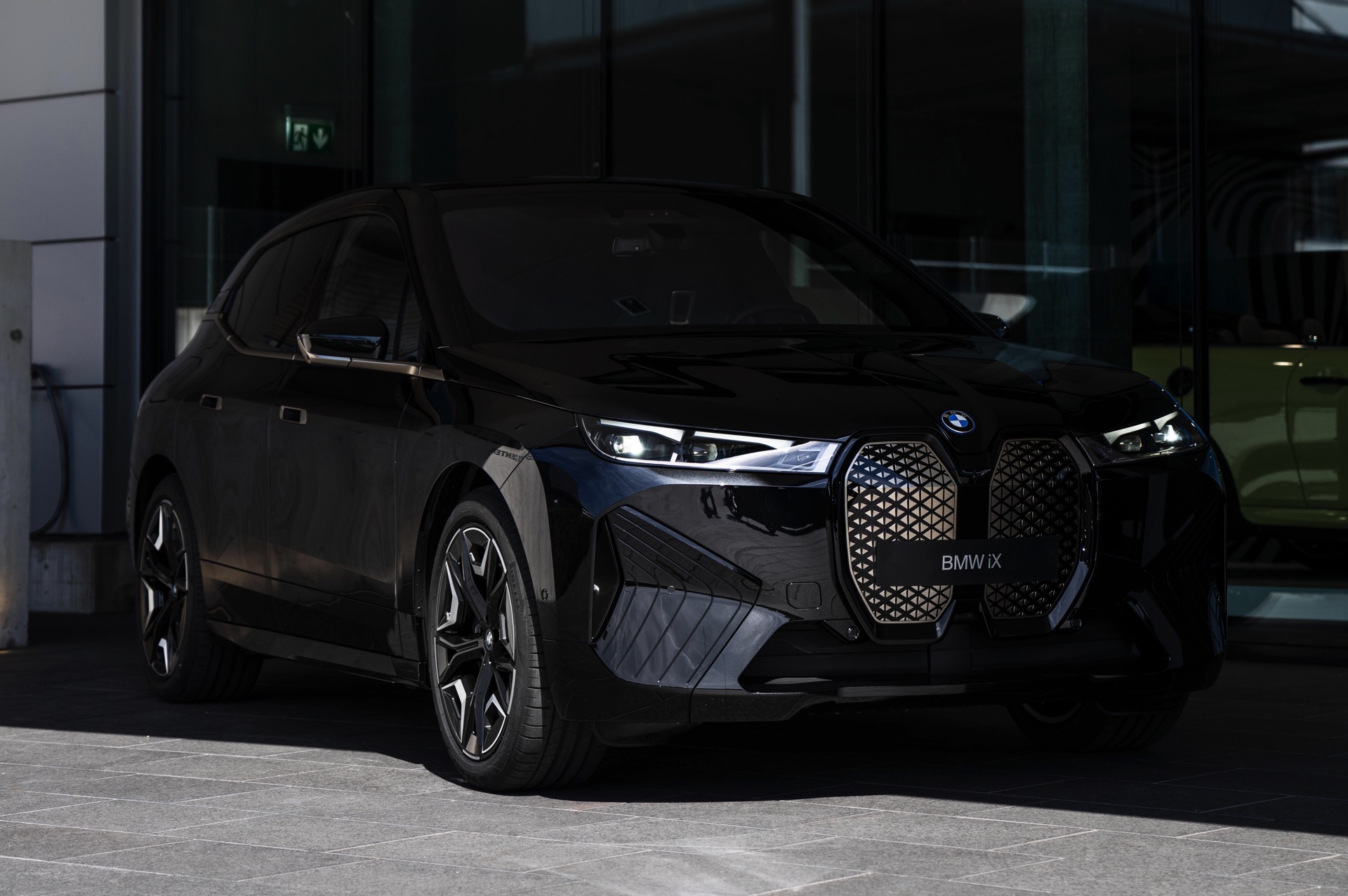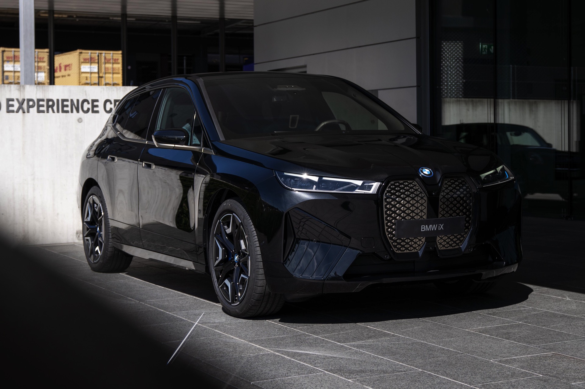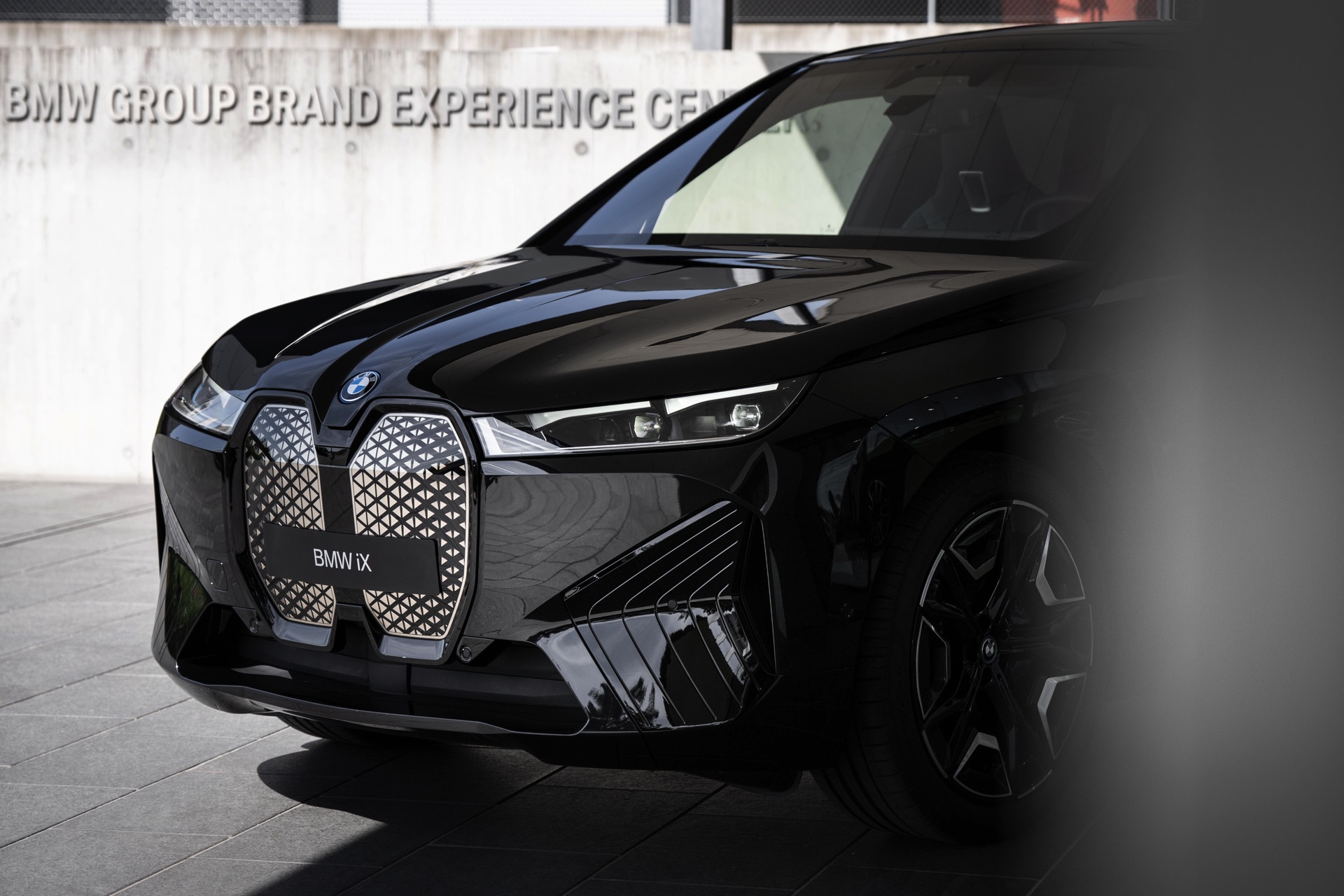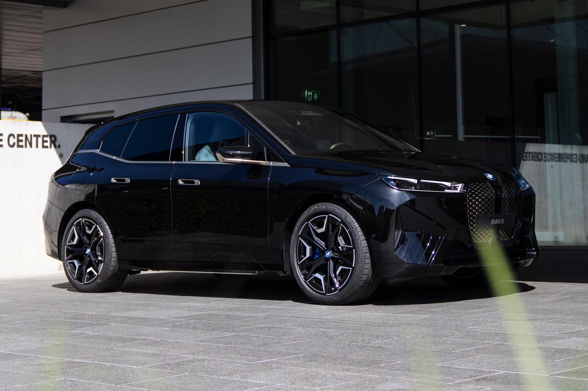 Bei seinen offiziellen Auftritten war der neue BMW iX bisher stets in relativ hellen oder kräftigen Farben zu sehen, aber das Elektro-SUV gibt offenbar auch in Schwarz eine gute Figur ab. Sichtbar wird das auf den aktuellen Fotos aus dem BMW Group Brand Experience Center in der Schweiz, denn dort ist der iX in einer sportlich-eleganten Konfiguration zu sehen: Wir sehen das vorläufige Topmodell BMW iX xDrive50 mit Sportpaket und Lackierung in Saphirschwarz Metallic sowie den 22 Zoll großen Aerodynamikräder 1020 Bicolor 3D-Glanzschliff.
