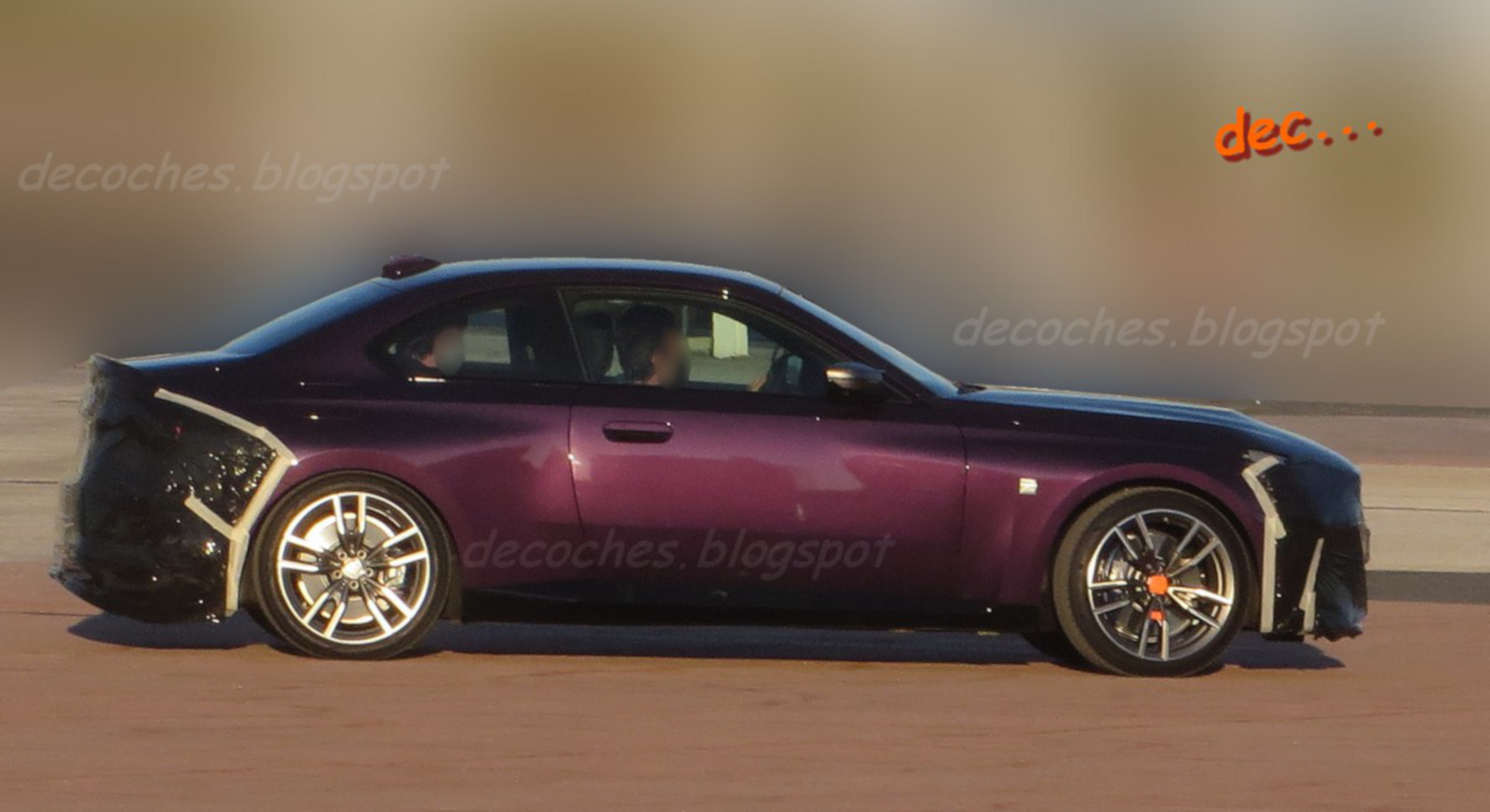 Nur wenige Stunden nach der Front sind nun auch erste Fotos vom Heck des neuen BMW 2er Coupé G42 vorab im Netz gelandet. Auf den neuesten Fotos sehen wir erneut das BMW M240i Coupé mit seiner auffälligen Lackierung in kräftigem Lila, der Schriftzug am Heck dürfte auch die letzten Zweifler von der M Performance-Motorisierung überzeugen. Gut erkennbar sind auch die Endrohr-Blenden in Trapezform und mit Finish in Cerium Grey, die dem vorläufigen Topmodell vorbehalten bleiben. Wie beim 3er dürften die schwächeren Varianten mit jeweils einem runden Endrohr links und rechts auf den Markt kommen.