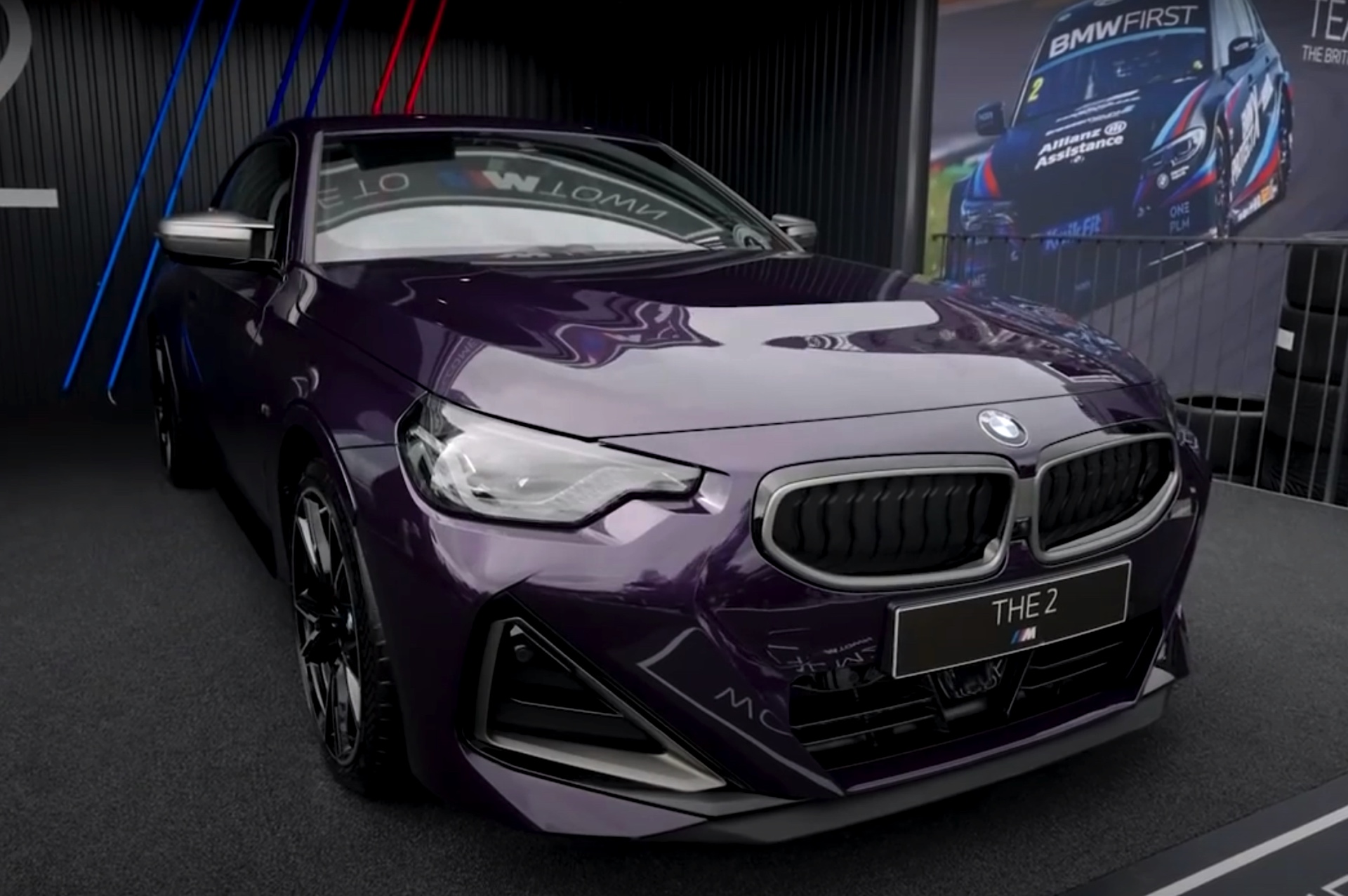 Genau wie bisher nur der M2 tragen nun auch die schwächeren Varianten des BMW 2er Coupé weit ausgestellte und muskulös geformte Radhäuser, die deutlich auf die breite Spur hinweisen. Ein weiterer klarer Hinweis auf den sportlichen Anspruch ist der serienmäßige Power Dome auf der Motorhaube. Völlig neu sind auch die Nierenstreben, deren Form an die Turbine eines Flugzeugs erinnern soll. Ein absoluter Hingucker ist natürlich auch die neue Lackierung in Thundernight Metallic, für einen ähnlichen Auftritt war in der jüngeren Vergangenheit stets die Hilfe von BMW Individual erforderlich. Dem BMW M240i vorbehalten bleiben Details wie die M-Außenspiegel und die trapezförmigen Endrohre, die genau wie die Einfassung der Nieren in Cerium Grey gehalten sind.
