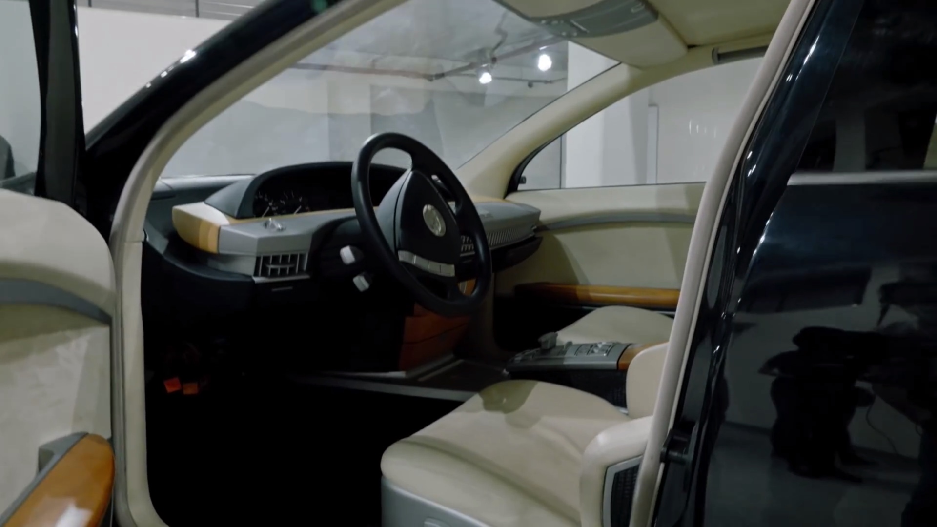 Besonders deutlich wird das beim Blick in den Innenraum, der in vielen Details stark an den 2001 eingeführten BMW 7er E65 erinnert. Besonders außergewöhnlich für das Jahr 1996 ist, dass der ZBF-7er bereits eine sehr konkrete Vorschau auf den BMW iDrive-Controller liefert. Während der echte 7er genau wie sämtliche Wettbewerber mit einer immer größeren Flut von Knöpfen und Schaltern zu kämpfen hatte, hatte die BMW Design-Abteilung die Lösung in Form eines zentralen Controllers bereits in der Hinterhand.