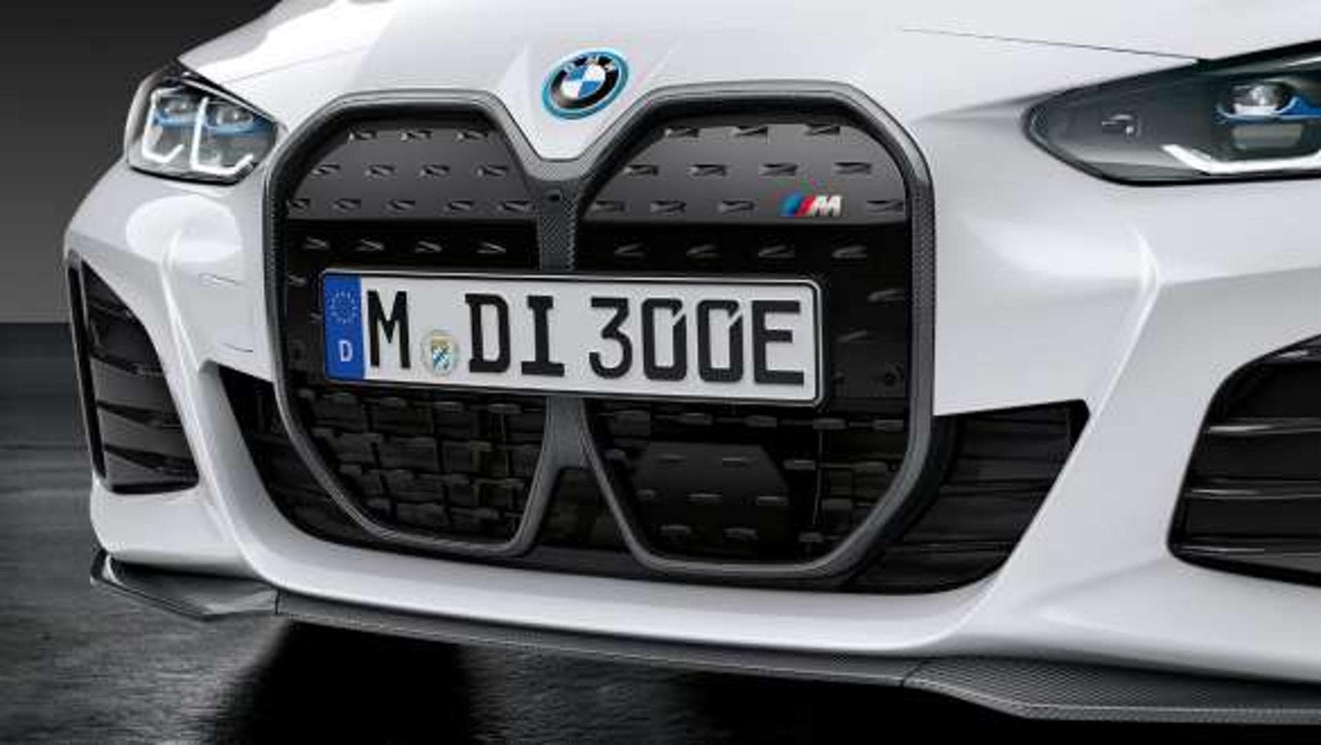 Das optisch prägendste Einzelteil ist dabei zweifellos die M Performance-Niere mit Carbon-Einfassung. Sie umrahmt die große Doppel-Niere und unterstreicht den sportlichen Anspruch des BMW i4 mit ihrer charakteristischen Carbon-Optik. Am unteren Rand der M-Frontschürze lässt sich außerdem ein ebenfalls aus Carbon gefertigter Frontsplitter montieren, der neben einem optischen auch einen aerodynamischen Effekt hat: Der Splitter reduziert den Auftrieb an der Vorderachse und steigert so die Fahrstabilität bei hohen Geschwindigkeiten.