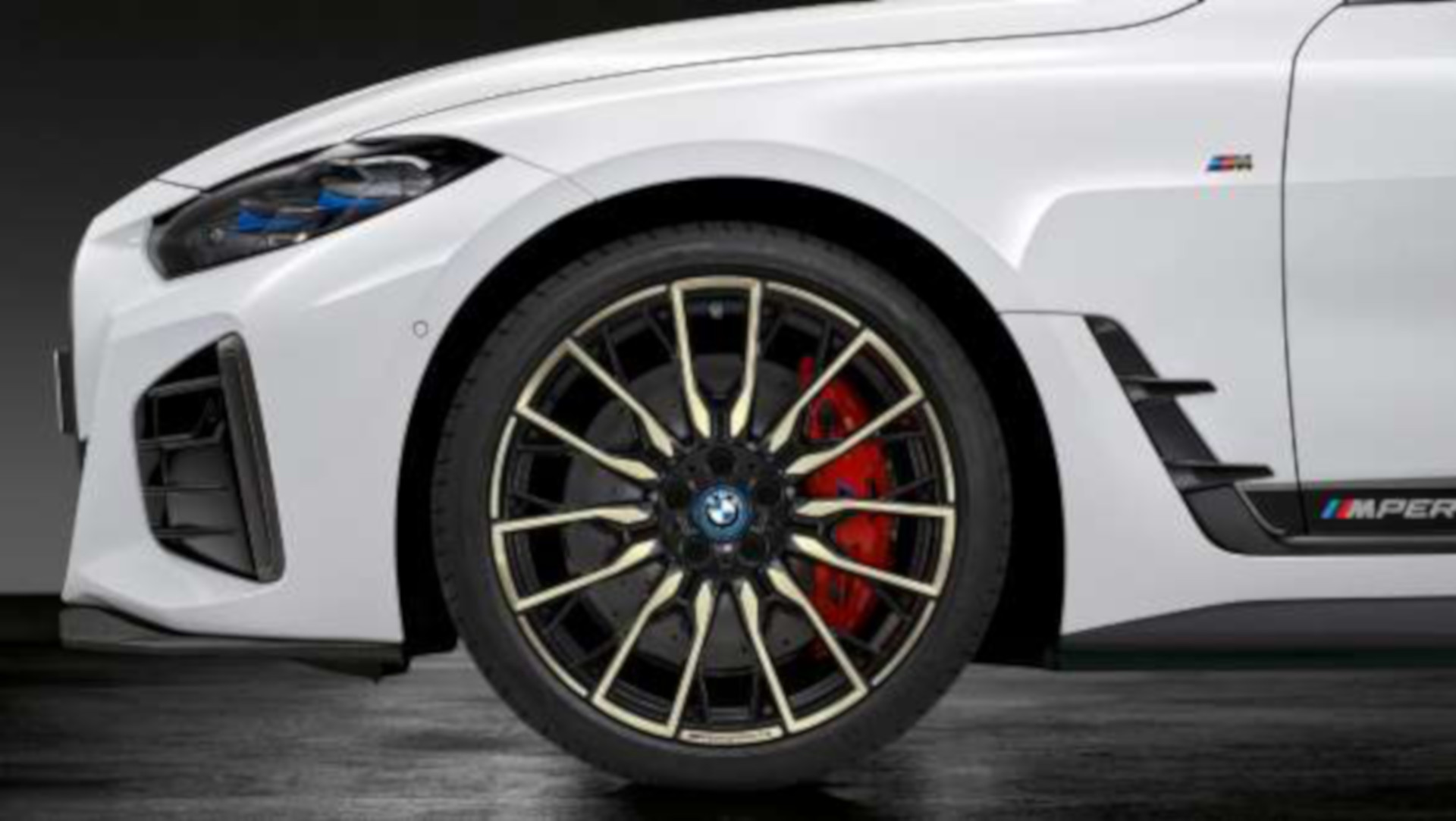 Für die Seitenansicht des BMW i4 bietet das M Performance-Programm auf jeden Fall angepasste Seitenschweller und eine Dekor-Beklebung, Fotos davon gibt es aber bisher nicht. Sehr wohl bekannt ist das Design der 20 Zoll großen M Performance Leichtmetallräder Doppelspeiche 868 M Bicolor, die mit Elementen in Night Gold Aufmerksamkeit auf sich lenken.