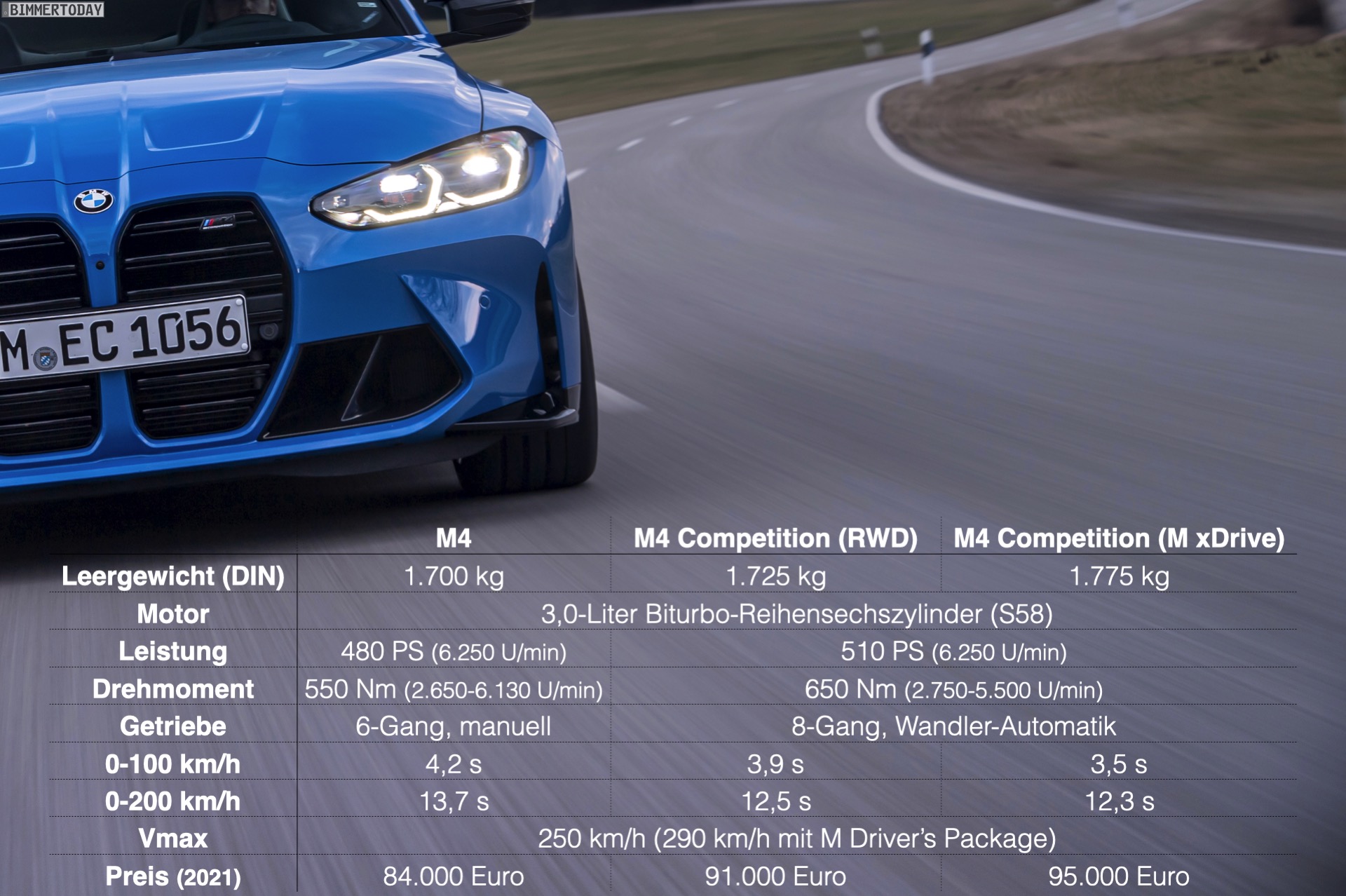 Unabhängige Experten-Tests zum neuen BMW M4 Competition mit M xDrive liegen derzeit noch nicht vor, aber mit den ersten Testwagen dürfte auch die Fachpresse nach und nach diverse Zeiten liefern. Während die Vorteile bei der Beschleunigung aus dem Stand unbestreitbar sind, wird die Frage nach der besseren Performance auf der Rennstrecke wesentlich spannender. Das Ergebnis kann dabei durchaus je nach Strecken-Charakteristik unterschiedlich ausfallen, denn die Traktionsvorteile müssen den Nachteil des Mehrgewichts nicht auf jeder Strecke überkompensieren.