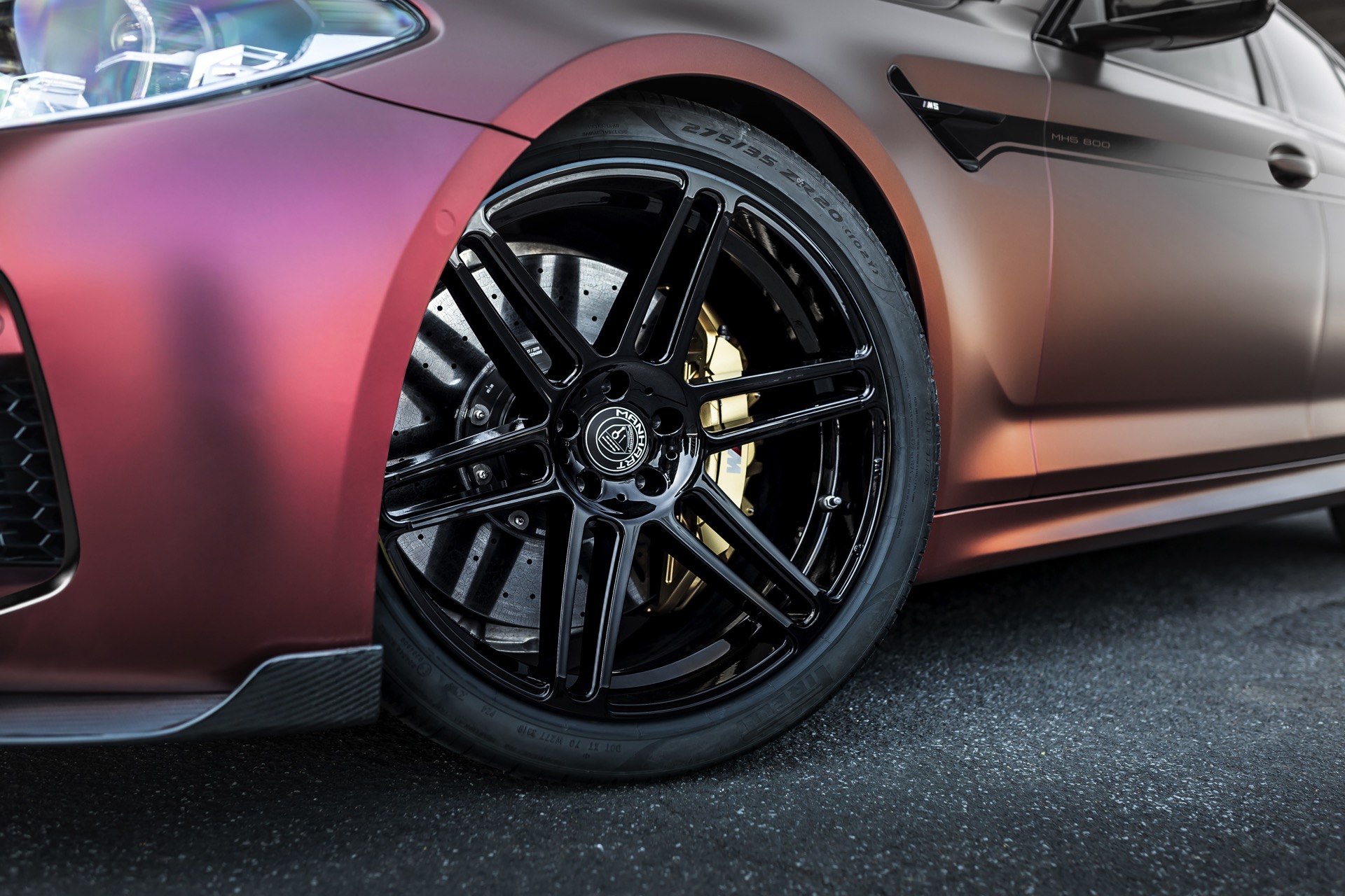 Passend zum fulminant überarbeiteten Antrieb hat Manhart auch für die Optik einige Veränderungen im Angebot. Carbon-Frontspoiler, Diffusor und Heckspoiler schärfen den Auftritt und verbessern die aerodynamischen Eigenschaften, das Fahrverhalten und die Optik profitieren außerdem von H&R Tieferlegungsfedern sowie 21 Zoll großen Felgen im Design Manhart Concave One. Im hier gezeigten Fall sehen wir den Manhart MH5 800 außerdem mit einer Effekt-Folierung in Mattrot metallic samt, die den BMW M5 F90 endgültig aus den Sphären gewöhnlicher Business-Limousinen entrückt.