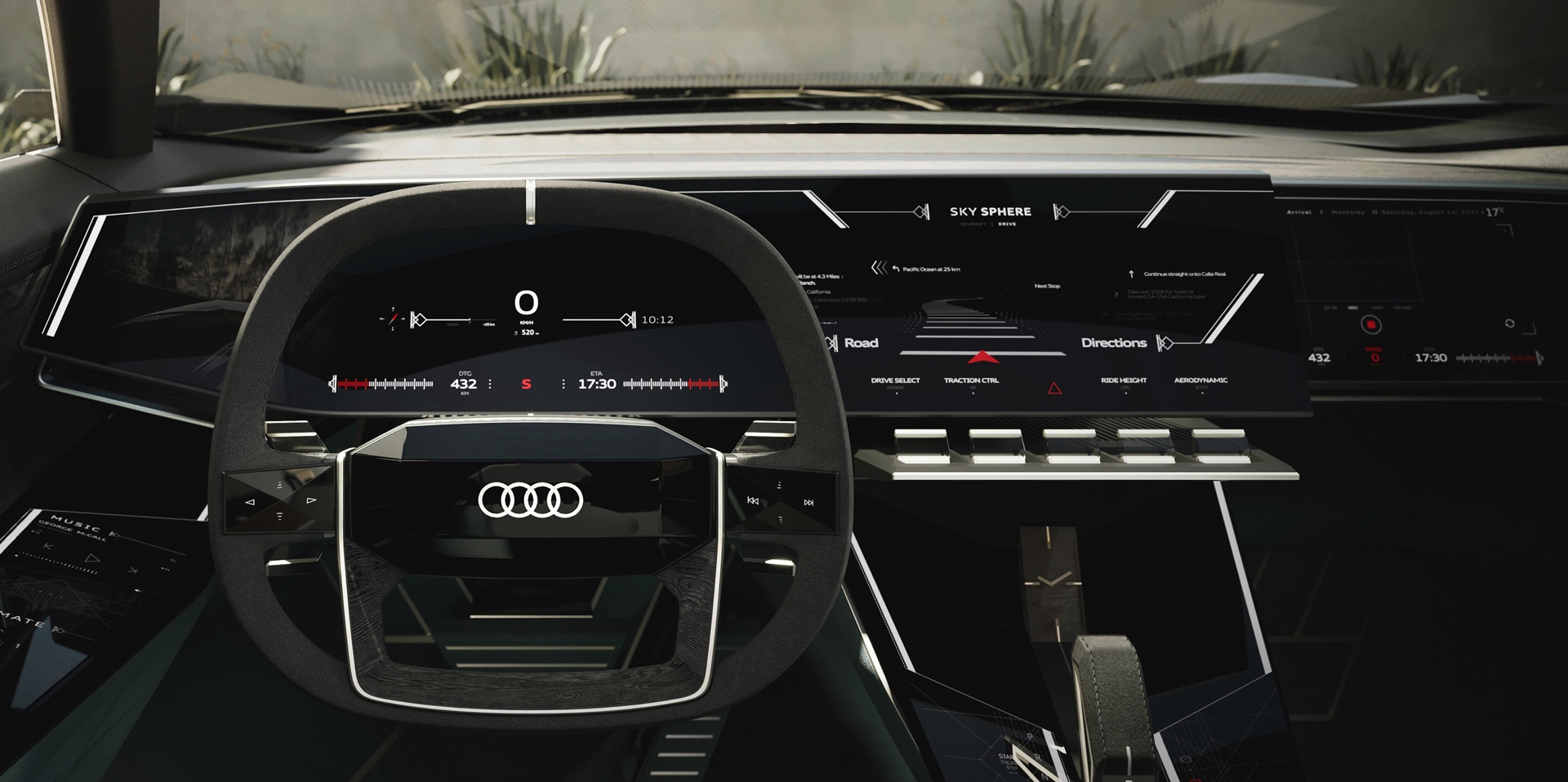Dabei unterstützen auch eine Hinterradlenkung, eine Steer-by-Wire-Lenkung mit je nach Fahrmodus anderer Übersetzung sowie eine adaptive Luftfederung mit aktiver Steuerung aller vier Räder. Dank eines Akkus mit 80 Kilowattstunden Kapazität soll der Audi Skysphere bei ruhiger Fahrweise auf über 500 Kilometer WLTP-Reichweite kommen, wodurch der Elektro-Roadster auch für Kunden mit ausgeprägter Reichweiten-Angst eine spannende Alternative zum konventionell angetriebenen Supersportler sein soll.