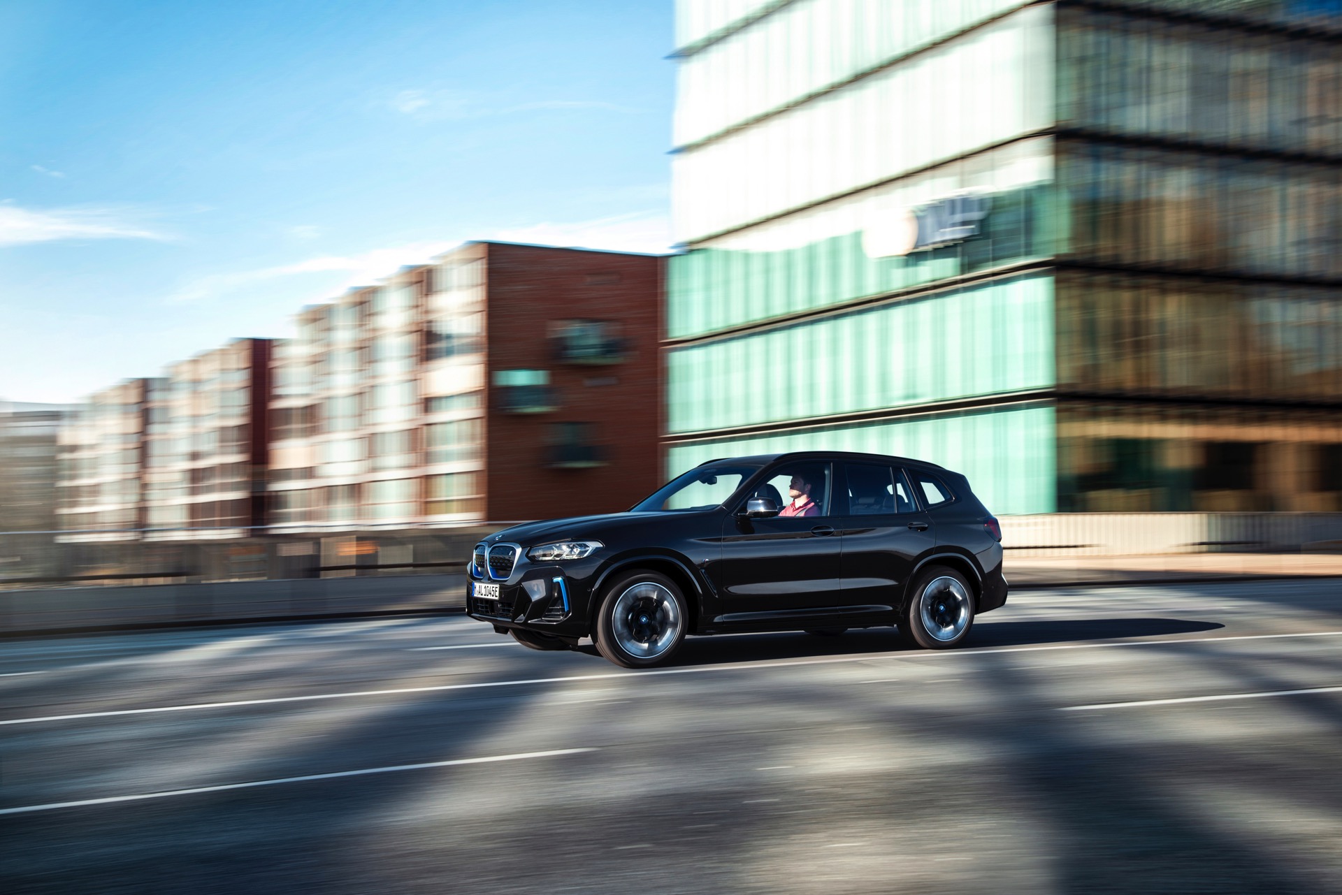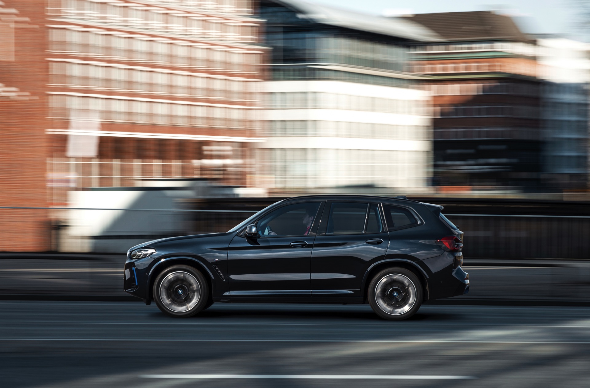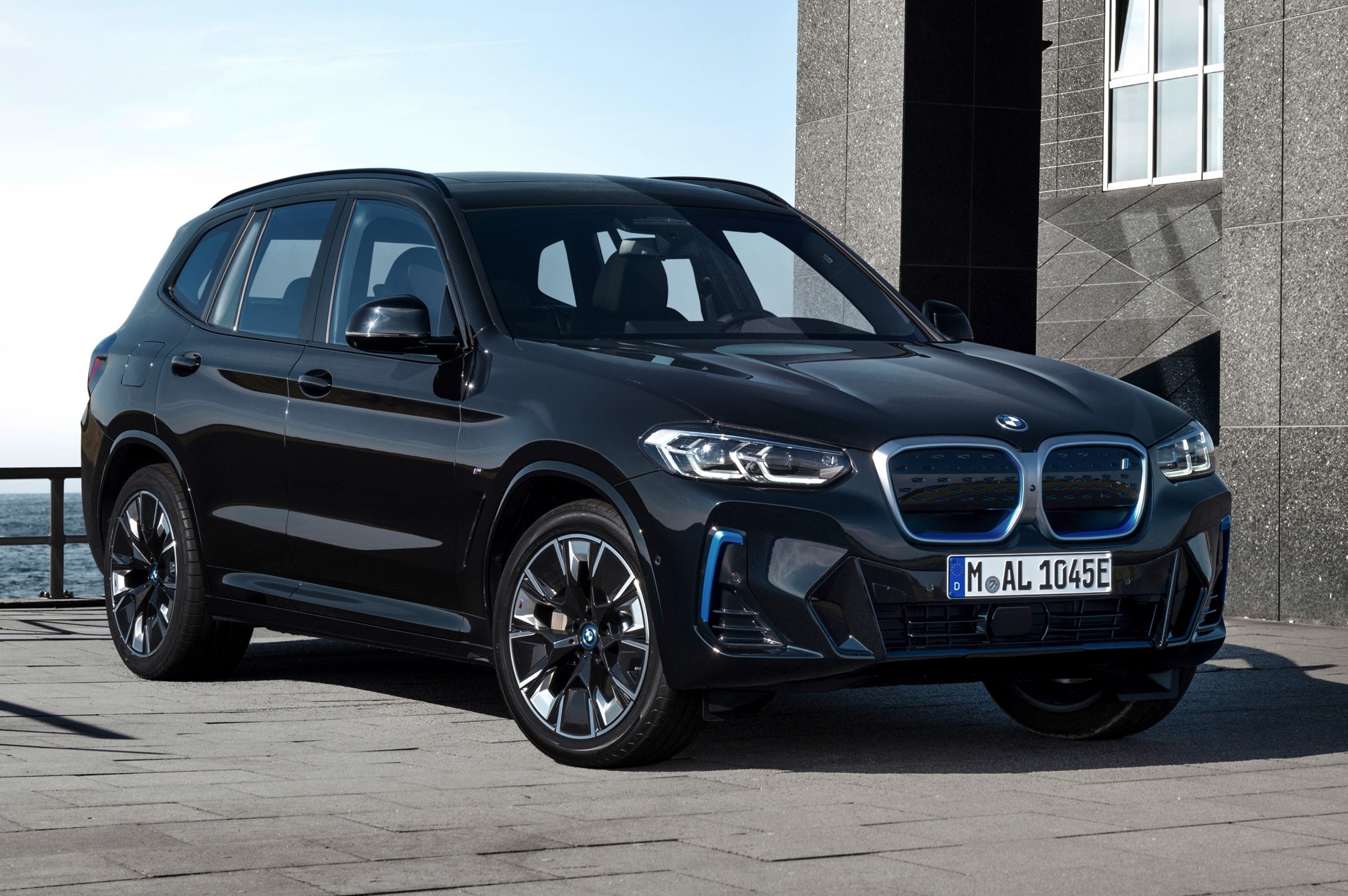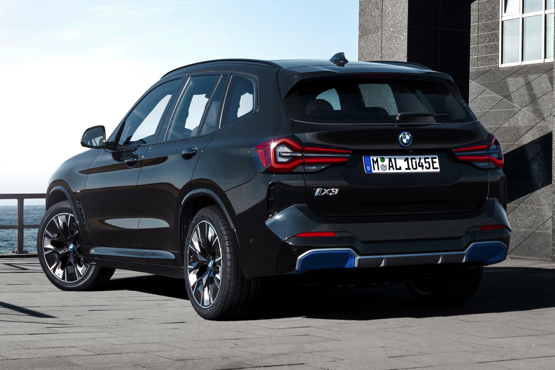 Auf den ersten Fotos sehen wir das BMW iX3 Facelift 2021 aber nicht nur mit der nun serienmäßigen M-Schürze, sondern auch mit den weiterhin abwählbaren Design-Akzenten in BMW i Blau und den neuen M Aerodynamik-Rädern im 20 Zoll-Format. Anders als die blau betonten Aerodynamik-Elemente an Front- und Heckschürze sind die blauen Einfassungen der BMW-Logos nicht abwählbar, denn diese sollen Rettungskräfte nach einem Unfall eindeutig auf die Hochvolt-Komponenten des elektrischen Antriebs hinweisen.