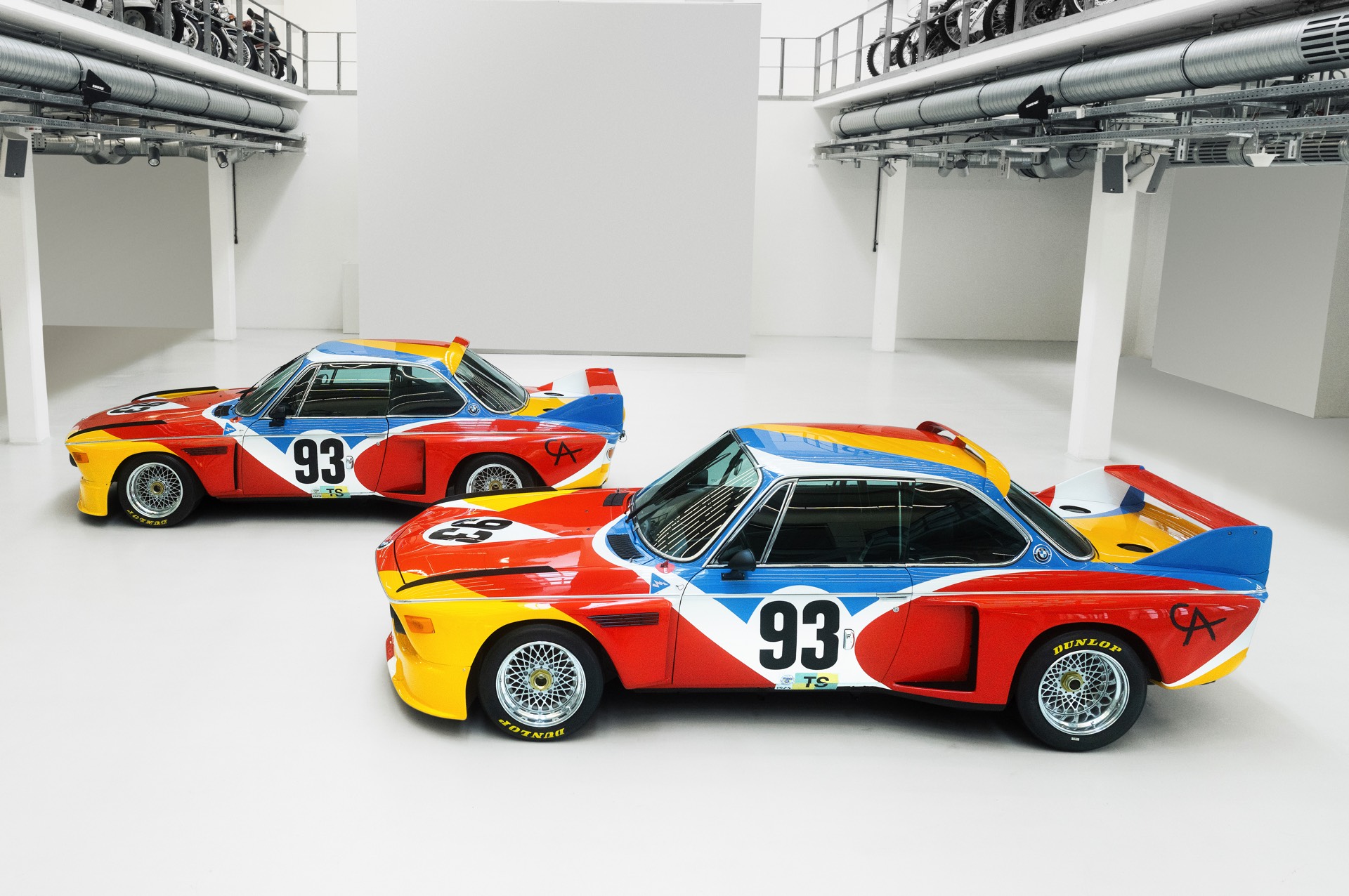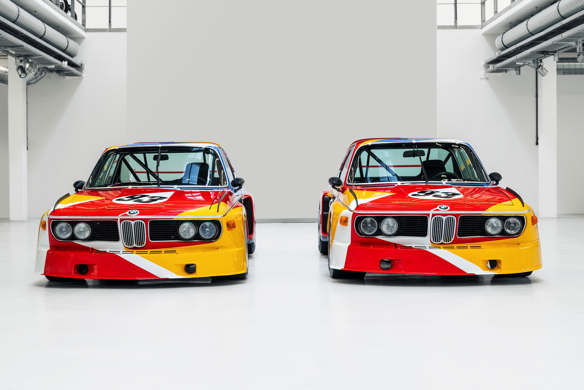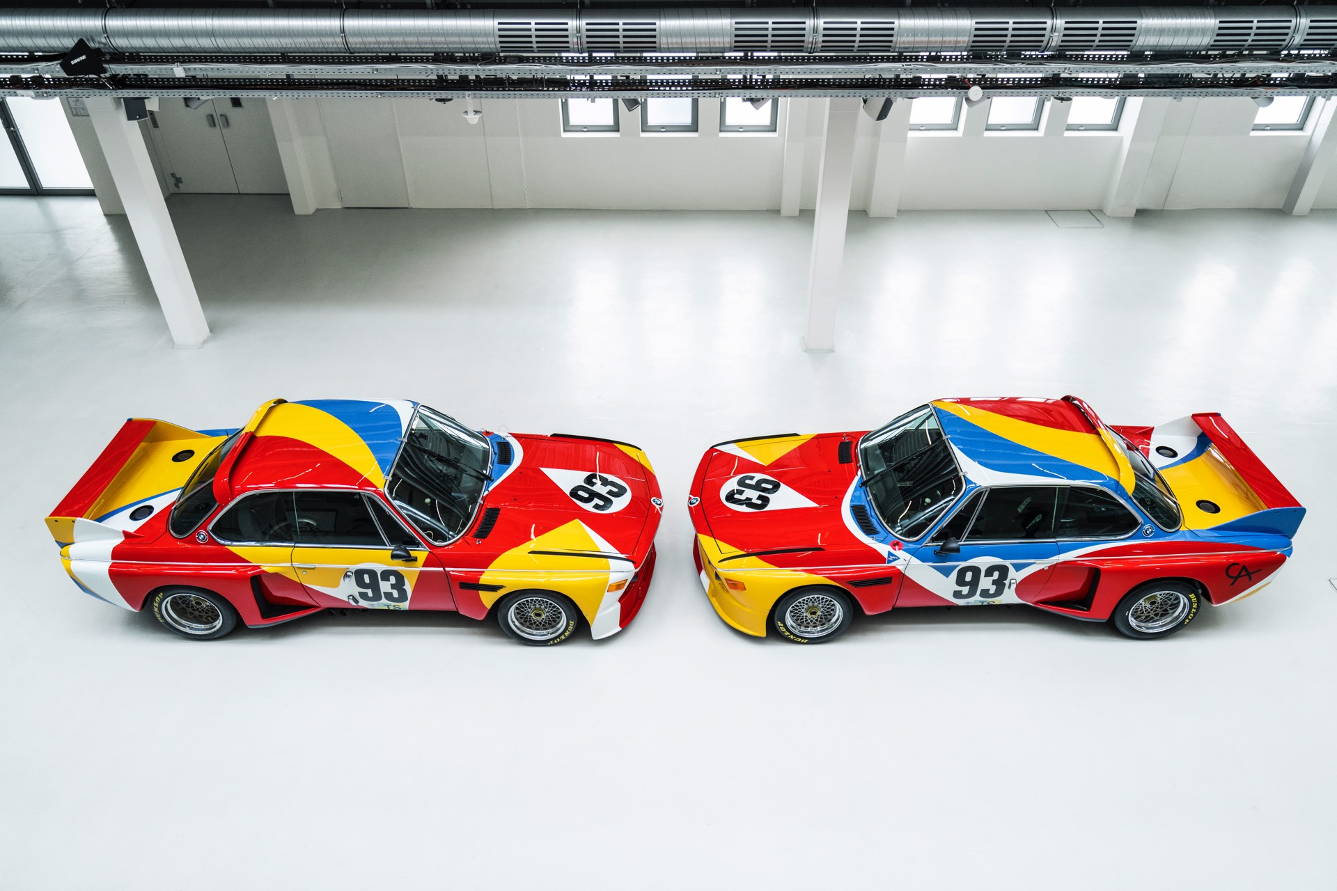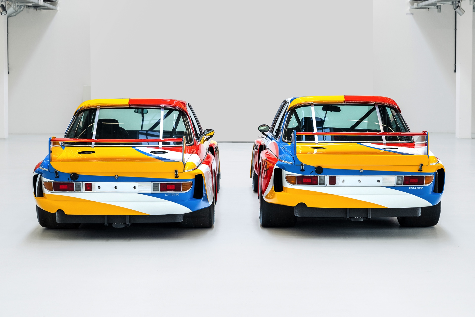 Nein, bei diesen Fotos handelt es sich weder um eine optische Täuschung noch um einen Photoshop-Effekt: Was hier zu sehen ist, sind tatsächlich zwei BMW 3.0 CSL Art Cars von Alexander Calder. Aber auch der Gedanke an eine simple Kopie oder Replika des Originals von 1975 greift zu kurz, denn das zweite Fahrzeug, das dem ersten in jeder Hinsicht gleicht wie ein eineiiger Zwilling dem anderen, trägt sogar die gleiche Fahrgestellnummer: Es handelt sich um den sogenannten Artist’s Proof, also eine Art identisches Belegexemplar, das Alexander Calder von Anfang an zustand – das aber bis jetzt nie realisiert wurde.