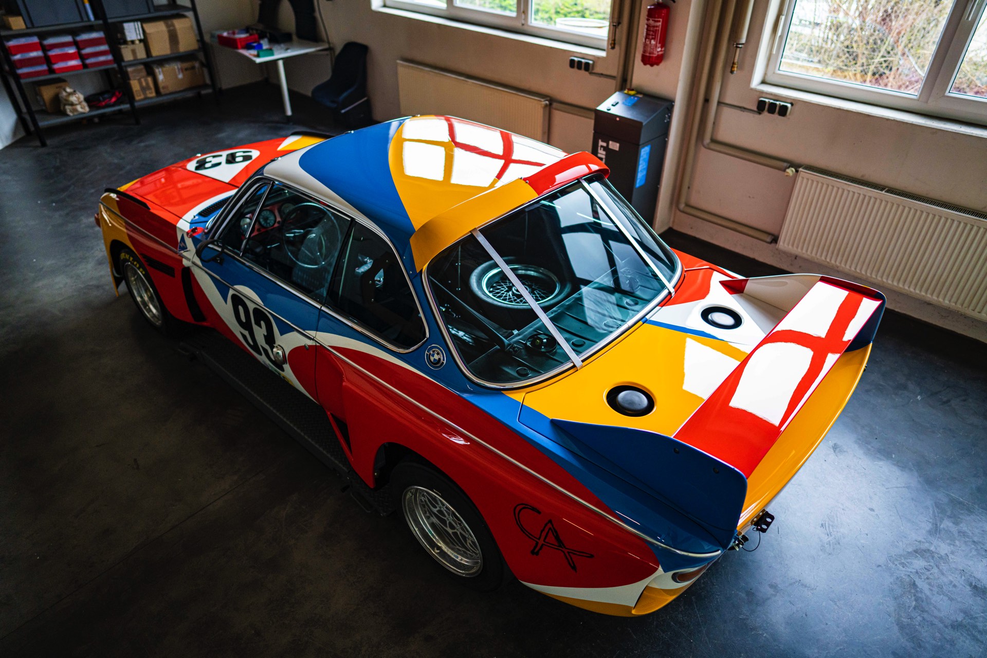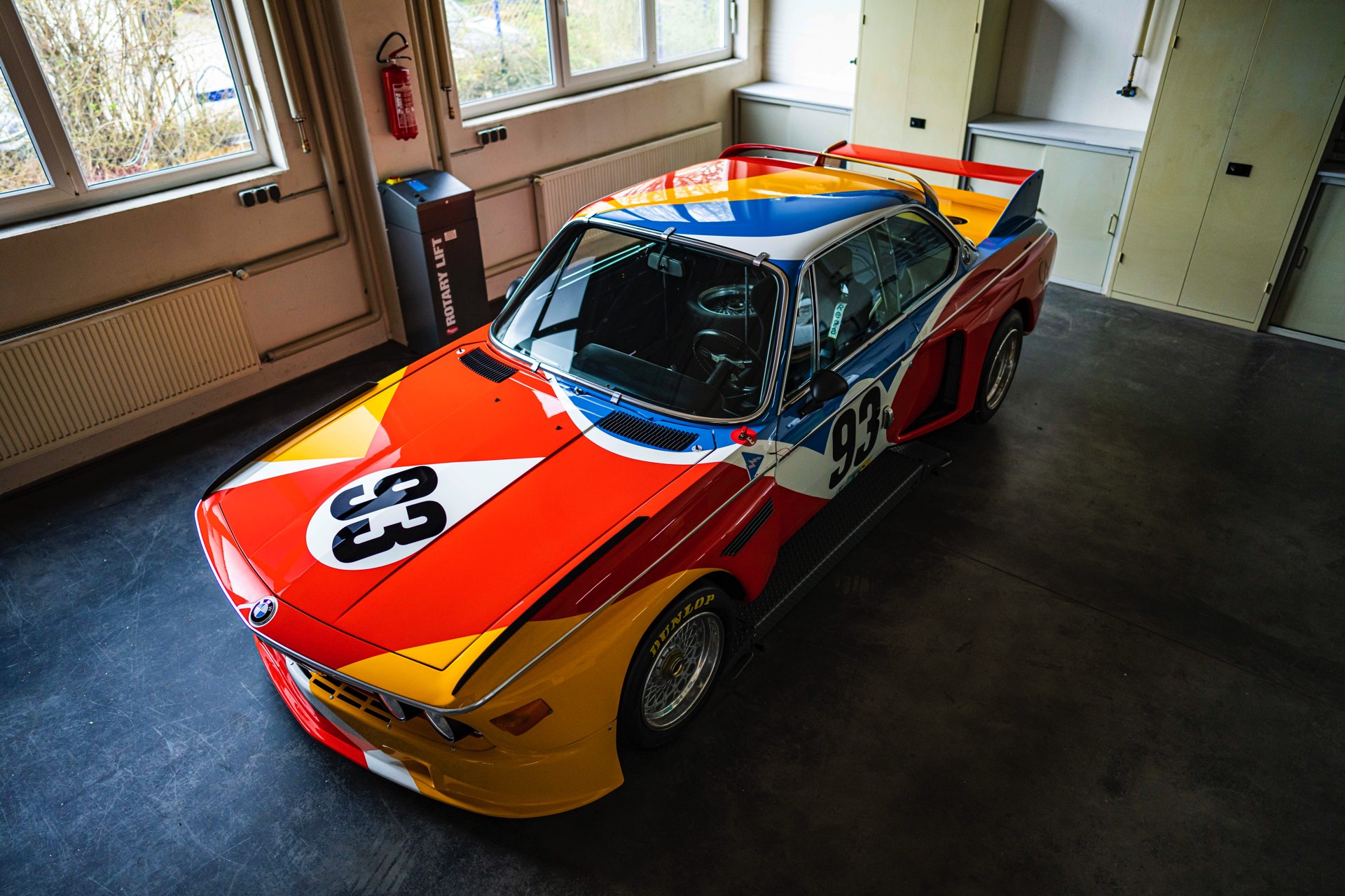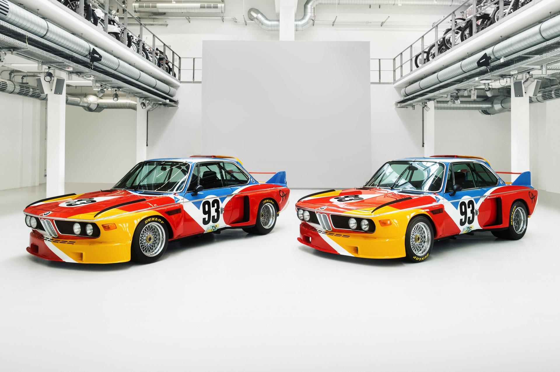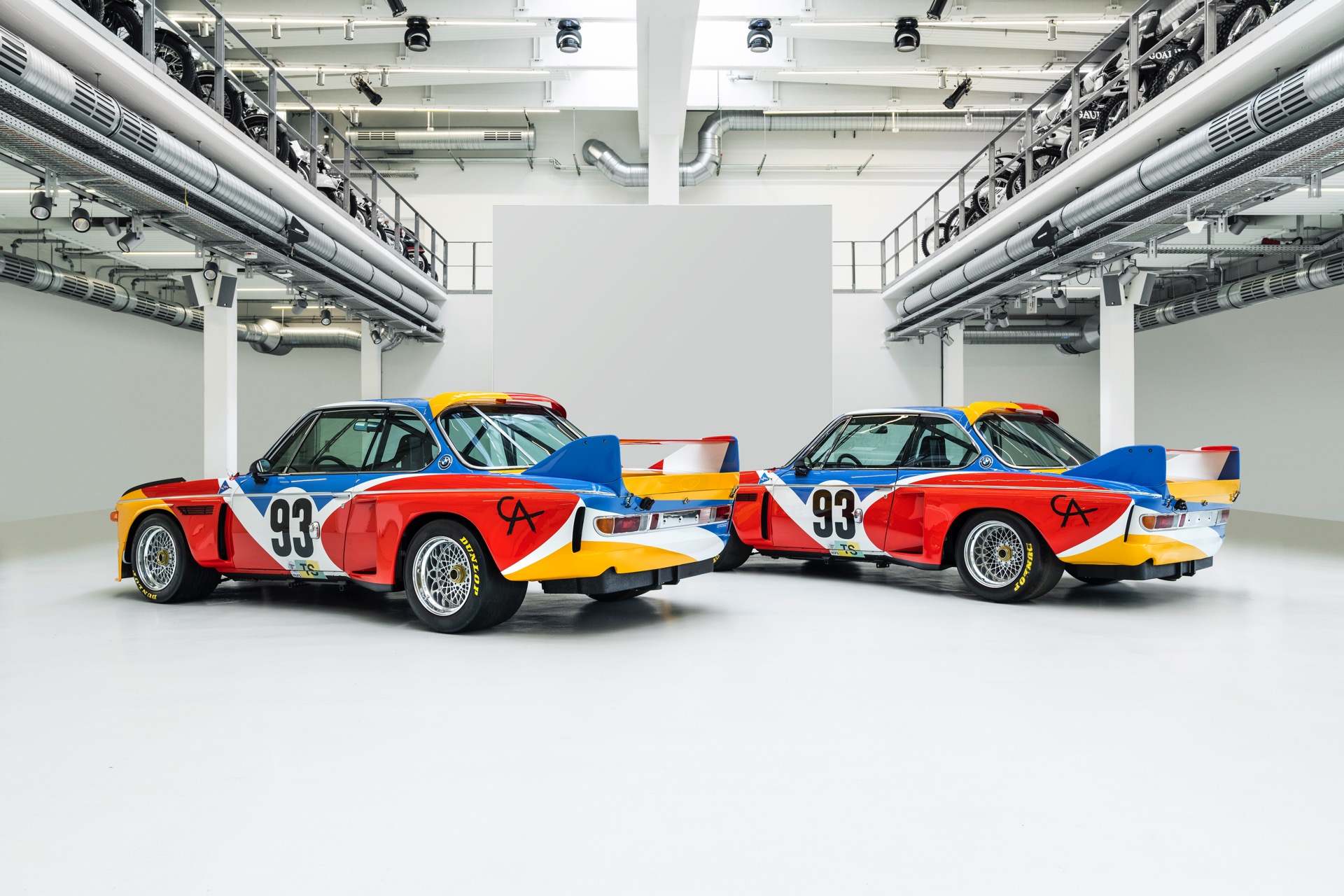 Nein, bei diesen Fotos handelt es sich weder um eine optische Täuschung noch um einen Photoshop-Effekt: Was hier zu sehen ist, sind tatsächlich zwei BMW 3.0 CSL Art Cars von Alexander Calder. Aber auch der Gedanke an eine simple Kopie oder Replika des Originals von 1975 greift zu kurz, denn das zweite Fahrzeug, das dem ersten in jeder Hinsicht gleicht wie ein eineiiger Zwilling dem anderen, trägt sogar die gleiche Fahrgestellnummer: Es handelt sich um den sogenannten Artist’s Proof, also eine Art identisches Belegexemplar, das Alexander Calder von Anfang an zustand – das aber bis jetzt nie realisiert wurde.