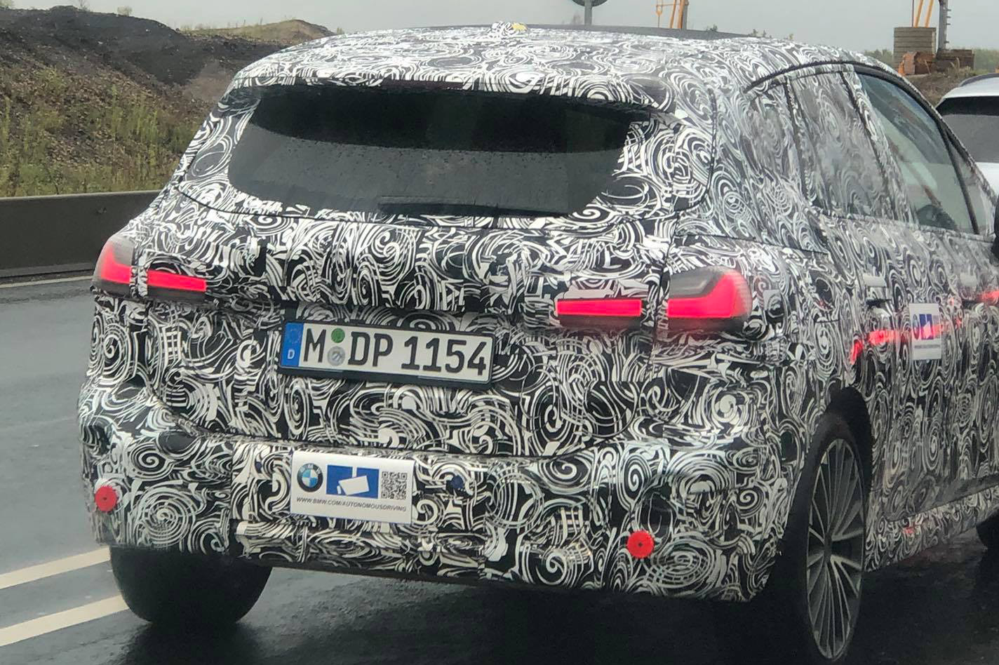 Die zweite Generation des BMW 2er Active Tourer wird noch in diesem Jahr vorgestellt und feiert 2022 ihren Marktstart, nun geht die Test-Arbeit offenbar in die heiße Phase. Einer unserer Leser aus dem Großraum Leipzig hat den Kompakt-Van auf der Fahrt zum Gasthof Tautendorf entdeckt und die Gelegenheit gleich für ein paar Erlkönig-Fotos genutzt, die uns neben den generellen Proportionen auch mehrere interessante Details zeigen: Angefangen von den Rückleuchten, deren Stil mit einem einzelnen flachen Leuchtband an den aktuellen 3er erinnert, über die flächenbündig integrierten Türgriffe bis hin zur auffällig kompakten Antennen-Finne auf dem Dach. Aufmerksamen Betrachter fallen außerdem die Erlkönig-Aufkleber mit QR-Code ins Auge, mit denen auf die verbaute Kamera-Technik der Sicherheits- und Assistenzsysteme sowie auf die Datensammlung zum Anlernen der Software für das Autonome Fahren hingewiesen wird.