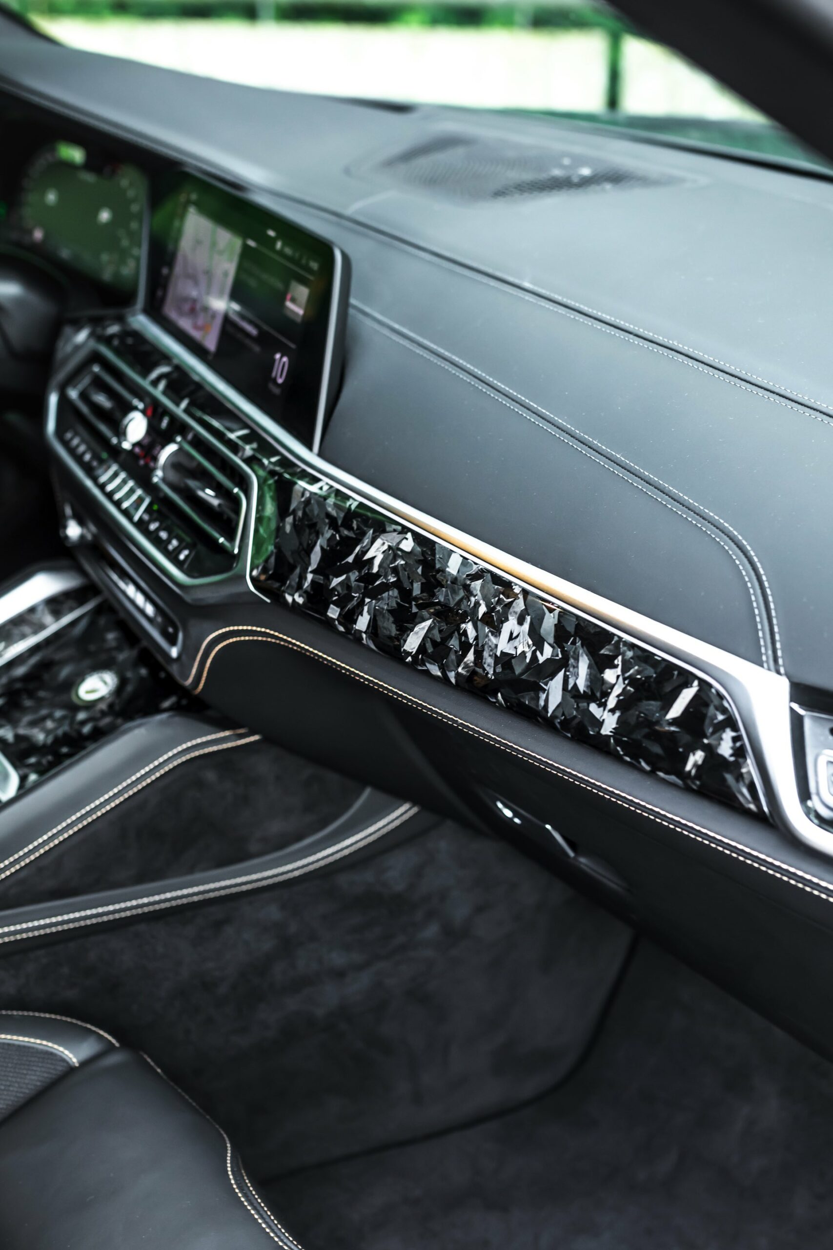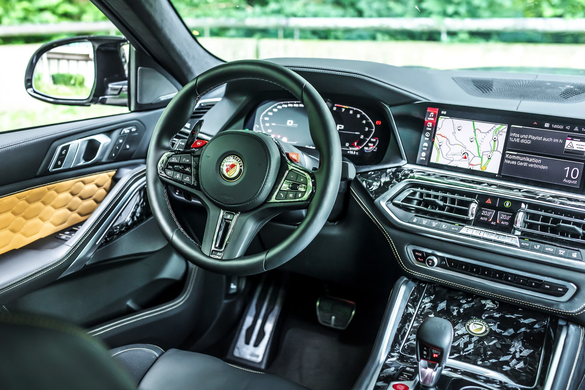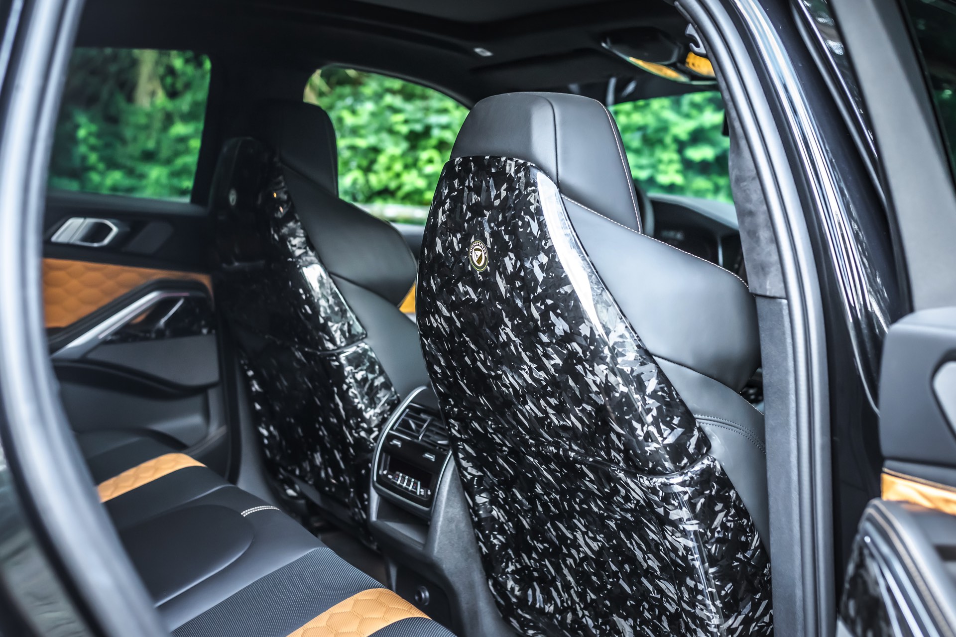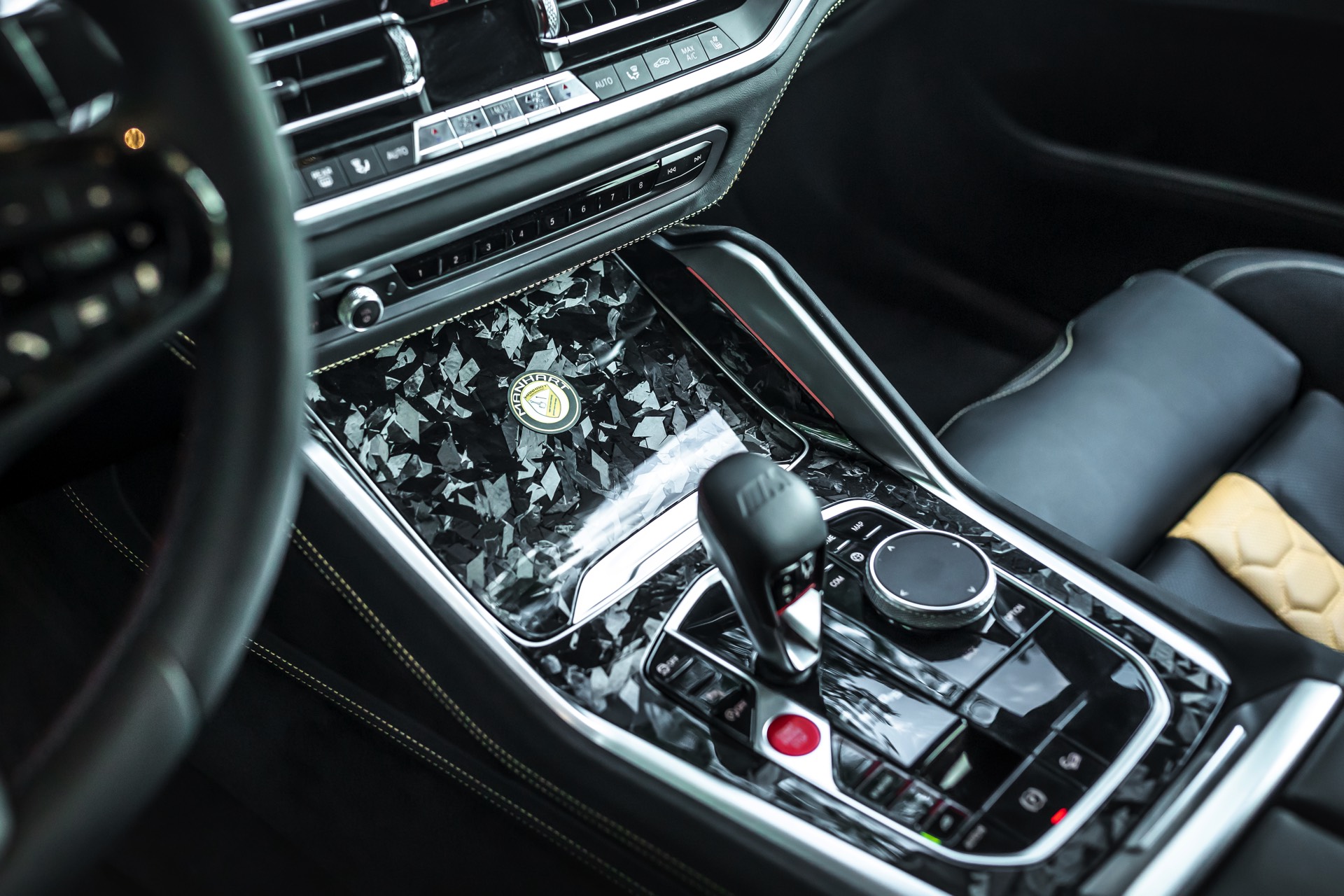 Nicht fehlen darf aus Manhart-Sicht die Leistungssteigerung für den V8-Biturbo: Statt 625 sollen dank MHtronik-Zusatzsteuergerät und ECU-Remapping 730 PS für Vortrieb sorgen, das maximale Drehmoment klettert von 750 auf 900 Newtonmeter. Sein Überholprestige hat dieser BMW X6 M Competition also zweifelsohne verdient – und damit auch die Insassen jederzeit an den extremen Look des Fahrzeugs erinnert werden, hat Manhart auch im Innenraum jede Menge Forged Carbon verbaut: