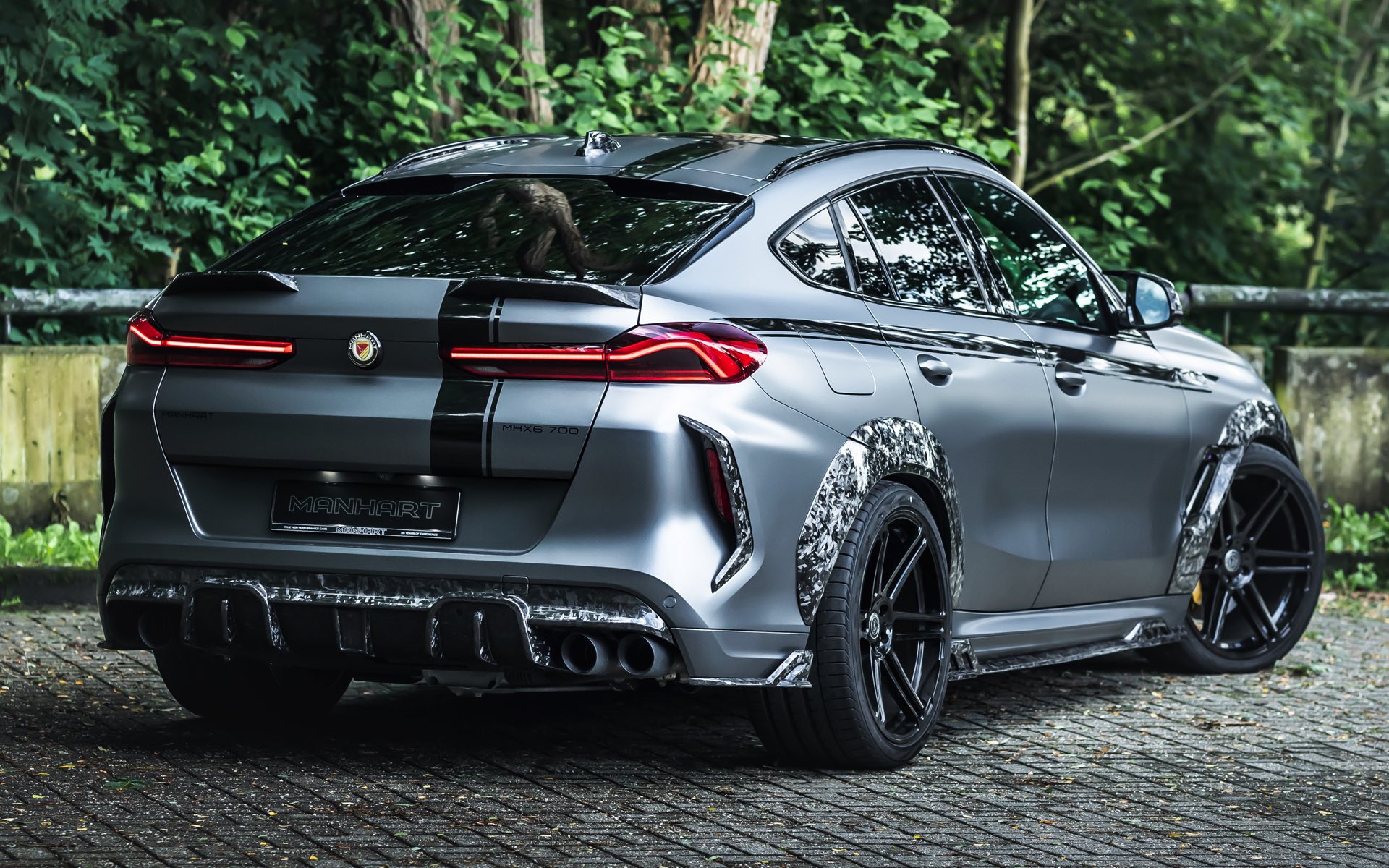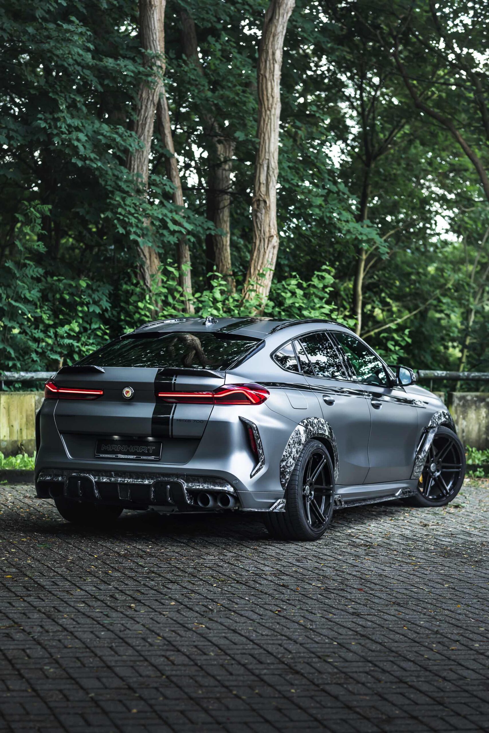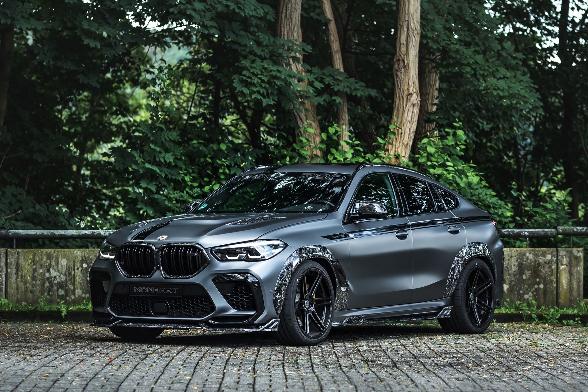 Understatement und Zurückhaltung überlässt man bei Manhart Performance schon immer gerne den anderen, in Wuppertal setzt man stattdessen auch optisch auf Vollgas. Das jüngste Beispiel dafür liefert der Manhart MHX6 700 WB auf Basis des ohnehin nicht gerade dezenten BMW X6 M Competition der Generation F96. Um das Performance-SUV mit der Coupé-Dachlinie nochmals wesentlich von der Serie abzugrenzen, setzt Manhart auf einen Widebody-Umbau und den charakteristischen Forged Carbon-Look, dessen Faserstruktur manchen Betrachter eher an Mamor oder Granit als an den tatsächlich zelebrierten Leichtbau denken lässt.