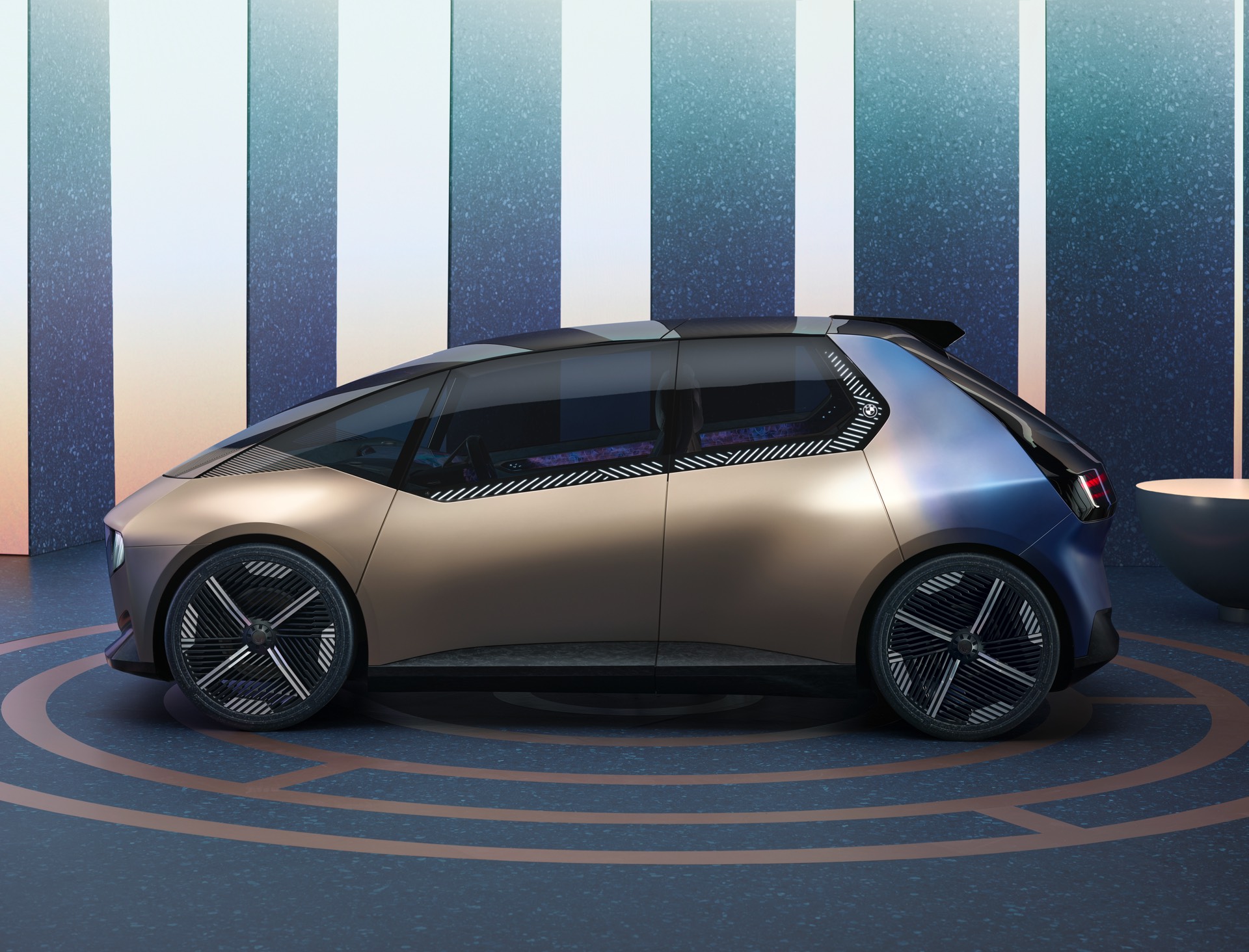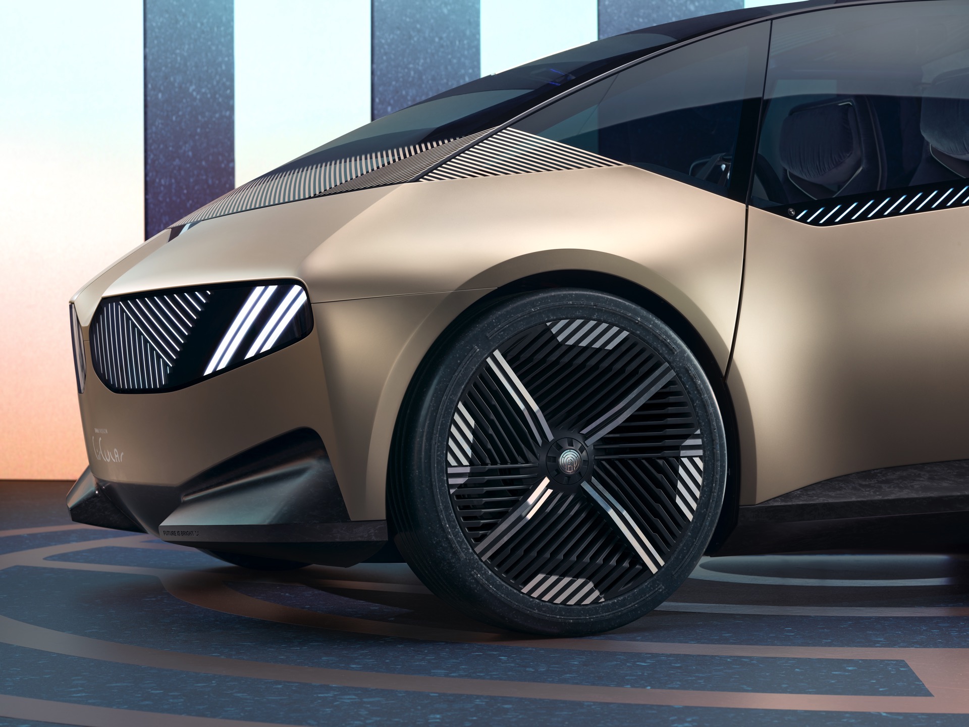 Das kompakte Elektroauto mit Feststoff-Batterie ist dabei nicht als Vorschau auf ein kommendes Modell und schon gar nicht auf die “Neue Klasse” ab 2025 gemeint, sondern soll stattdessen die Vision der Circular Economy greifbar machen. Jedes sichtbare oder unsichtbare Material, jede Schraube und jedes noch so kleine Einzelteil ist ebenso wie die Feststoff-Batterie am Ende des Lebenszyklus vollständig recyclebar. Elemente wie die Schnellverschlüsse an Felgen, Armaturenträger oder Sitzen machen bei genauerem Hinsehen sichtbar, dass die scheinbar fest zusammengehörigen Komponenten mit wenigen Handgriffen wieder in ihre Einzelteile zerlegt werden können.
