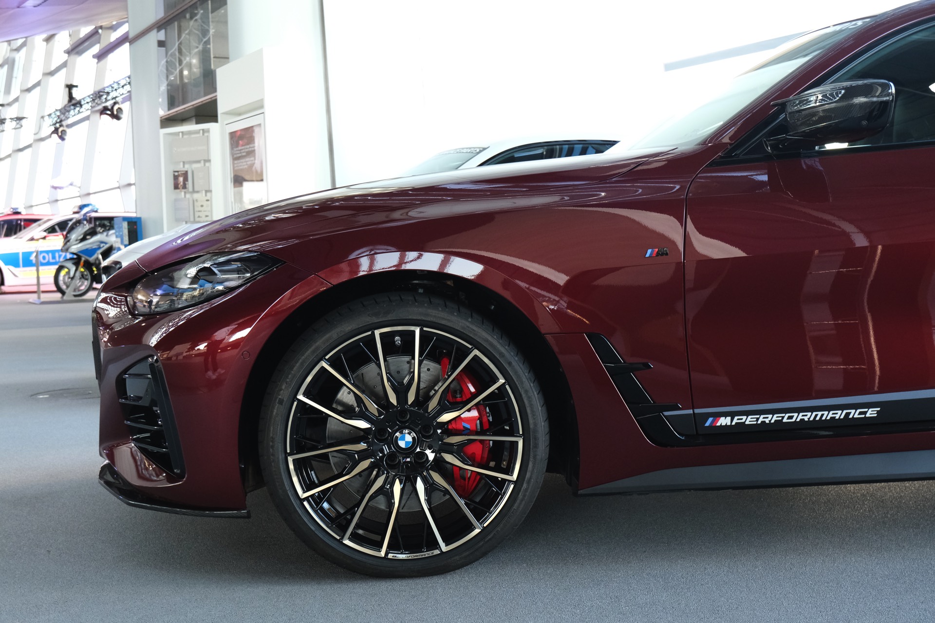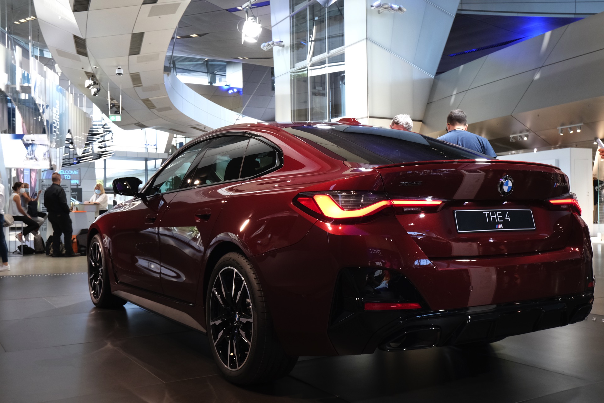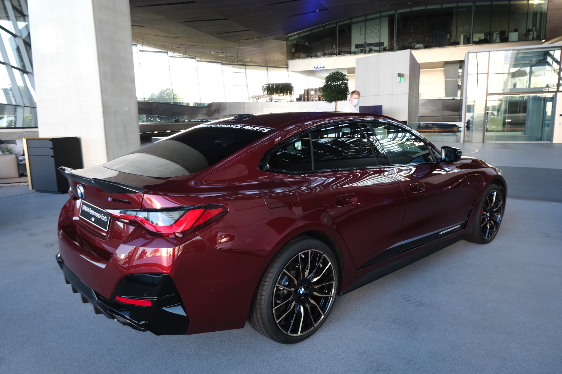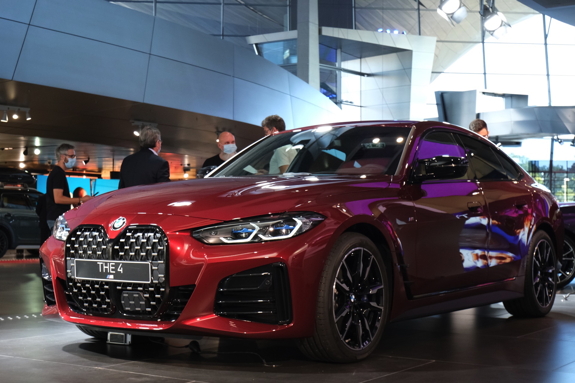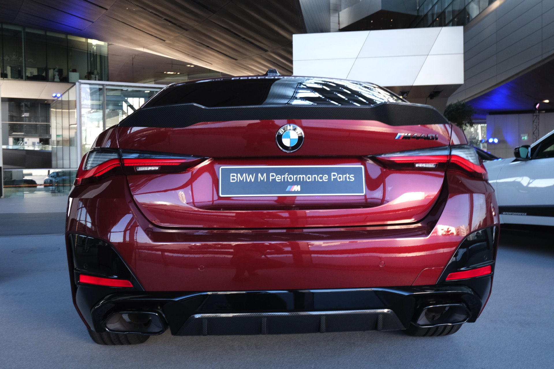 Gleich im Doppelpack feiert das neue BMW 4er Gran Coupé G26 seine Premiere im Rahmen der IAA 2021. Zwar ist das viertürige Coupé auf dem eigentlichen Messegelände nur als rein elektrischer i4 zu sehen, in der BMW Welt darf der voraussichtlich meistverkaufte 4er aber auch als M440i mit konventionellem Antrieb glänzen. Neben einem Exemplar mit Lackierung in Aventurinrot und erweiterter Shadow Line wird dabei auch ein Fahrzeug mit Tuning-Komponenten von BMW M Performance gezeigt, das ebenfalls in dem kräftigen Dunkelrot lackiert ist.