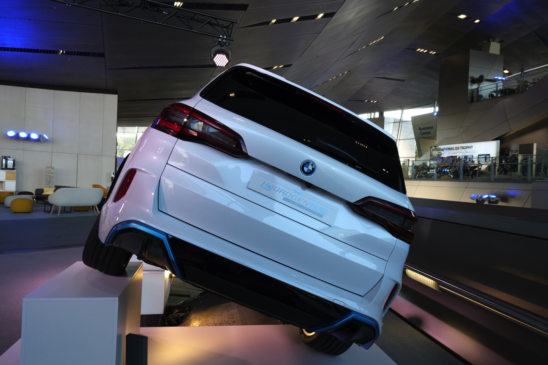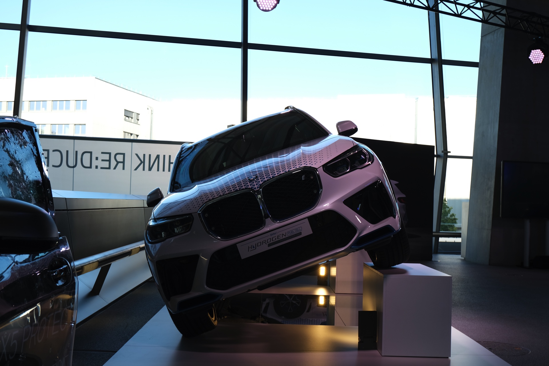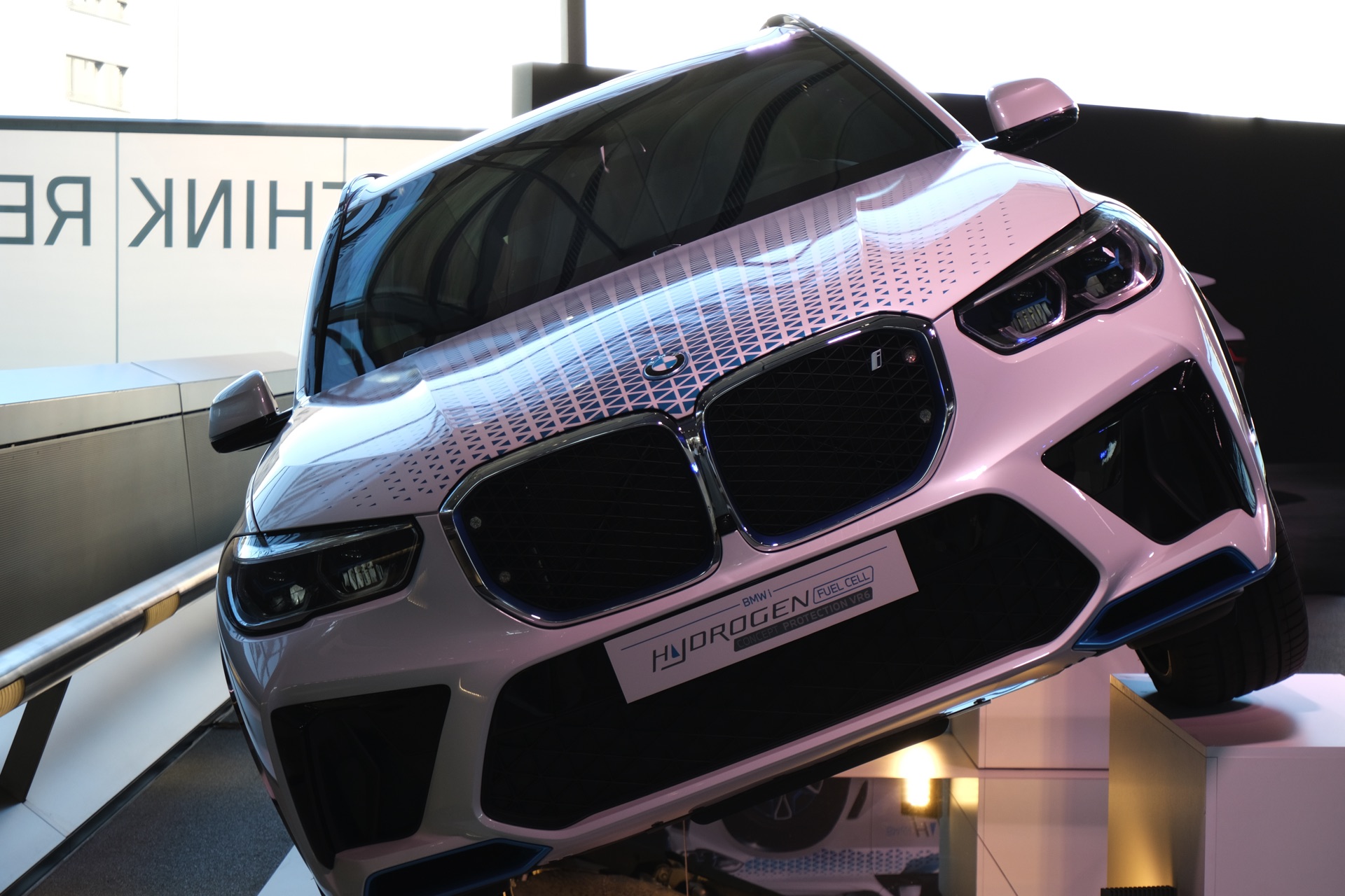 Der BMW iX5 Hydrogen Protection ist dafür mit Formteilen aus hochfestem Stahl und einer rund 30 Millimeter starken Sicherheits-Verglasung ausgestattet. Wesentlicher Bestandteil des Sicherheits-Ansatzes ist aber auch in diesem Fall, dass die Panzerung möglichst unsichtbar sein soll, denn ein offensichtlich geschütztes Fahrzeug würde nur unnötige Aufmerksamkeit auf das Auto und seine Insassen lenken. Auch der in der BMW Welt ausgestellte BMW iX5 Hydrogen Protection zeigt seine Panzerung deshalb nicht auf den ersten Blick, sondern erst bei genauerem Hinsehen – etwa am Unterboden.