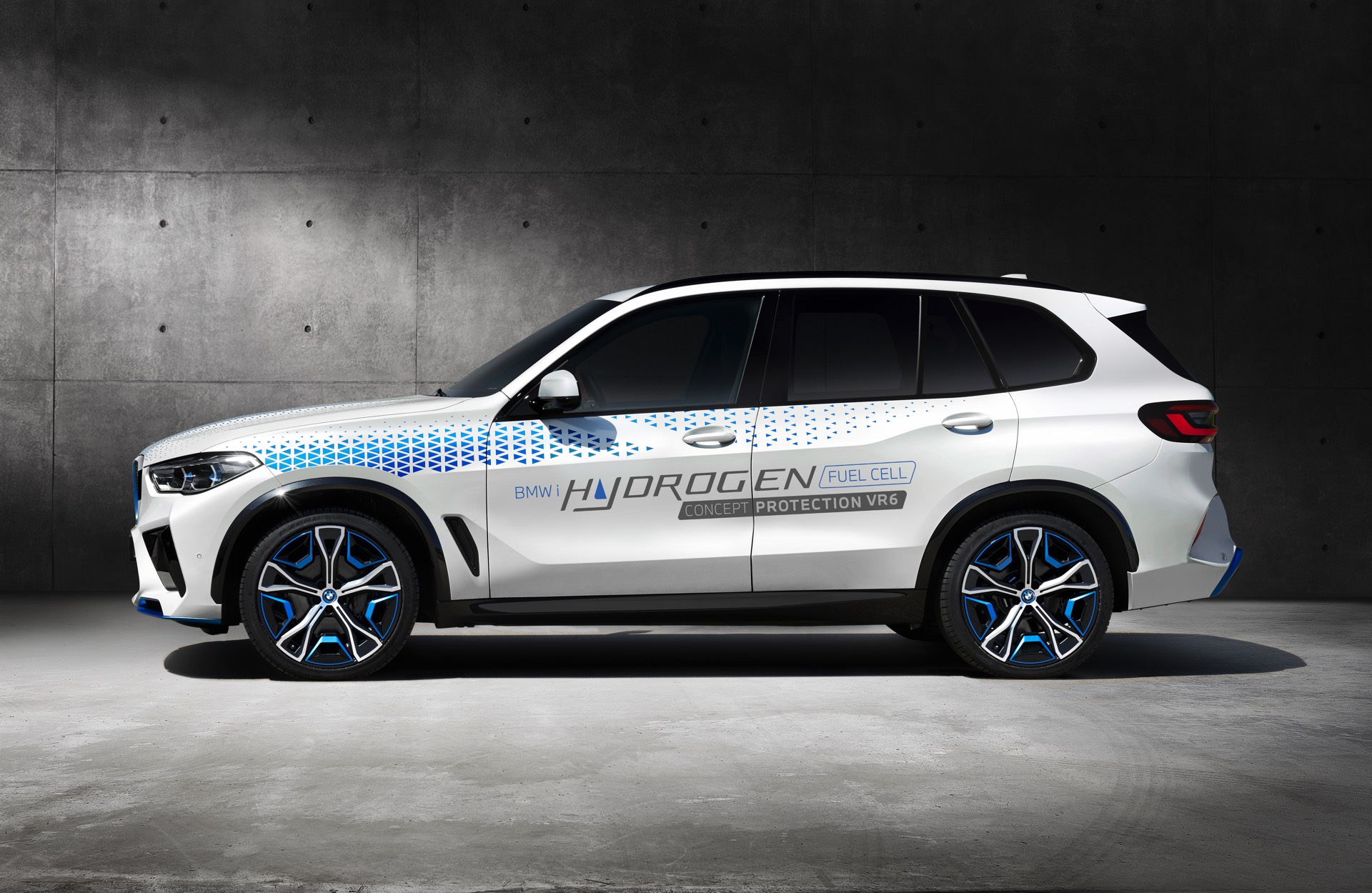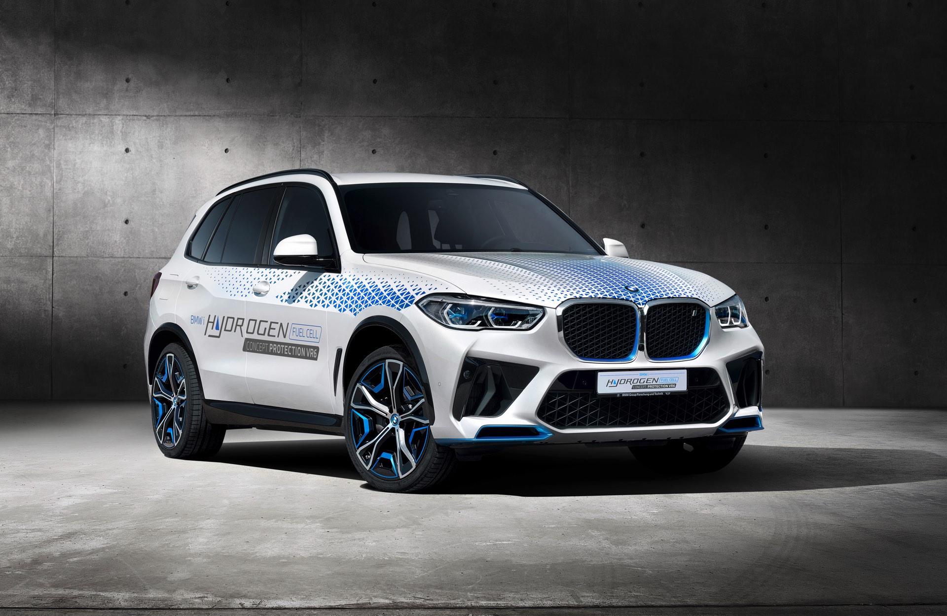 Mit Blick auf den Wasserstoff-Antrieb wurde der Unterboden-Schutz deutlich verbessert, sodass auch von unter dem Fahrzeug explodierenden Handgranaten keine Gefahr für die Wasserstoff-Tanks oder die Leitungssysteme in Richtung Brennstoffzelle ausgeht. Nach zwei unter Aufsicht des staatlichen Beschussamts durchgeführten Versuchen mit detaillierter Analyse der verursachten Schäden hat der BMW iX5 Hydrogen Protection die Zertifizierung gemäß der Schutzklasse VR6 erhalten. Er ist damit offiziell genauso sicher wie der reguläre BMW X5 Protection VR6 mit konventionellem Antrieb, kann im Gegensatz zu diesem aber auch lokal emissionsfrei bewegt werden.