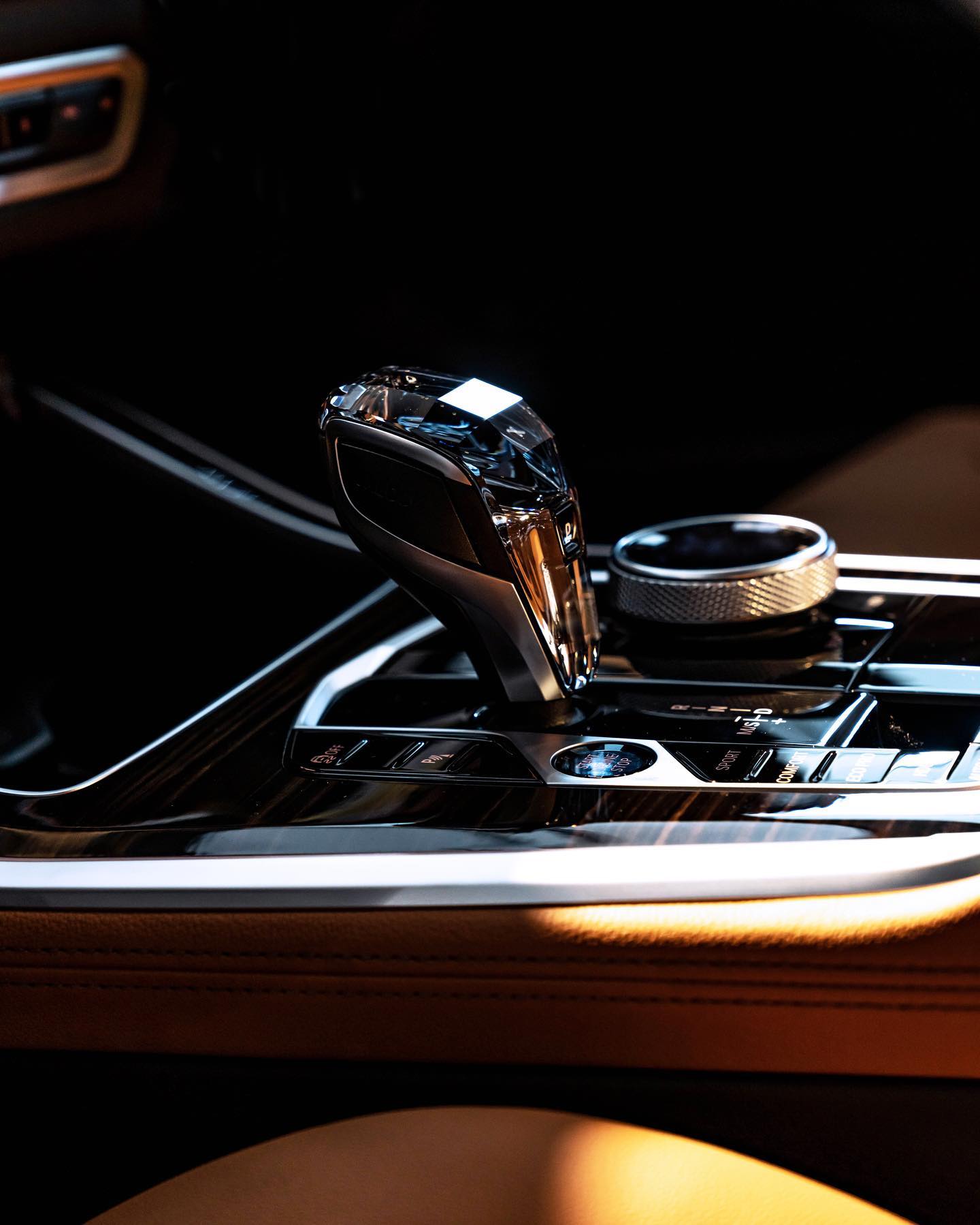 Im Innenraum trägt das Fahrzeug die Lederausstattung Vernasca im Farbton Cognac, außerdem sind die hochwertigen Glasapplikationen aus dem “CraftedClarity”-Paket erkennbar. Mit dieser Sonderausstattung ist unter anderem der Wählhebel für die Achtgang-Automatik aus Kristall-Glas gefertigt, wobei das ins Glas eingearbeitete und dezent beleuchtete “X” das optische Highlight ist.