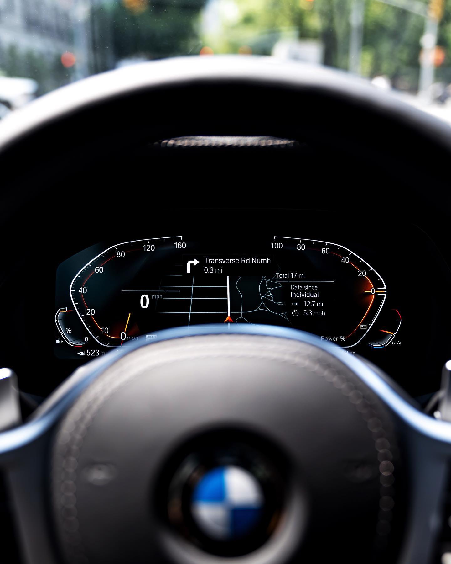 Auf den Fotos aus New York sehen wir den BMW X5 G05 mit M Sport-Paket sowie Shadow Line mit erweiterten Umfängen, weshalb Niere und Endrohrblenden in Hochglanz-Schwarz ausgeführt sind. Außerdem setzen die Sonnenschutzverglasung ab der B-Säule und Teile der 20 Zoll großen Leichtmetallräder im Design Sternspeiche 740 M Bicolor dunkle Akzente in Abgrenzung zur Individual-Lackierung in British Racing Green.