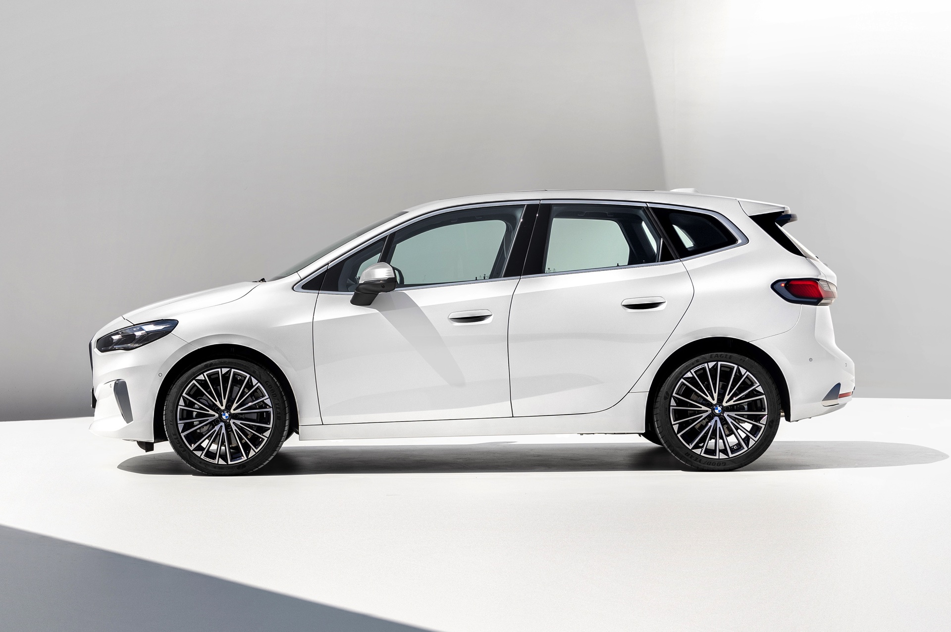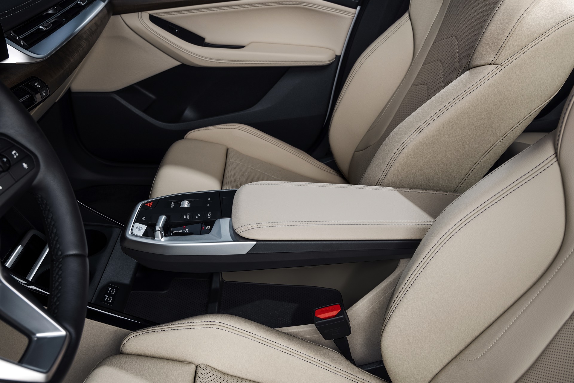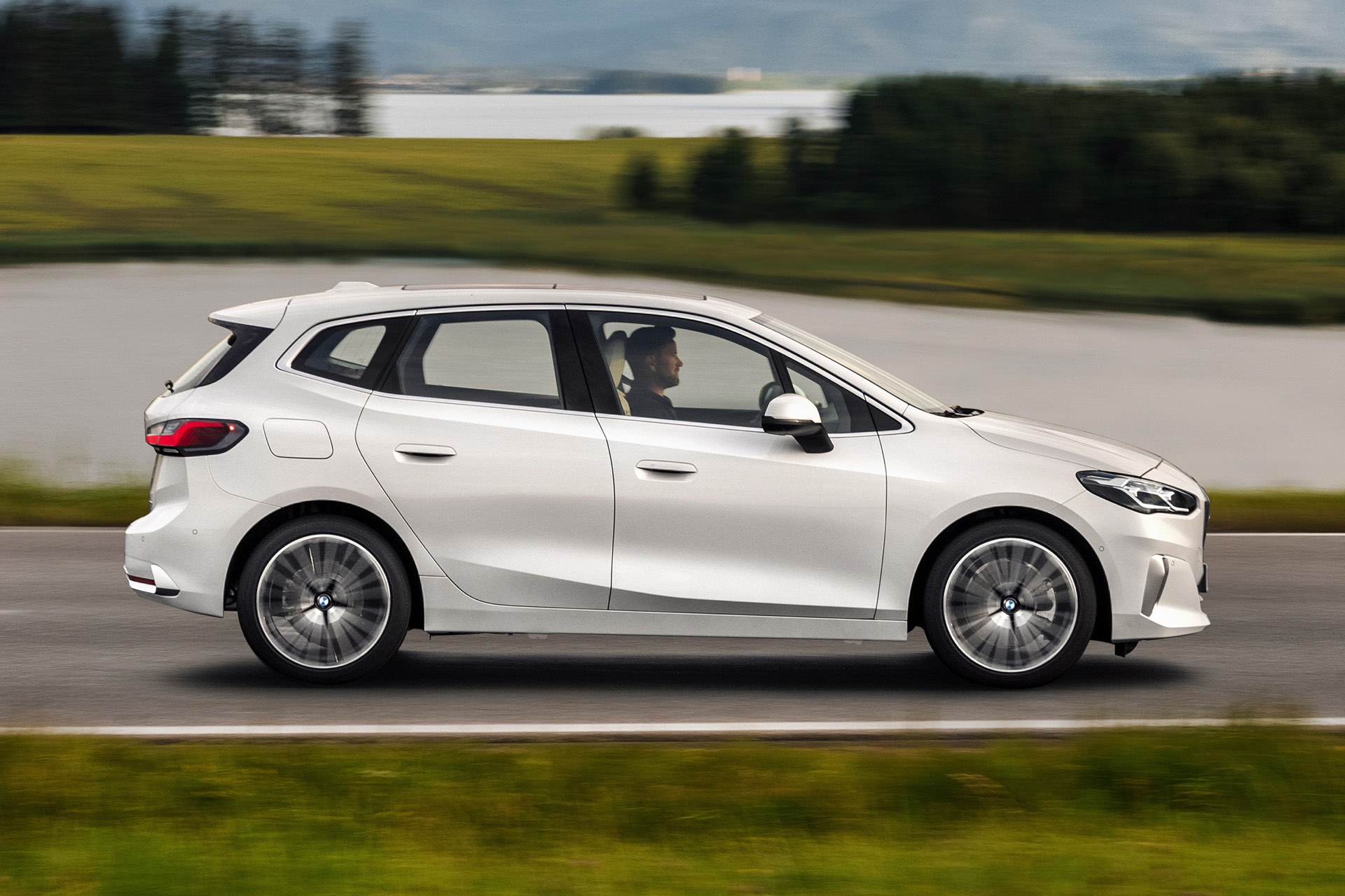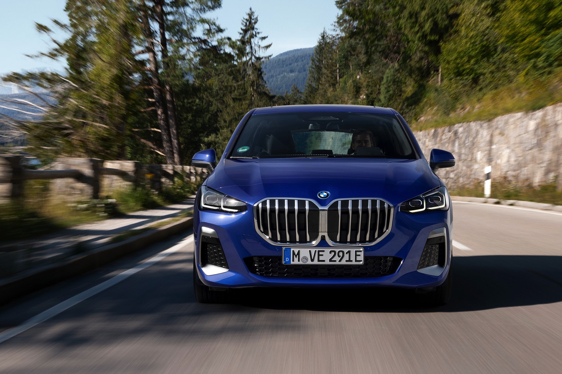 Der völlig neue Anspruch des BMW 2er Active Tourer wird auch im Innenraum auf den ersten Blick deutlich, denn der Van kommt serienmäßig mit Curved-Display und zahlreichen hochwertigen Assistenzsystemen. Hinter dem elegant in Richtung Fahrer geschwungenen Deckglas stecken ein 10,25 und ein 10,7 Zoll großes Display, auf denen die vielfältigen Inhalte der neuen Infotainment-Generation iDrive 8 ausgespielt werden können. Eine neue Generation von Lenkrädern und schicke Details wie die neuen Lautsprecher-Abdeckungen werten das Interieur zusätzlich auf. Als Kritikpunkt bleibt bestehen, dass die Platzverhältnisse kein Head-up-Display ohne zusätzliche kleine Scheibe ermöglichen. Außerdem bleibt abzuwarten, wie gut die Bedienung von BMW iDrive 8 ohne Controller gelingt, denn der Active Tourer verzichtet auf den etablierten Dreh-Drück-Steller und fokussiert sich stattdessen auf die Nutzung von Touch- und Sprachsteuerung.