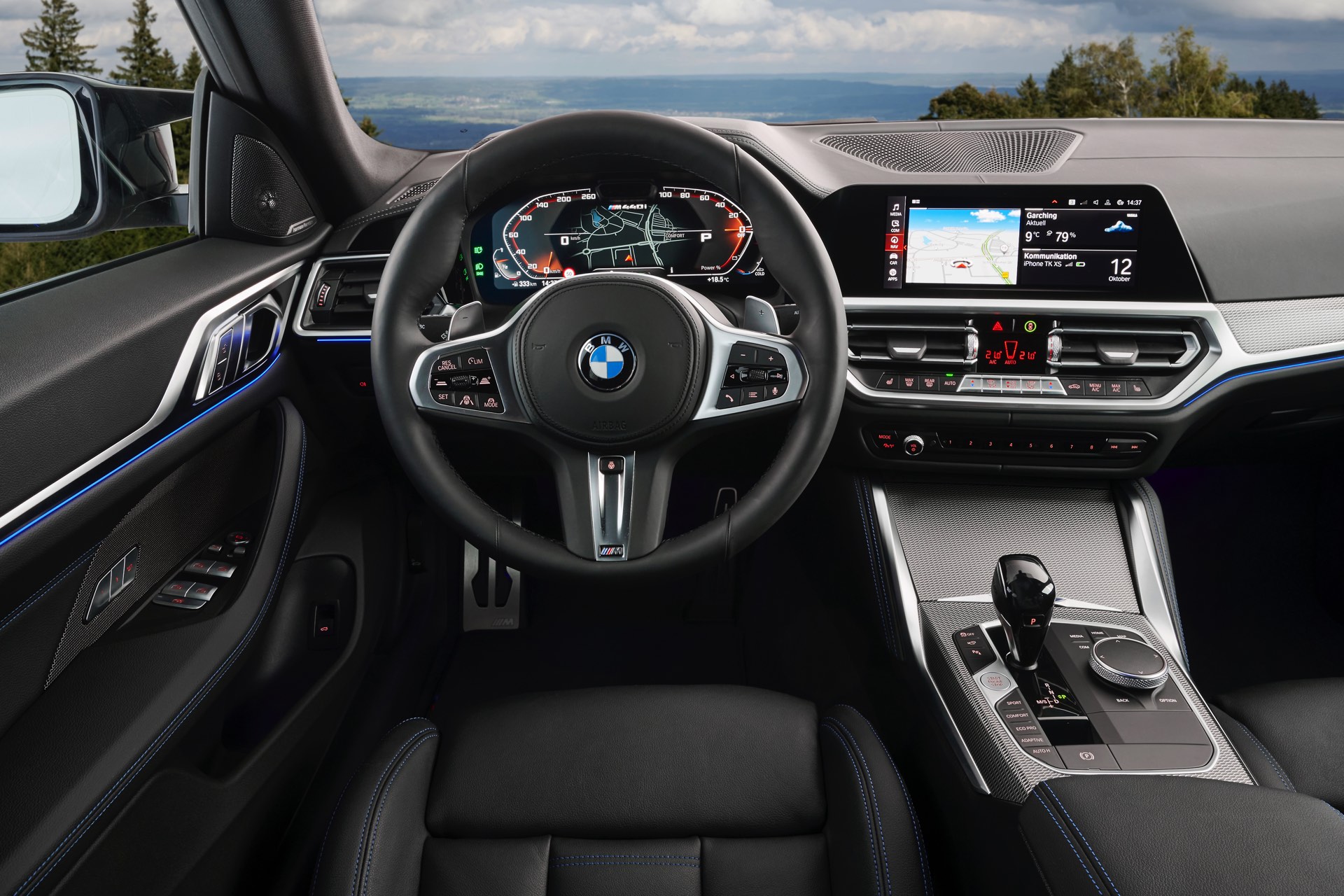 Dass für den Fahrer trotz beinahe identischem Exterieur nur wenig an den i4 erinnert, liegt nicht nur an der vollkommen anderen Charakteristik des Antriebsstrangs: Während das Cockpit des Elektro-4ers von Curved Display, weniger Tasten und iDrive 8 geprägt ist, kommt der Verbrenner-4er zumindest bis zum Facelift mit einem weniger futuristischen Setup. Wer nicht regelmäßig zwischen beiden Modellen umsteigt, wird hier aber sicher nichts vermissen – schließlich hat das BMW 4er Gran Coupé gerade als M440i jede Menge andere Reize für alle, die noch keine Lust auf den Wechsel zur E-Mobilität haben und sich stattdessen noch einmal einen BMW der alten Schule gönnen wollen.