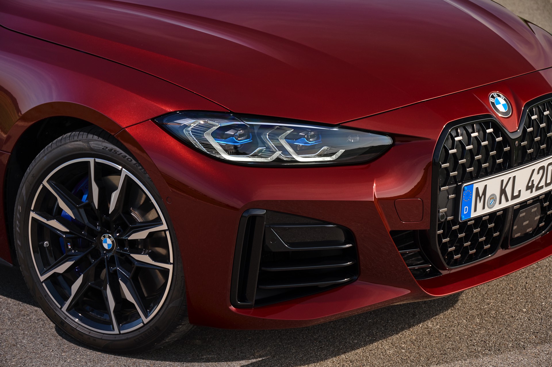 Äußerlich unterscheidet sich das BMW 4er Gran Coupé mit Verbrenner allerdings kaum vom elektrischen i4, was durchaus zur einen oder anderen Verwechslung führen könnte – zumindest so lange, bis der Blick auf die Endrohre am Heck fällt. Bei vielen anderen Details, angefangen mit den flächenbündig integrierten Türgriffen über die vier rahmenlosen Türen bis zur großen Heckklappe, gibt es hingegen keine Unterschiede zwischen 4er und i4. Der bequeme Einstieg in den Fond und der bequem zugängliche Kofferraum werden zuverlässig dafür sorgen, dass die meisten 4er-Kunden auch bei der zweiten Generation zum Gran Coupé greifen und sich damit gegen die zweitürigen Varianten entscheiden.