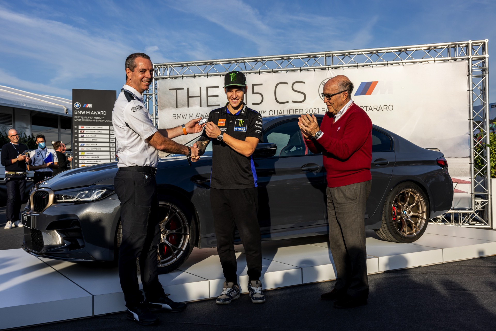 Franciscus van Meel (Geschäftsführer der BMW M GmbH): “Der BMW M Award hat für uns eine sehr große Bedeutung. Die MotoGP ist die Königsklasse im Motorrad-Rennsport und uns ist sehr wichtig, die herausragenden Leistungen der MotoGP-Fahrer über den Lauf der Saison zu würdigen. An jedem Rennwochenende begeistern sie uns mit atemberaubenden Performances auf der Rennstrecke. Die MotoGP vereint die besten Motorrad-Rennfahrer der Welt – und der BMW M Award ist die passende Auszeichnung für den Schnellsten unter ihnen. Dies ist zum zweiten Mal in Folge Fabio Quartararo. Er hat in dieser Saison erneut sein Können und seinen Speed unter Beweis gestellt, wurde verdient vorzeitig Weltmeister und war auch im BMW M Award wieder eine Klasse für sich. Wir freuen uns sehr, ihm als Auszeichnung für seine Leistungen im Qualifying den BMW M5 CS zu überreichen. Herzlichen Glückwunsch, Fabio – zum Weltmeistertitel und zum erneuten Sieg im BMW M Award. Hier in Valencia findet unsere 23. Saison als ‚Official Car of MotoGP’ ihren Abschluss, und nun freuen wir uns auf 2022. Für uns bei BMW M wird es ein besonderes Jahr, denn wir feiern unseren 50. Geburtstag – und die Planungen für Jubiläumshighlights in der MotoGP laufen bereits.”
