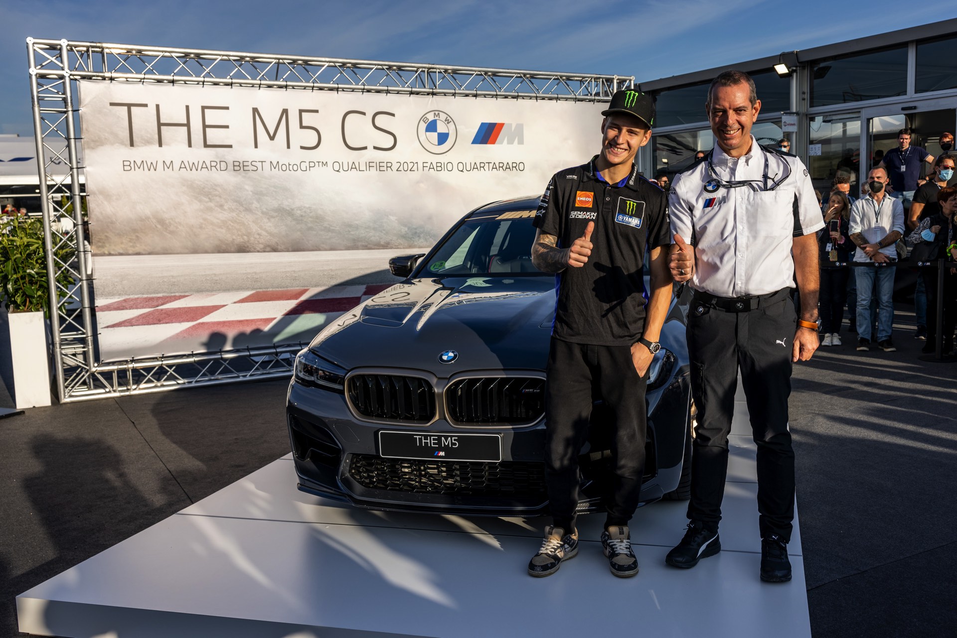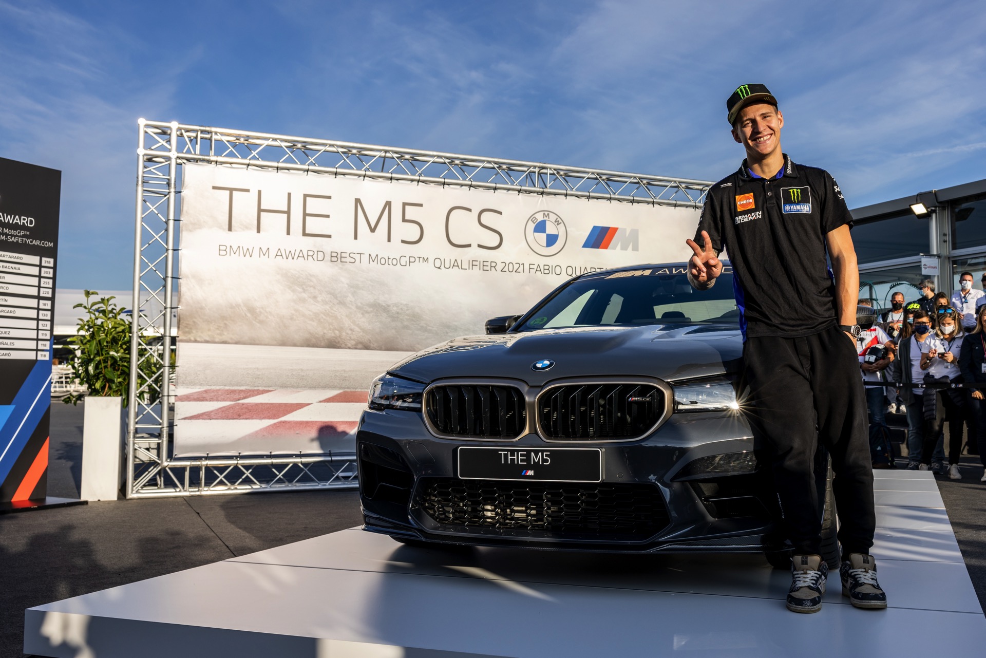 Der bisher stärkste Serien-BMW aller Zeiten trifft auf den stärksten Qualifier der MotoGP 2021: Fabio Quartararo darf sich für seine überragenden Leistungen in der aktuellen Saison über seinen zweiten BMW M Award in Folge freuen. Nachdem sich der Franzose im Vorjahr einen M2 CS sichern konnte, ist der diesjährige Preis nochmals 185 PS stärker und ein gutes Stück größer. Dank Allradantrieb ist auch die Sprint-Zeit aus dem Stand noch ein gutes Stück schneller – und mit 3,0 Sekunden als Werksangabe war noch kein Serien-BMW schneller als der M5 CS.