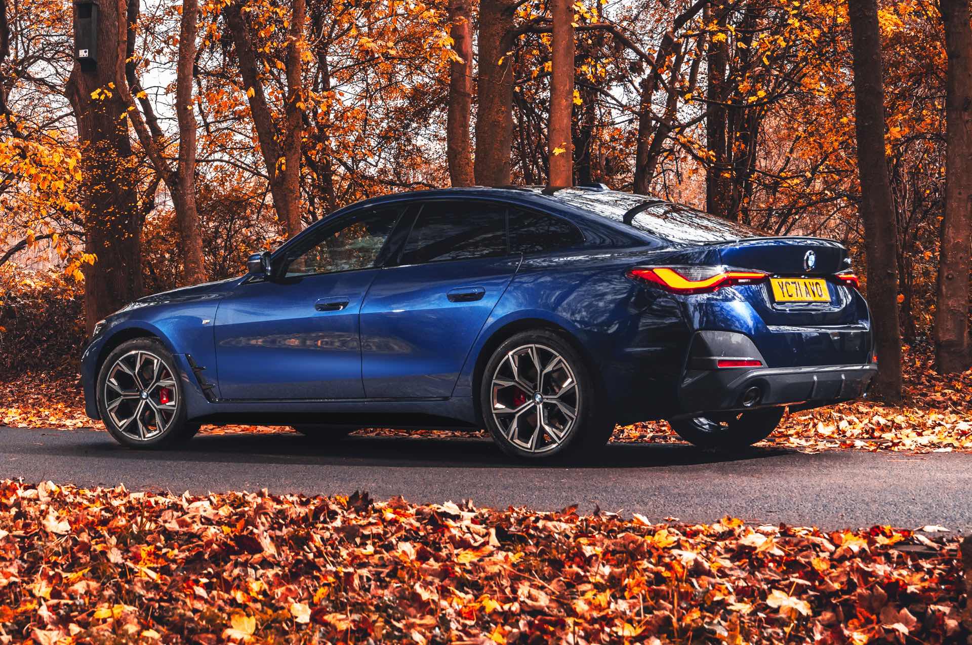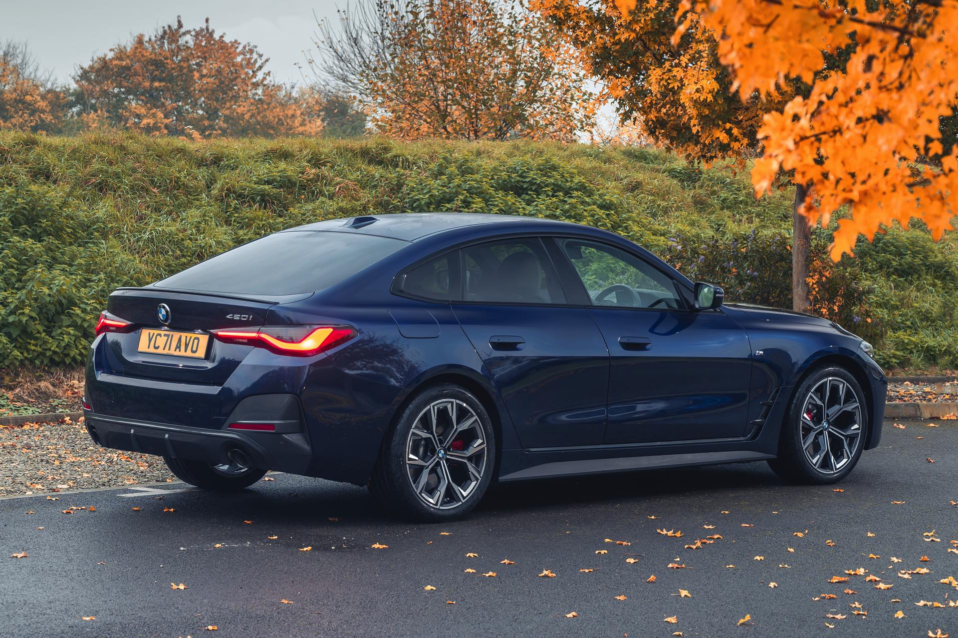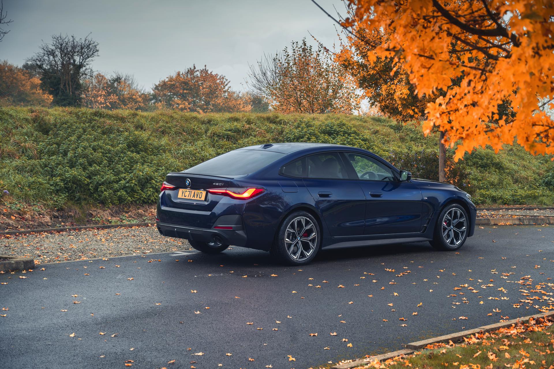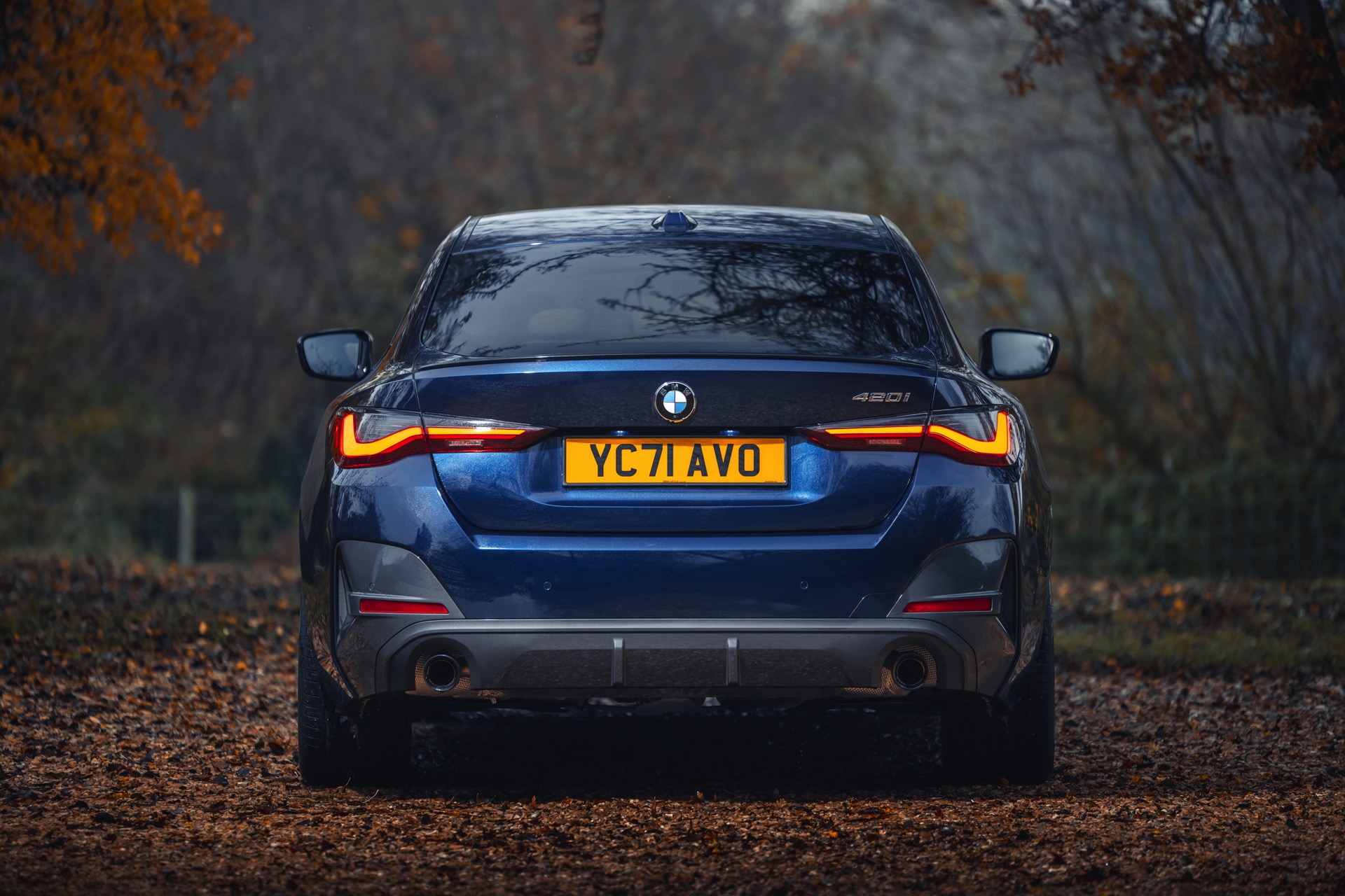 Dass die sportlich-elegante Optik der gezeigten Konfiguration keine Frage einer besonders imposanten Motorisierung ist, zeigt sich beim Blick auf das Typenschild am Heck: Wir sehen das BMW 4er Gran Coupé als 420i und folglich mit der Einstiegs-Motorisierung. Der 420i wird von der 184 PS starken Ausbaustufe des Turbo-Vierzylinders B48 angetrieben und bietet mit 300 Newtonmeter auch das geringste Drehmoment aller aktuellen 4er. Dennoch schafft er es bei Bedarf in 7,9 Sekunden von 0 auf 100 und erreicht eine Höchstgeschwindigkeit von 235 km/h.