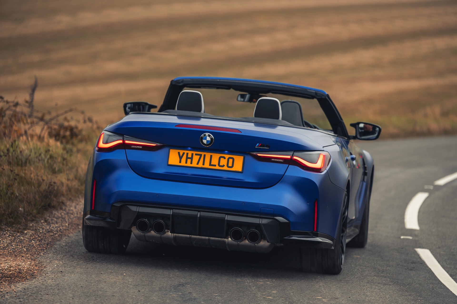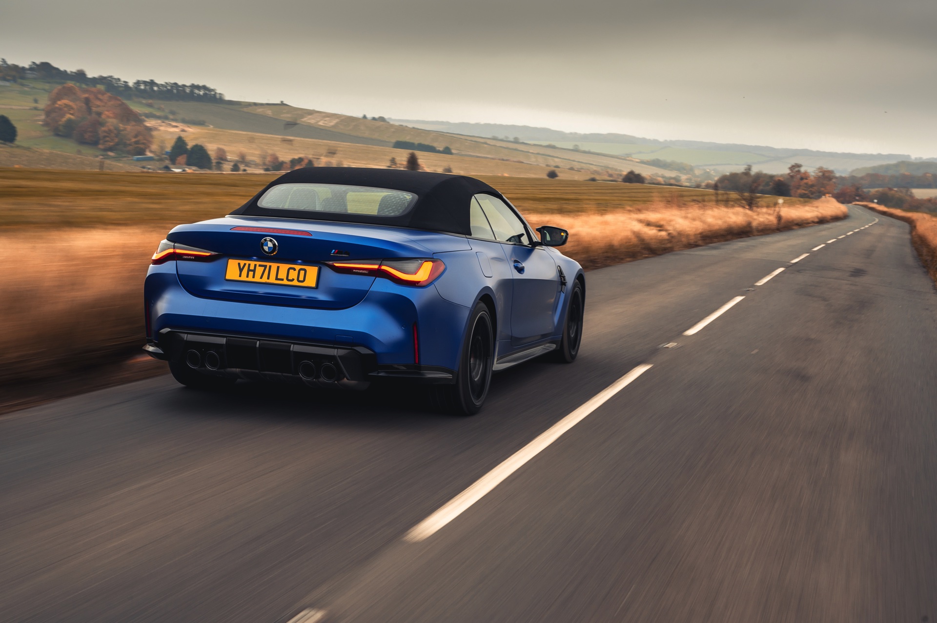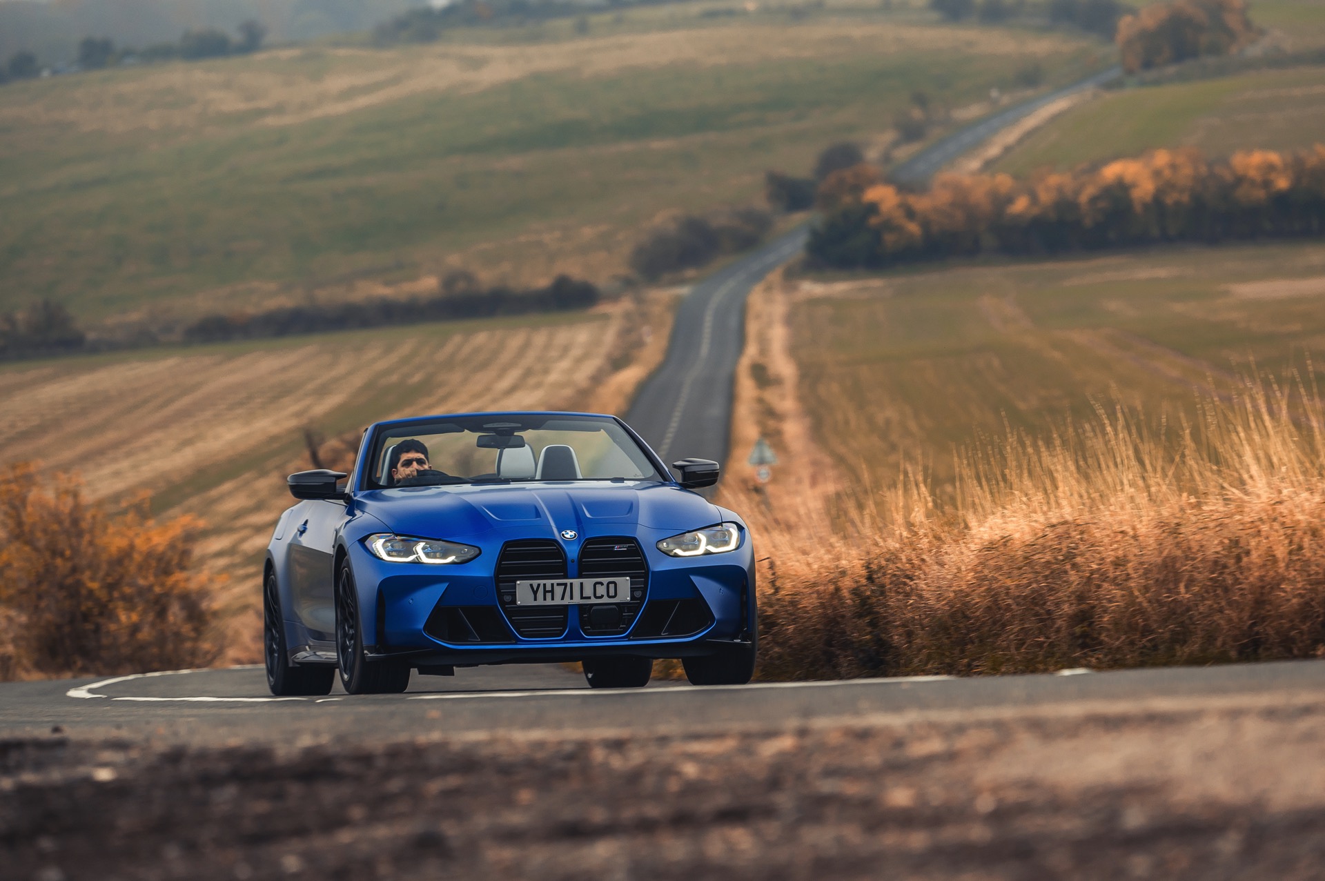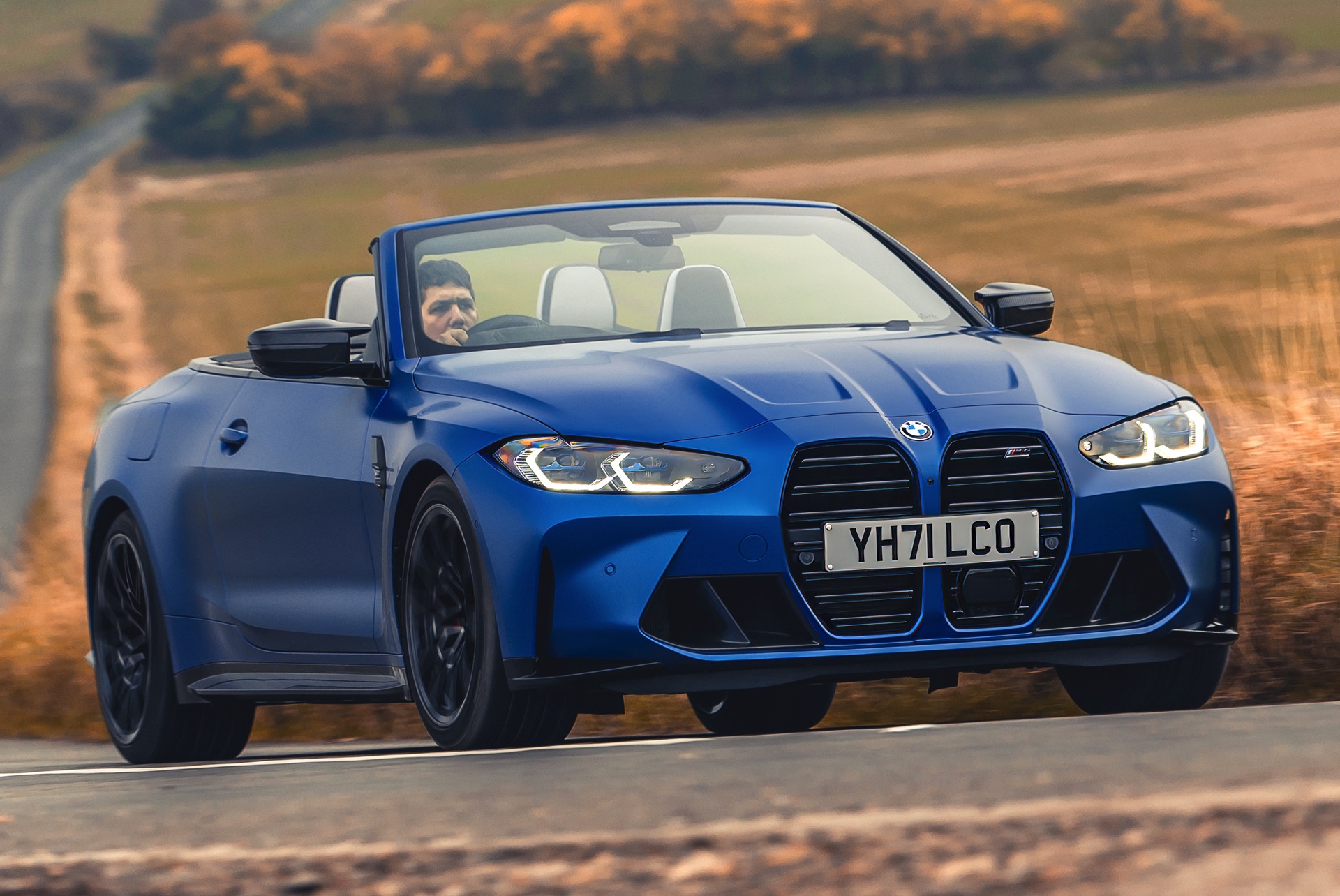 Wer an britisches Wetter im November denkt, dürfte sich dabei nur selten ans Steuer eines offenen BMW M4 Cabrio (G83) wünschen. Aktuelle Fotos von der Insel zeigen aber, dass Hartgesottene auch bei grauem Wetter das Dach öffnen und sich so ein noch intensiveres Fahrerlebnis bescheren – dank Sitzheizung, Lenkradheizung und Nackenwärmer muss man schließlich auch bei geöffnetem Verdeck nicht frieren und für etwas Farbe in trüber Umgebung hat bereits die Lackiererei im Werk Dingolfing gesorgt: Wenn der Himmel schon nicht blau ist, übernimmt eben die matte Individual-Lackierung in Frozen Portimao Blue diese Aufgabe.