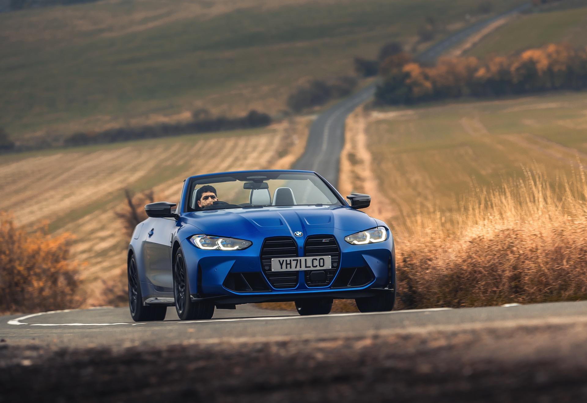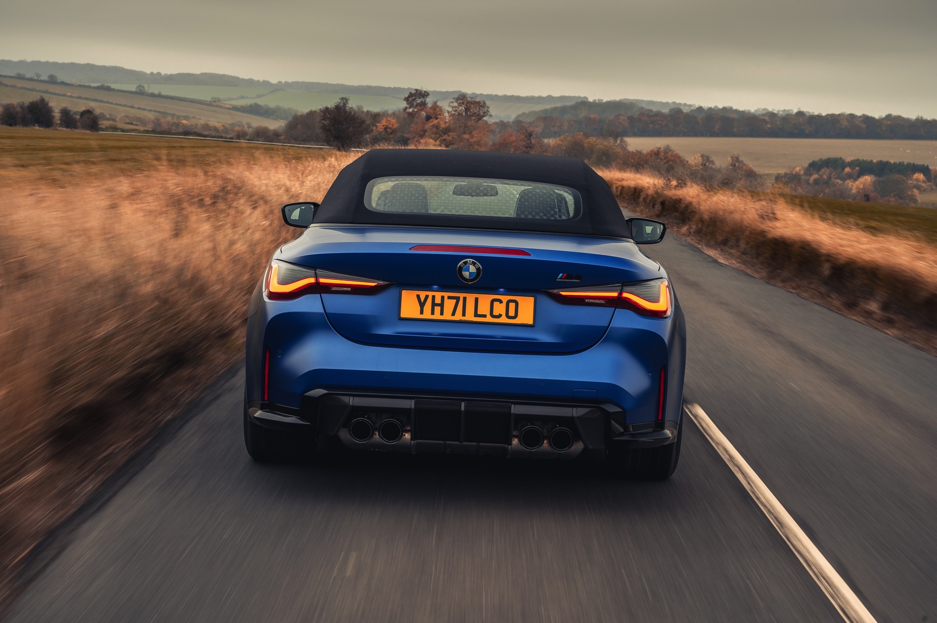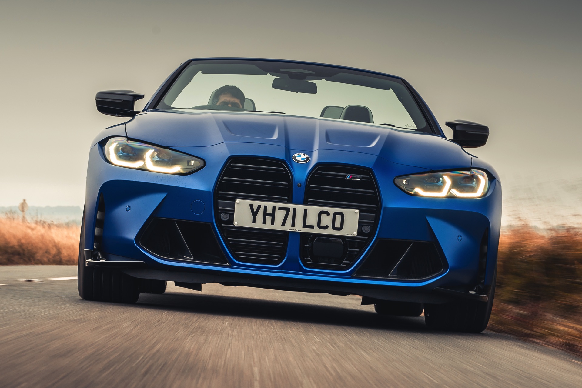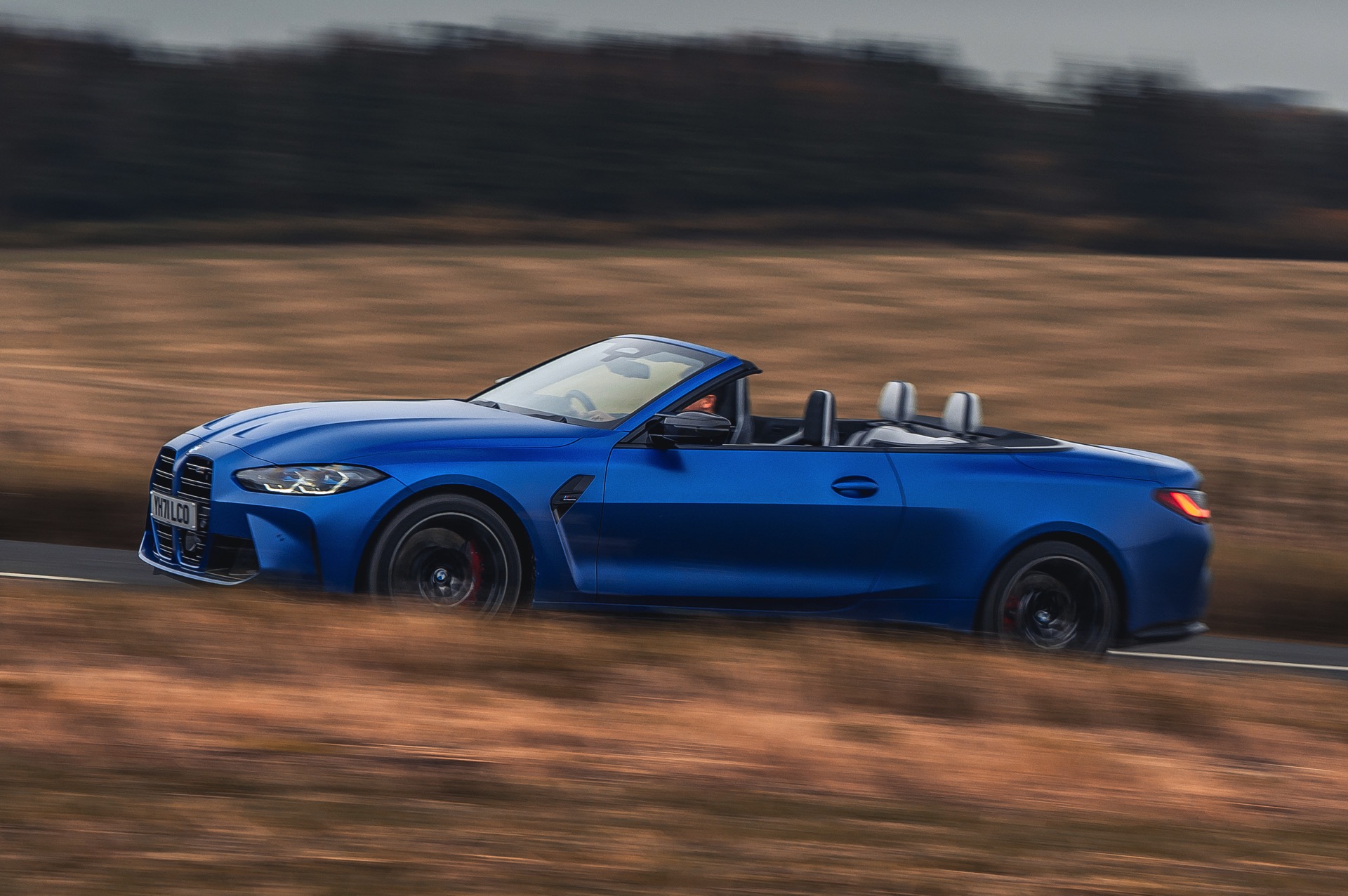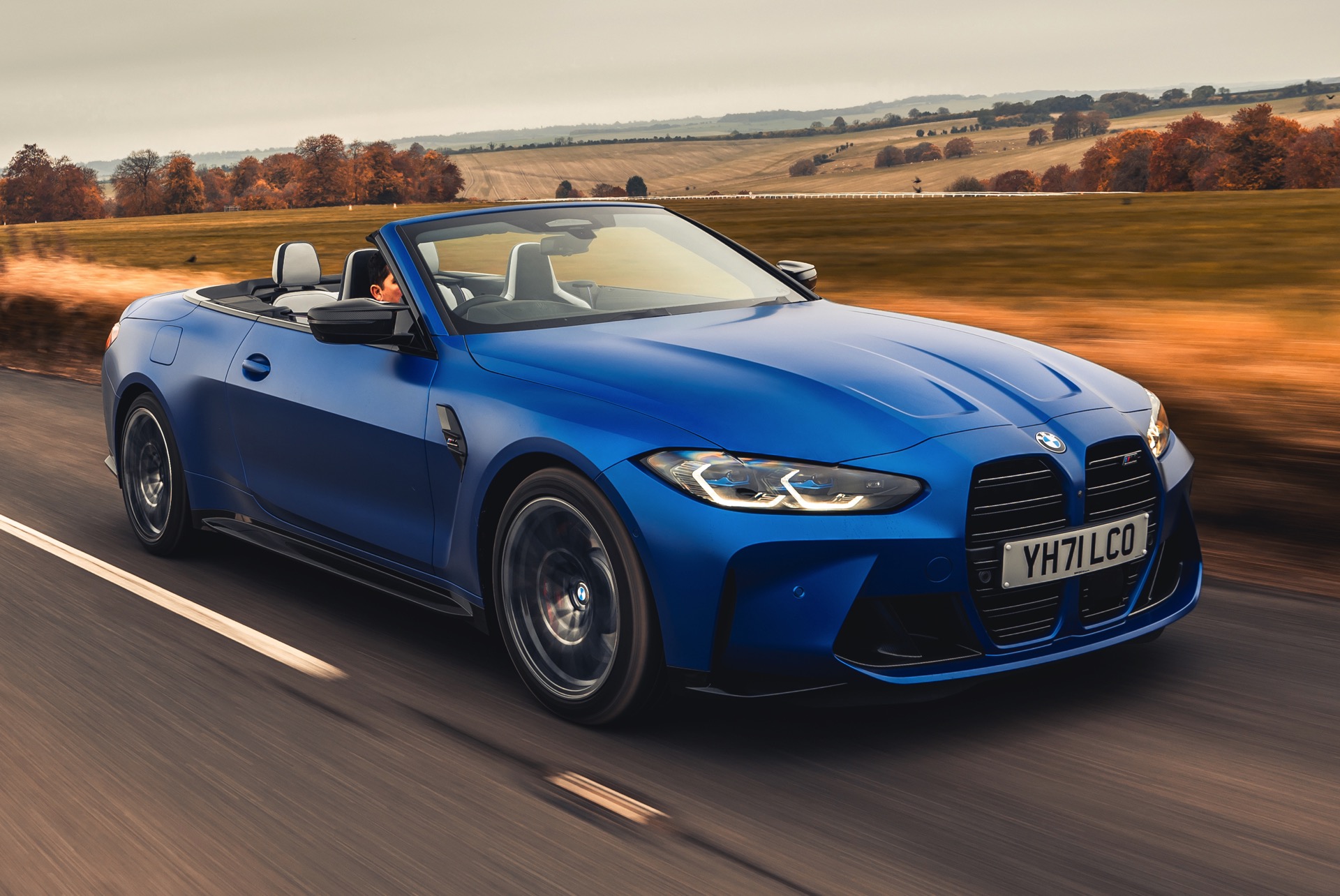 Wer an britisches Wetter im November denkt, dürfte sich dabei nur selten ans Steuer eines offenen BMW M4 Cabrio (G83) wünschen. Aktuelle Fotos von der Insel zeigen aber, dass Hartgesottene auch bei grauem Wetter das Dach öffnen und sich so ein noch intensiveres Fahrerlebnis bescheren – dank Sitzheizung, Lenkradheizung und Nackenwärmer muss man schließlich auch bei geöffnetem Verdeck nicht frieren und für etwas Farbe in trüber Umgebung hat bereits die Lackiererei im Werk Dingolfing gesorgt: Wenn der Himmel schon nicht blau ist, übernimmt eben die matte Individual-Lackierung in Frozen Portimao Blue diese Aufgabe.