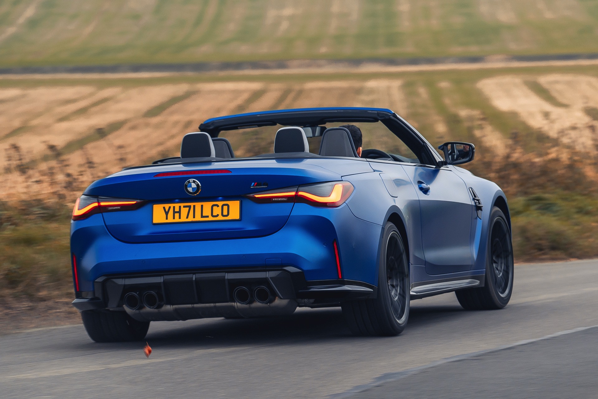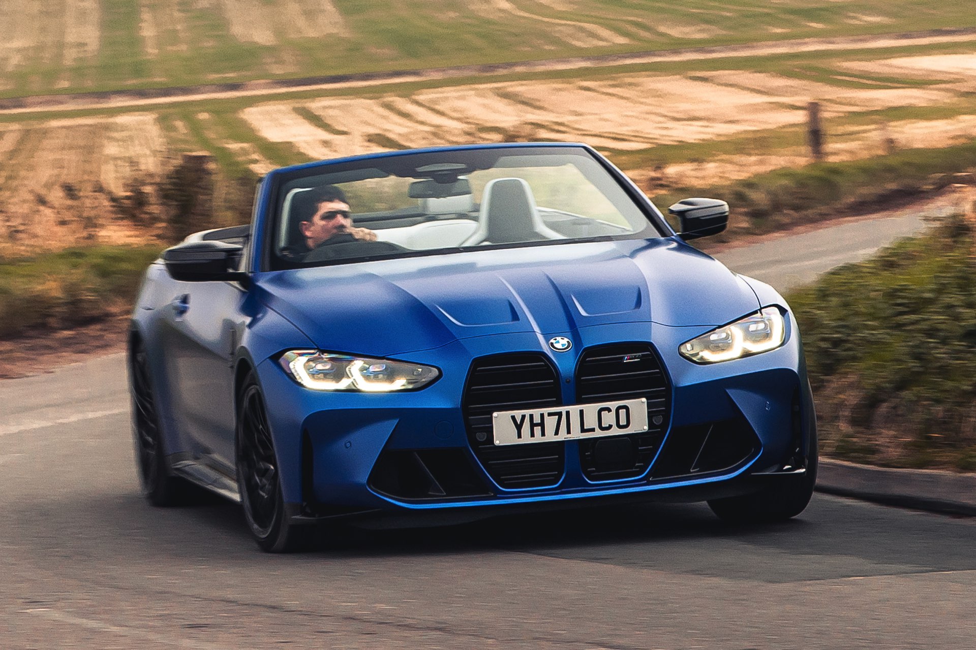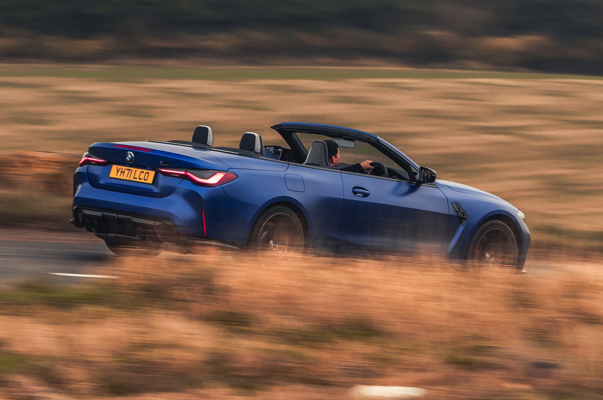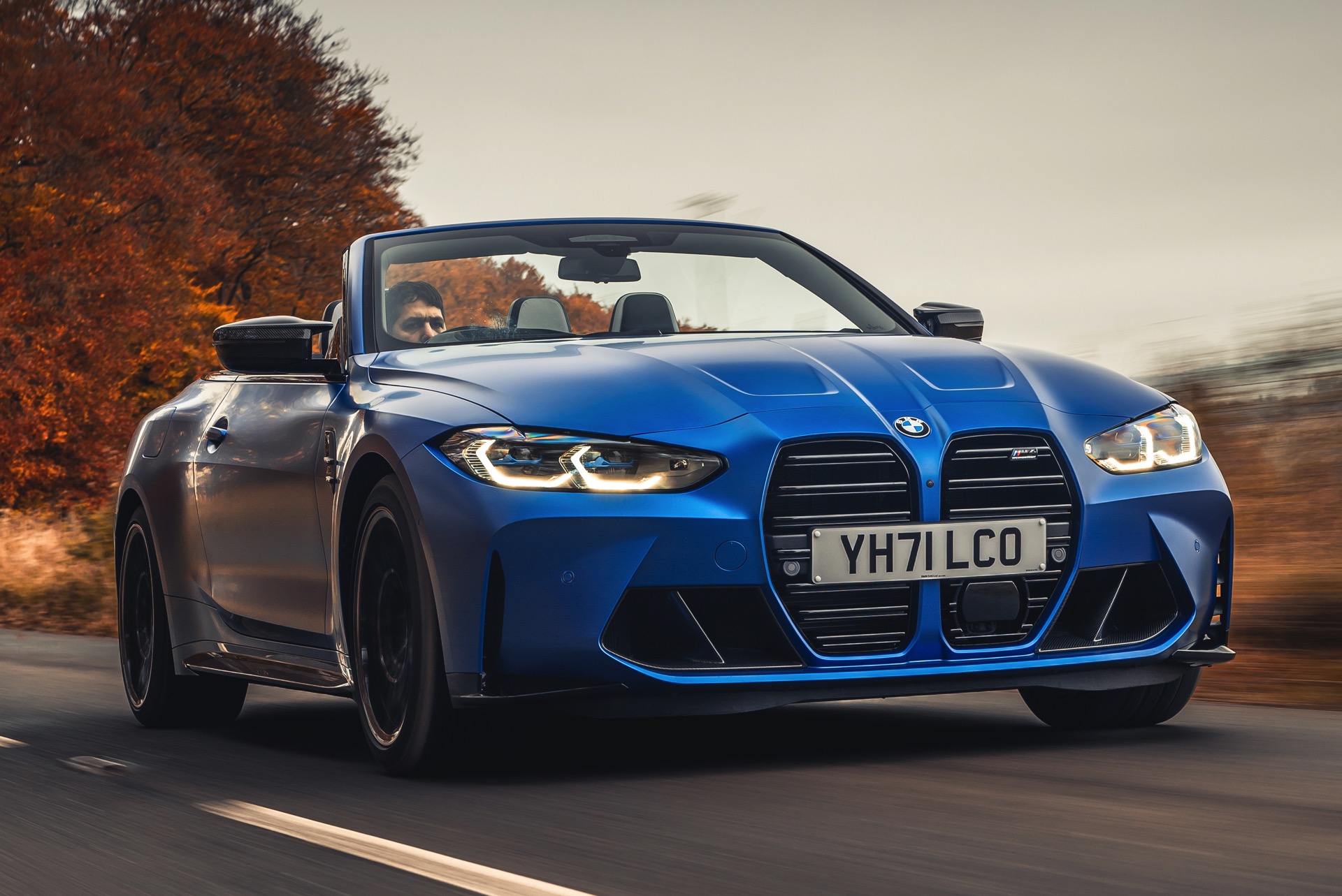 Wer an britisches Wetter im November denkt, dürfte sich dabei nur selten ans Steuer eines offenen BMW M4 Cabrio (G83) wünschen. Aktuelle Fotos von der Insel zeigen aber, dass Hartgesottene auch bei grauem Wetter das Dach öffnen und sich so ein noch intensiveres Fahrerlebnis bescheren – dank Sitzheizung, Lenkradheizung und Nackenwärmer muss man schließlich auch bei geöffnetem Verdeck nicht frieren und für etwas Farbe in trüber Umgebung hat bereits die Lackiererei im Werk Dingolfing gesorgt: Wenn der Himmel schon nicht blau ist, übernimmt eben die matte Individual-Lackierung in Frozen Portimao Blue diese Aufgabe.