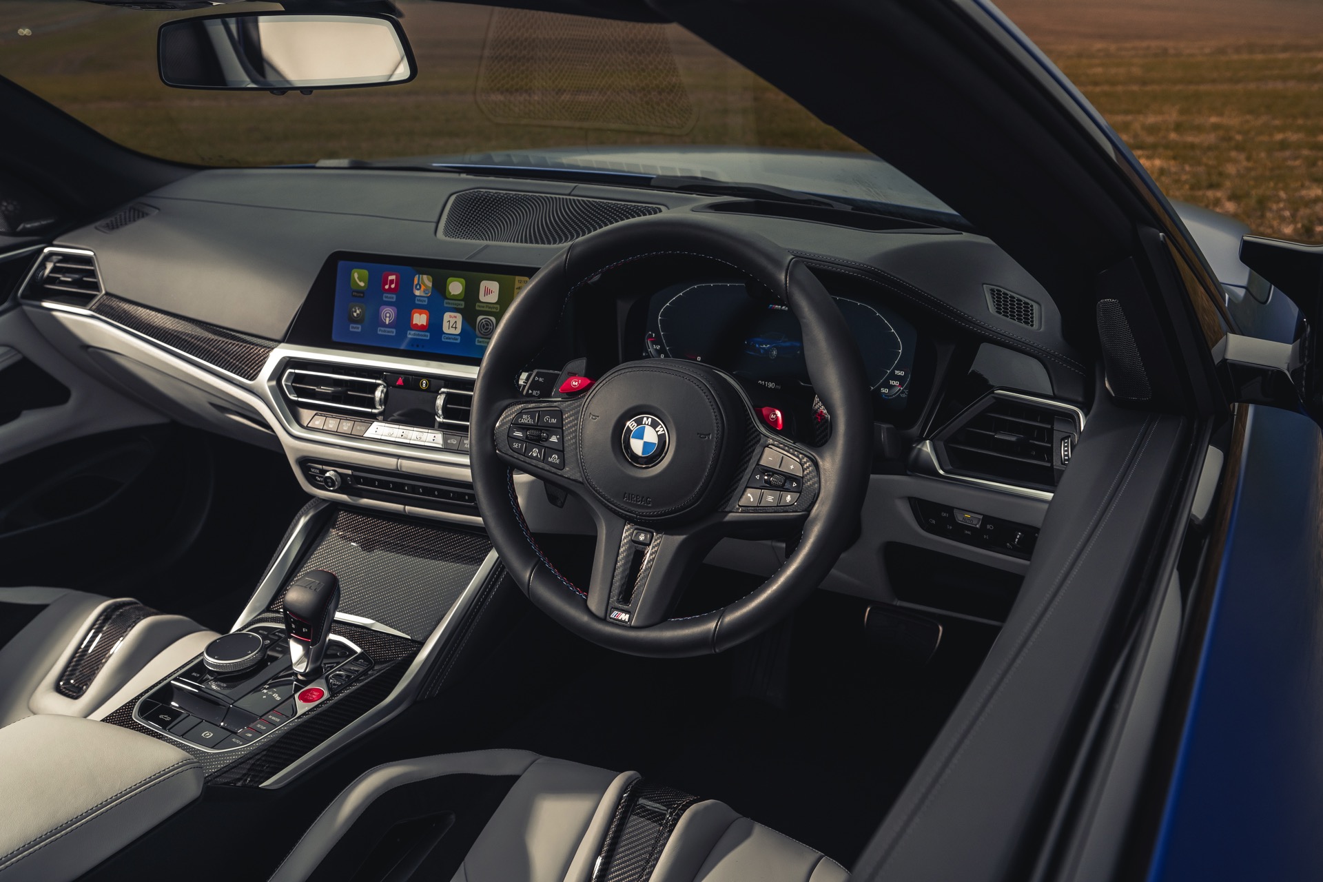 Keine Wahlmöglichkeiten gibt es im Fall des Antriebs: Das BMW M4 Cabrio (G83) geht immer in der 510 PS starken Competition-Ausführung mit Achtgang-Automatik und Allradantrieb M xDrive an den Start, die für das Coupé und die M3 Limousine erhältlichen Varianten mit Hinterradantrieb und manuellem Sechsgang-Getriebe sind für den offenen M4 nicht erhältlich.