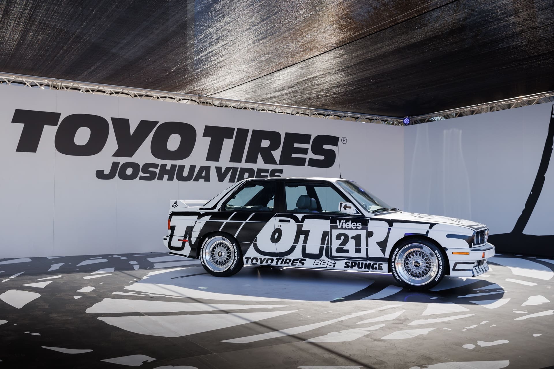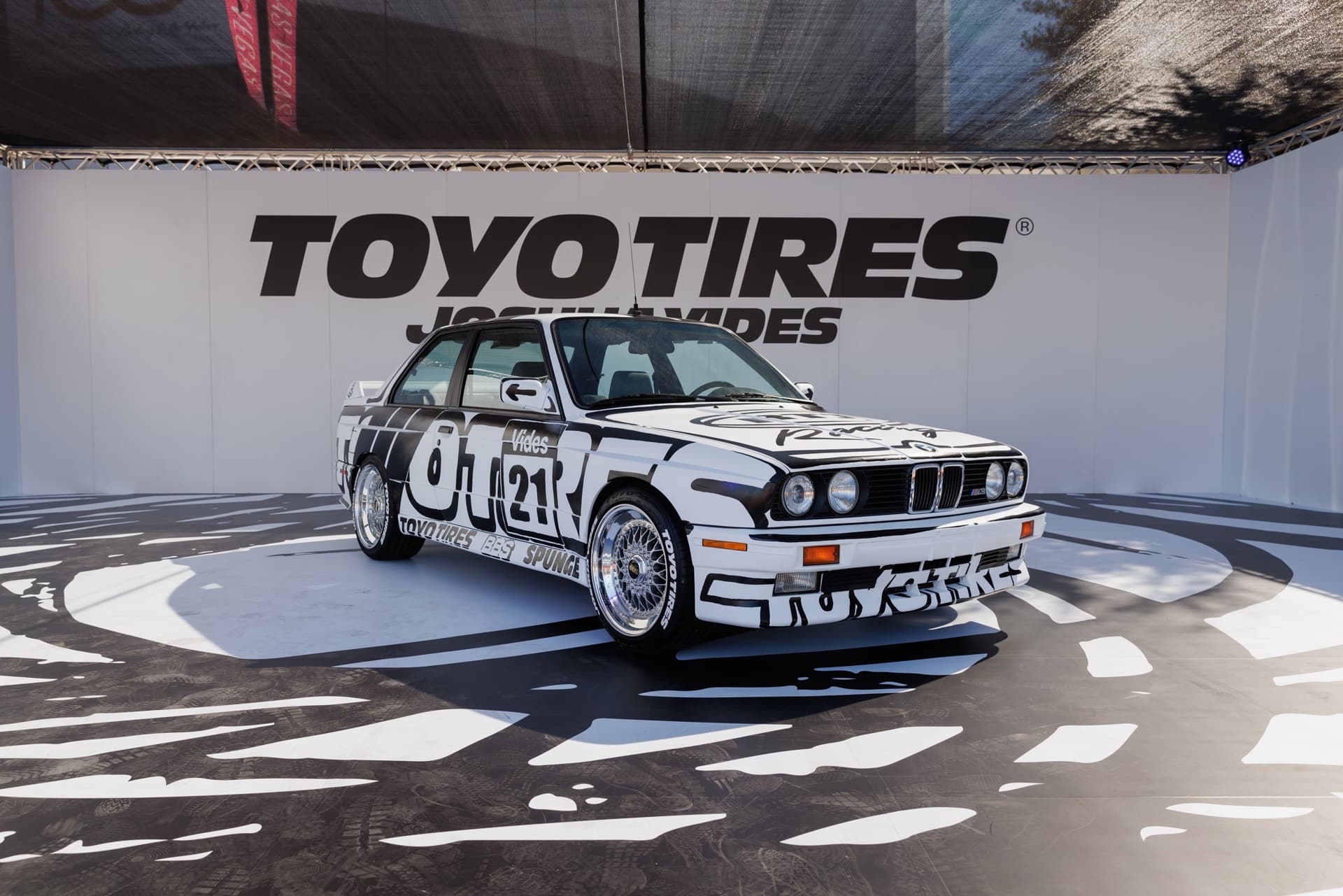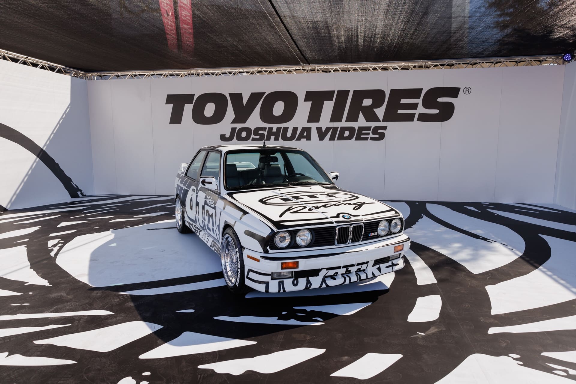 Joshua Vides, den unsere Leser auch von seiner kürzlich vorgestellten Schwarz-Weiß-Interpretation des BMW X4 M (F98 LCI) kennen, hat seinen typischen Look auf die Formen des BMW M3 E30 übertragen und damit einen der Hingucker auf dem Toyo-Stand zur SEMA 2021 kreiert. Der japanische Reifenbauer hat auf der Tuning-Messe eine Reihe von Highlights präsentiert und konnte dabei natürlich auch auf die Anwesenheit von Drift-Star Ken Block setzen, der die Reifen der Marke seit Jahren spektakulär in Rauch aufgehen lässt. Kein Wunder also, dass auch der blütenweiße Stand von Joshua Vides mit tiefschwarzen Drift- und Donut-Spuren verziert war, die unübersehbar auf die Freude am Driften verweisen.
