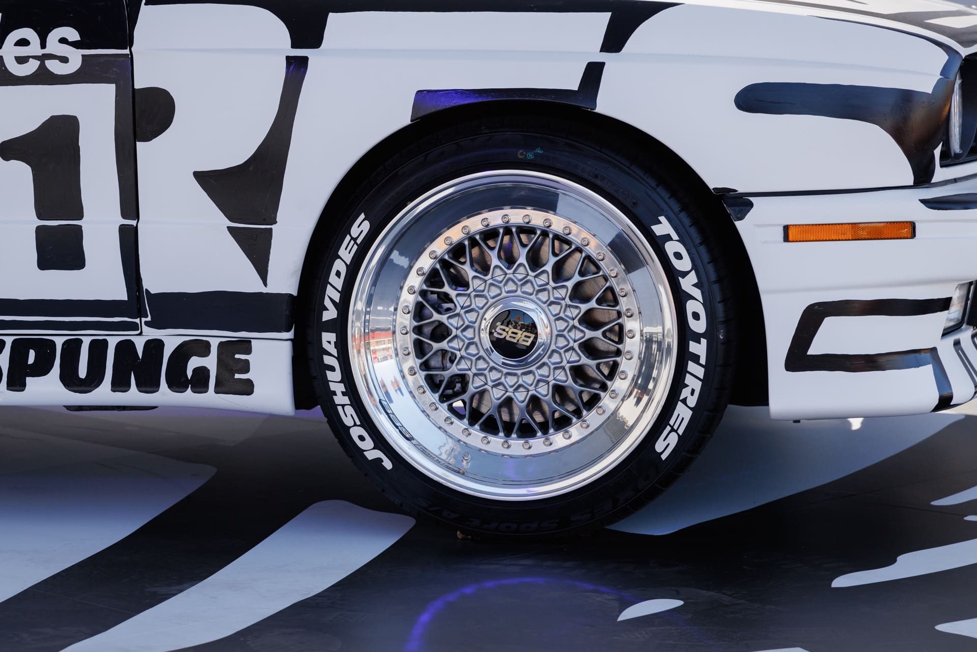 Der von Hand bemalte und so zum Kunstwerk modifizierte BMW M3 E30 ist für ein SEMA-Showcar vergleichsweise seriennah unterwegs, ein wenig Tuning darf aber auch hier nicht fehlen: Tieferlegungs-Federn von H&R, BBS-Felgen und moderne Toyo Proxes Sport-Reifen sorgen gerade auf kurvigem Untergrund für eine erhebliche Performance-Steigerung im Vergleich zum Ur-M3, obwohl es keinerlei Modifikationen am Antriebsstrang gab. Wie schon zum Zeitpunkt der Produktion des gezeigten Fahrzeugs im Jahr 1989 schickt der legendäre Vierzylinder mit dem internen Kürzel S14 200 PS und 240 Newtonmeter an die Hinterräder.