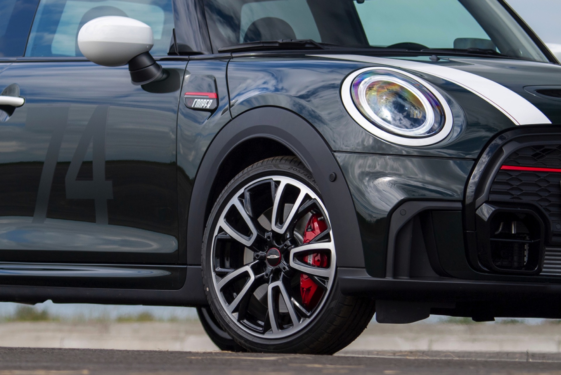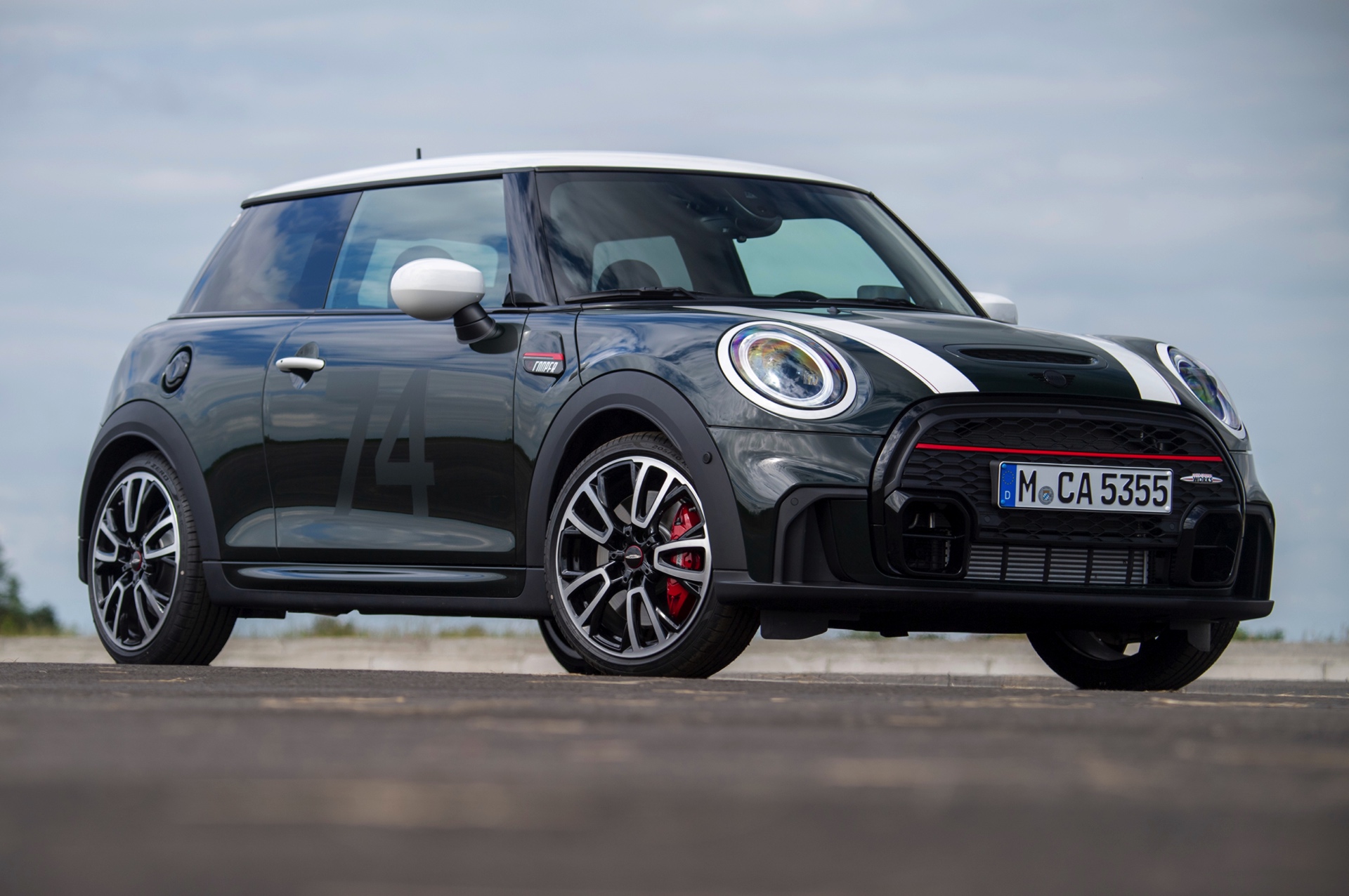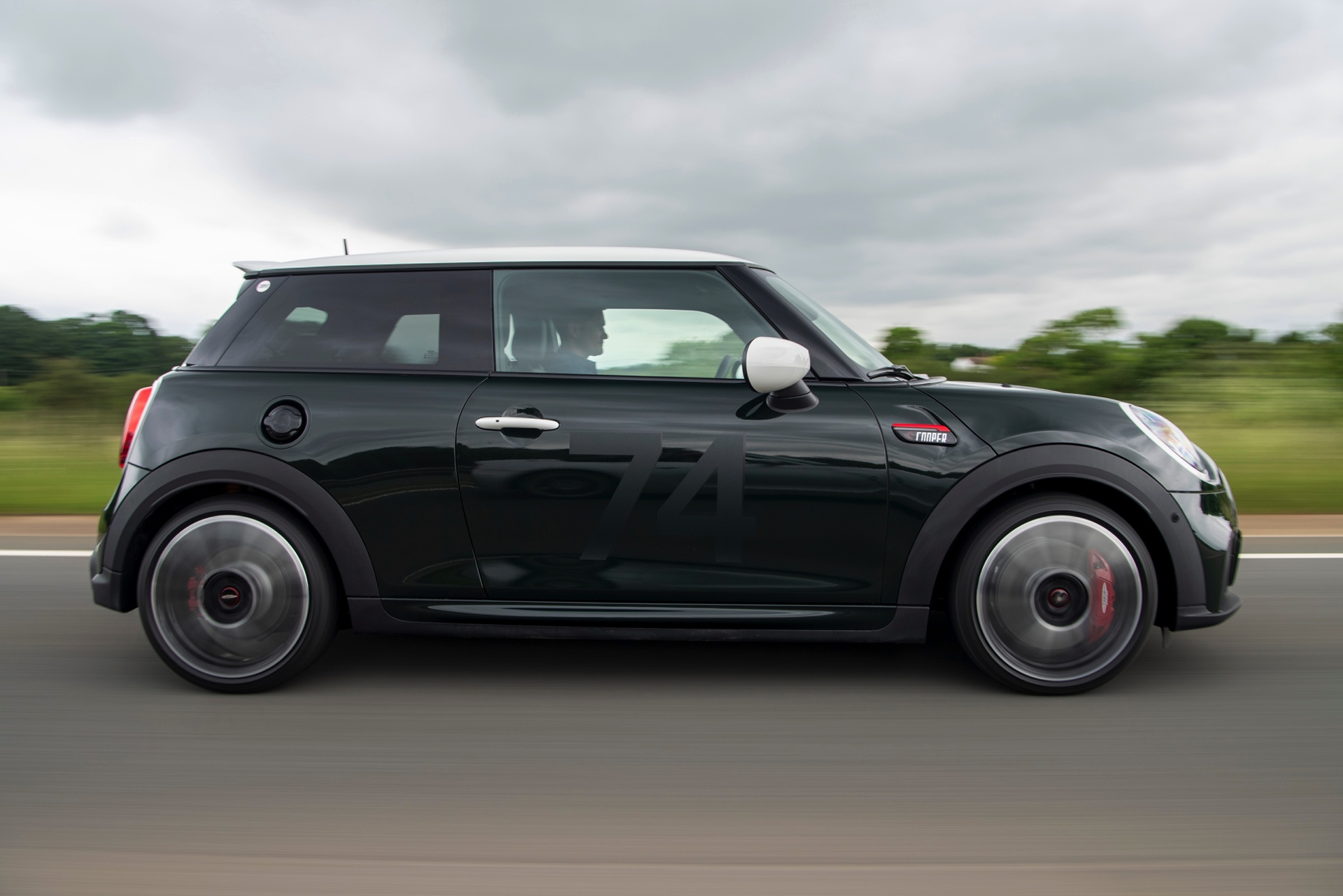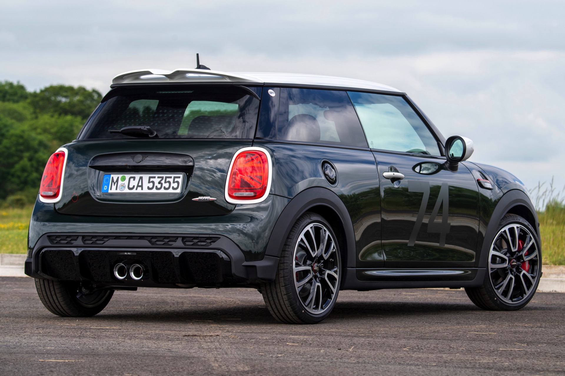 Die MINI Anniversary Edition basiert auf dem dreitürigen JCW (F56 LCI). Als Grundfarbe stehen mit Rebel Green und Midnight Black metallic zwei relativ dunkle Farben zur Wahl, sodass die Editions-Akzente in beiden Fällen ähnlich in Szene gesetzt werden: Dach, Spiegelkappen, Türgriffe und die Einfassungen von Heckleuchten und Scheinwerfern sind in Weiß abgesetzt, während der Tankdeckel und das Logo in hochglänzendem Piano Black ausgeführt sind. Die weißen Streifen auf der Motorhaube enthalten eine dezente, rote Linie. Außerdem prangt die Nummer 74 auf den Türen und der Motorhaube in augenscheinlich mattem Schwarz. Die 74 war die Startnummer des ersten Mini Cooper Siegerfahrzeugs. Ein weiteres Highlight für Kenner ist ein neues Cooper-Logo, das wir auf den Side Scuttles und der C-Säule zu sehen bekommen. Als i-Tüpfelchen trägt der Türrahmen auf der Fahrerseite ein Emblem mit der Unterschrift von John Cooper, eine nummerierte Kennung mit Bezug auf die limitierte Sonderedition und den Slogan „60 YEARS OF MINI COOPER – THE UNEXPECTED UNDERDOG“. "