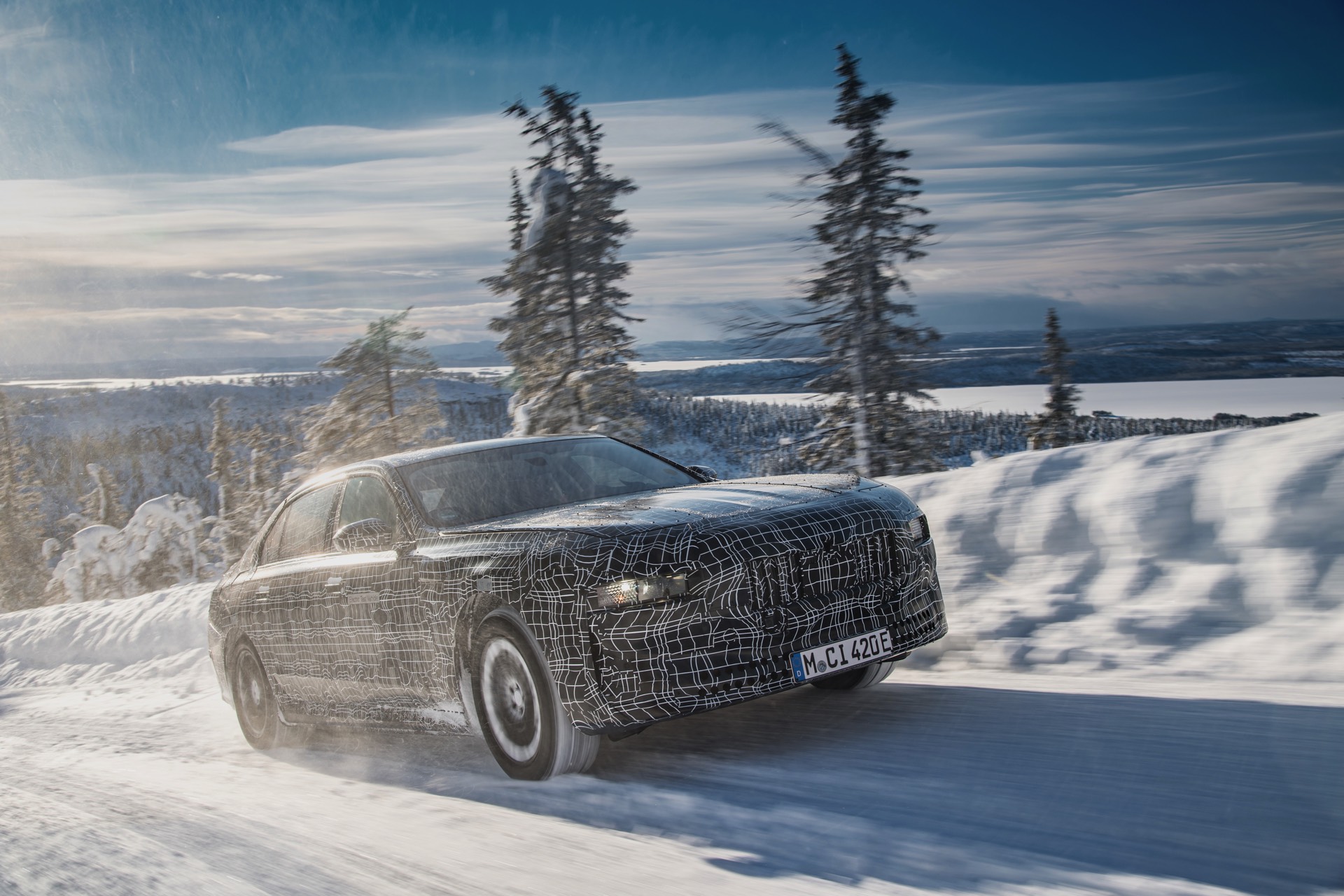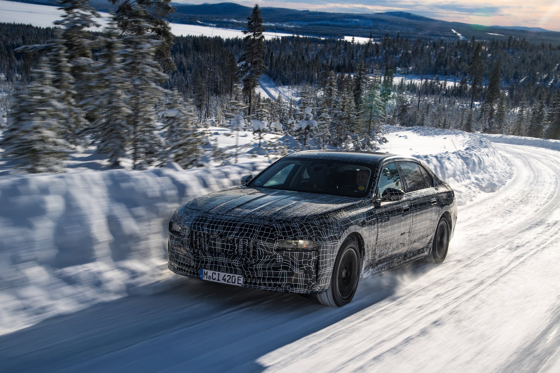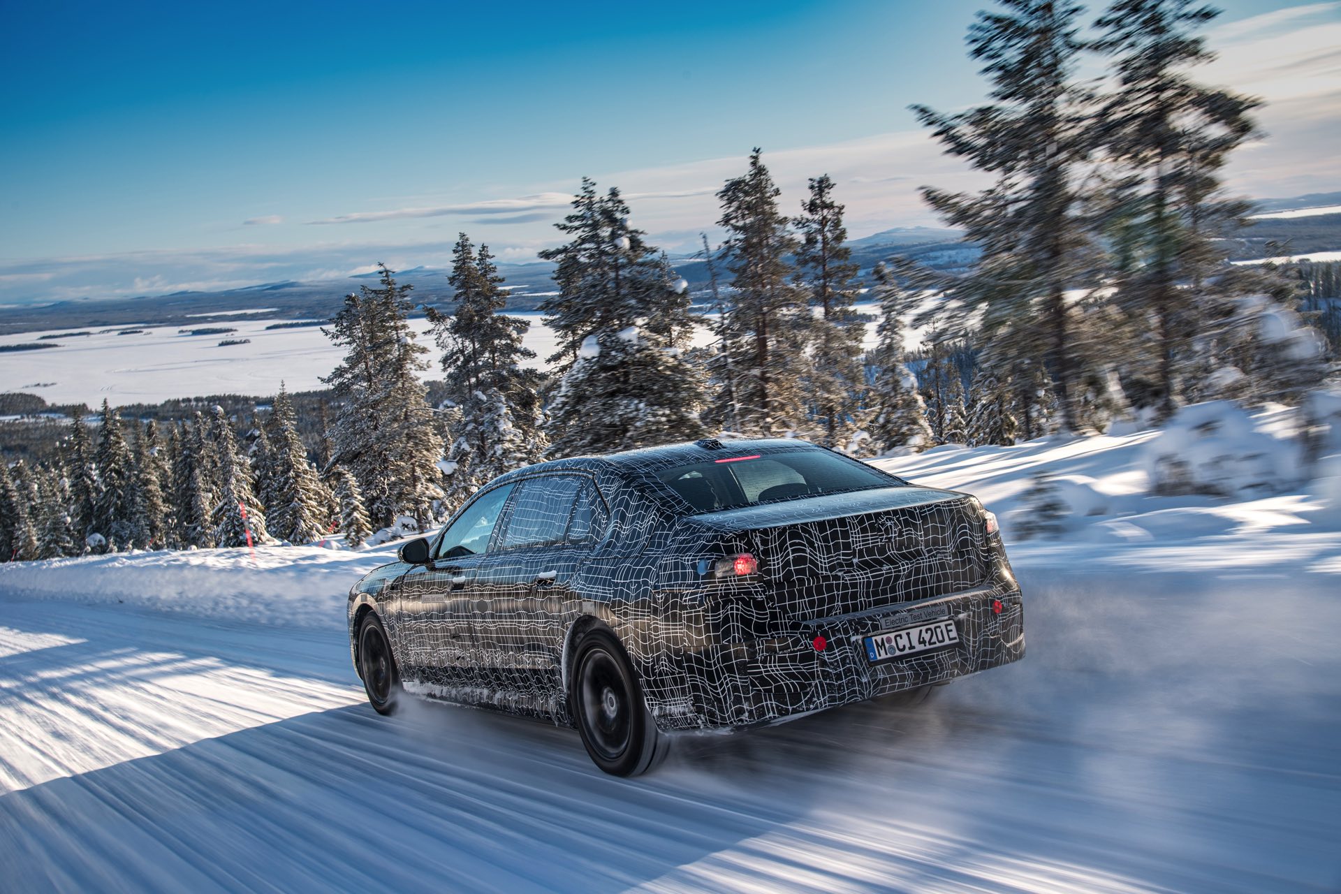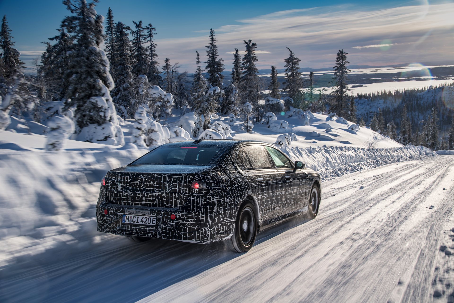 Genau wie im iX wird auch der BMW i7 auf eine spezielle Bremstechnik setzen, die die Effizienz des Fahrzeugs wesentlich steigert: Auch wenn der Fahrer das Bremspedal betätigt, wird nicht immer die mechanische Bremse der Luxuslimousine zum Einsatz kommen. Bis zu einer gewissen Bremsleistung wird die gewünschte Verzögerung stattdessen durch Rekuperation der Elektromotoren realisiert, wodurch der Lithium-Ionen-Akku sehr häufig ein wenig aufgeladen werden kann. Erst bei einer sehr starken Bremsung kommen tatsächlich die mechanischen Bremsen zum Einsatz, wobei der Übergang für den Fahrer unmerklich stattfindet. Auch für dieses System findet die finale Applikation in Arjeplog statt, damit die technisch anspruchsvolle Bremse ihren Job später vollkommen unauffällig erledigen kann.