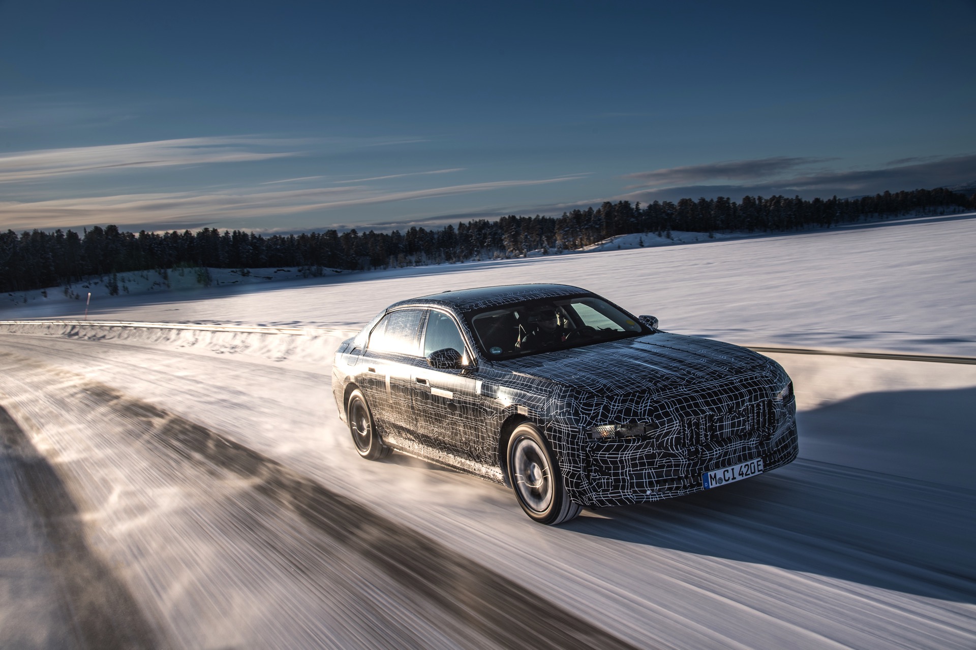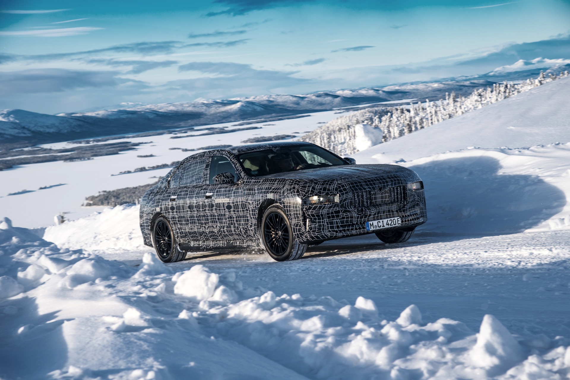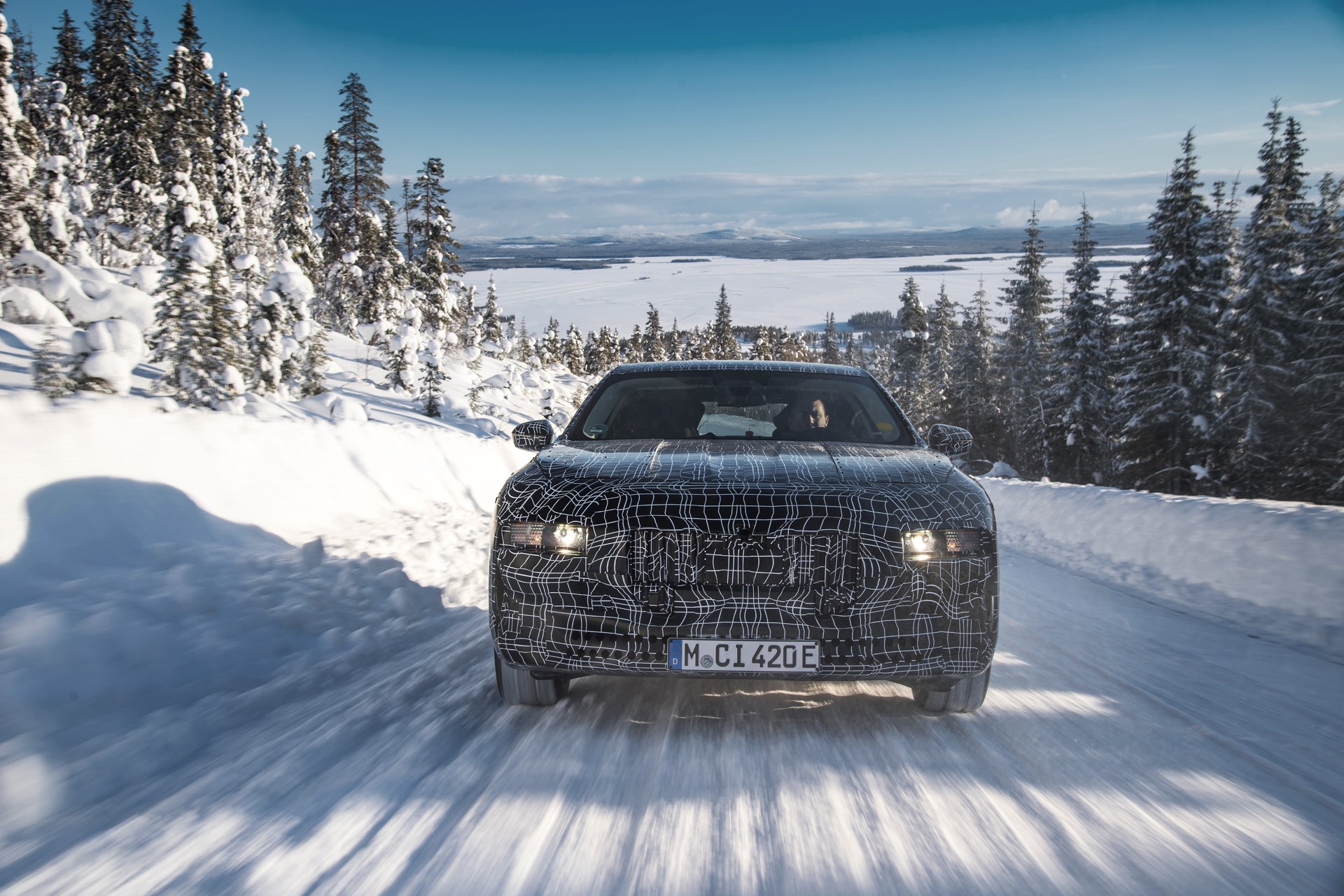 Genau wie im iX wird auch der BMW i7 auf eine spezielle Bremstechnik setzen, die die Effizienz des Fahrzeugs wesentlich steigert: Auch wenn der Fahrer das Bremspedal betätigt, wird nicht immer die mechanische Bremse der Luxuslimousine zum Einsatz kommen. Bis zu einer gewissen Bremsleistung wird die gewünschte Verzögerung stattdessen durch Rekuperation der Elektromotoren realisiert, wodurch der Lithium-Ionen-Akku sehr häufig ein wenig aufgeladen werden kann. Erst bei einer sehr starken Bremsung kommen tatsächlich die mechanischen Bremsen zum Einsatz, wobei der Übergang für den Fahrer unmerklich stattfindet. Auch für dieses System findet die finale Applikation in Arjeplog statt, damit die technisch anspruchsvolle Bremse ihren Job später vollkommen unauffällig erledigen kann.
