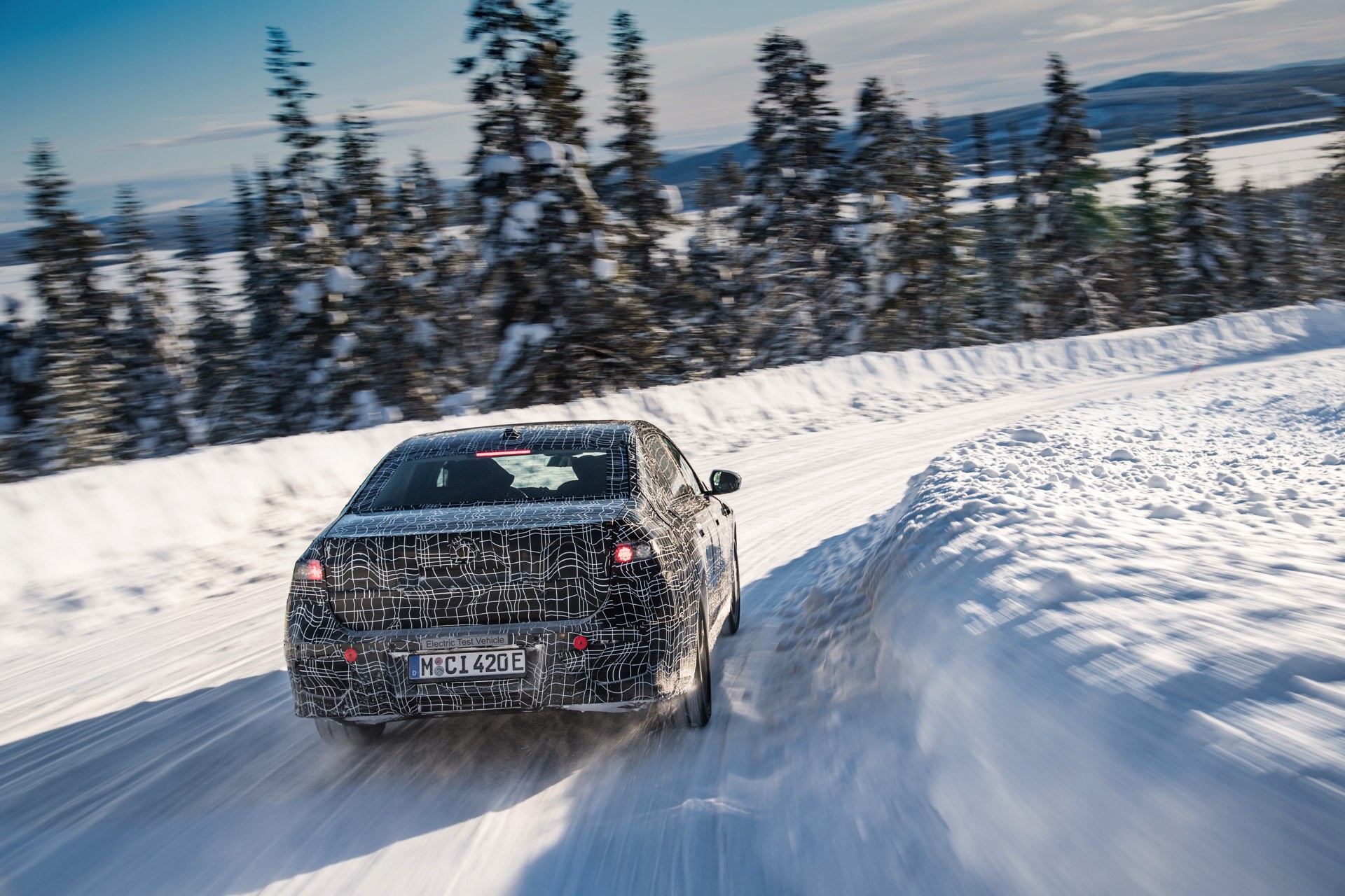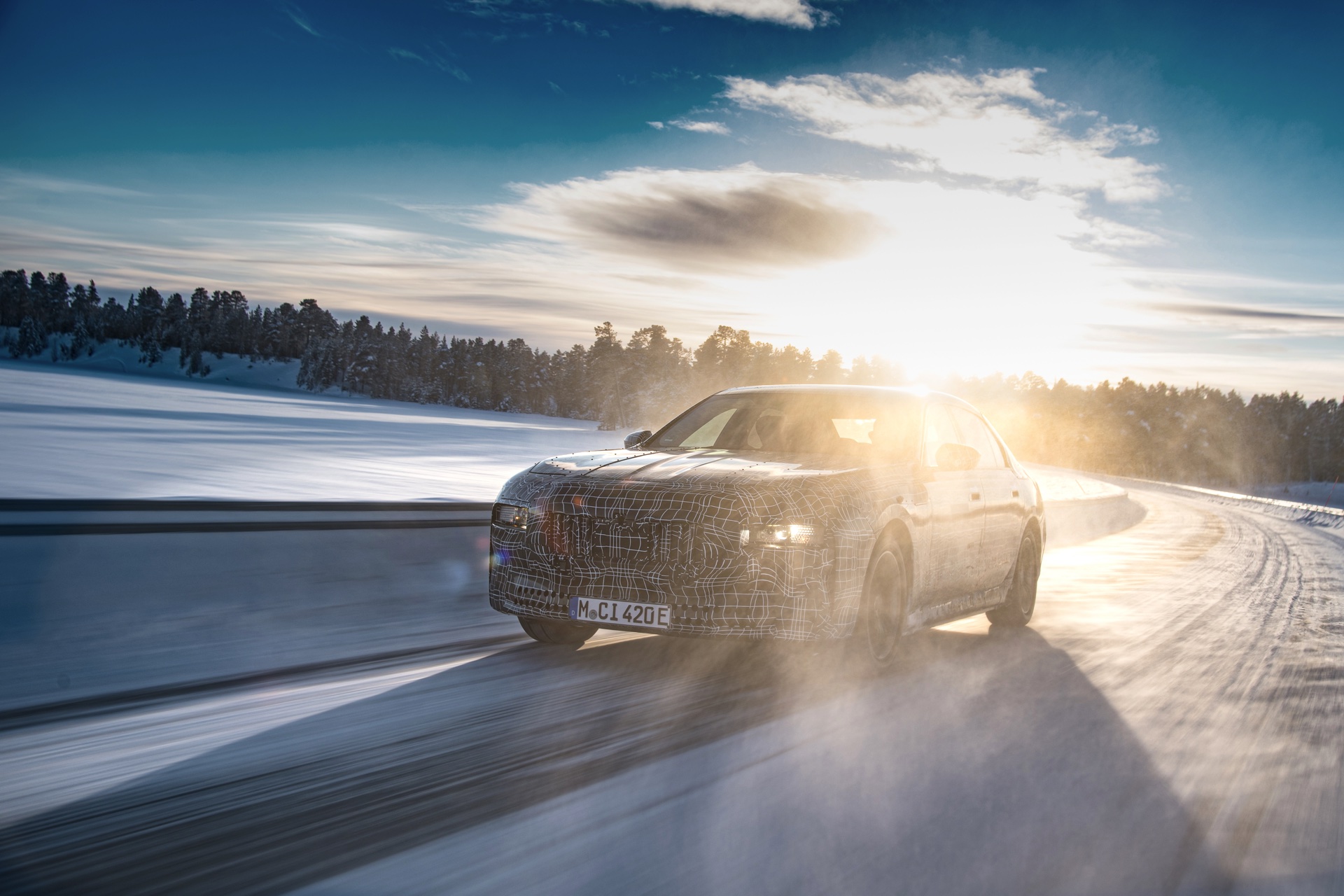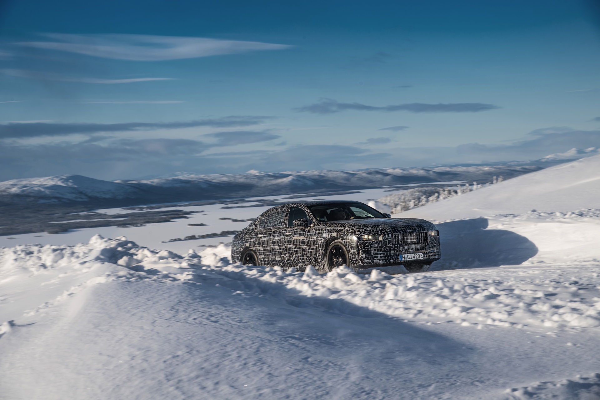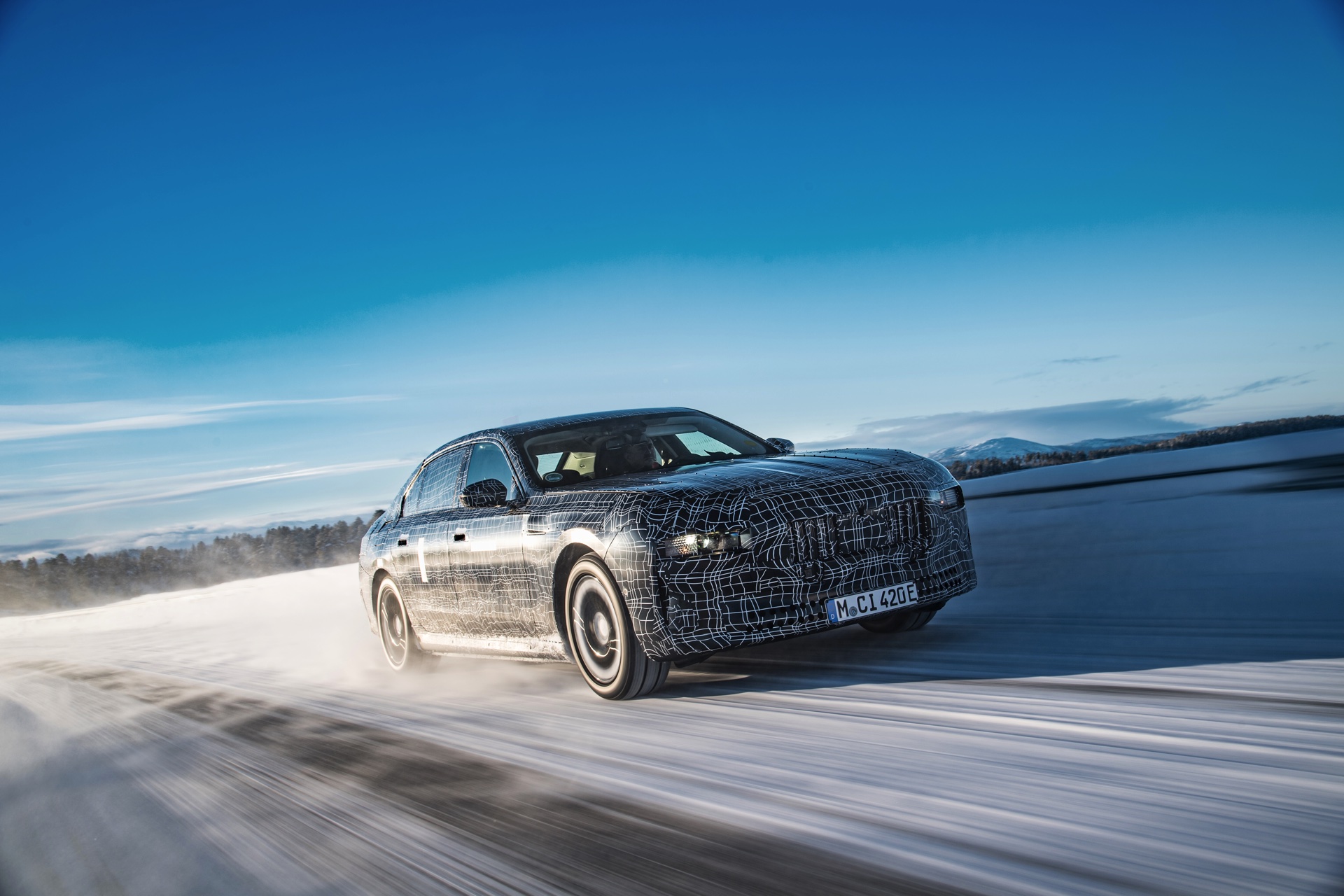 Genau wie im iX wird auch der BMW i7 auf eine spezielle Bremstechnik setzen, die die Effizienz des Fahrzeugs wesentlich steigert: Auch wenn der Fahrer das Bremspedal betätigt, wird nicht immer die mechanische Bremse der Luxuslimousine zum Einsatz kommen. Bis zu einer gewissen Bremsleistung wird die gewünschte Verzögerung stattdessen durch Rekuperation der Elektromotoren realisiert, wodurch der Lithium-Ionen-Akku sehr häufig ein wenig aufgeladen werden kann. Erst bei einer sehr starken Bremsung kommen tatsächlich die mechanischen Bremsen zum Einsatz, wobei der Übergang für den Fahrer unmerklich stattfindet. Auch für dieses System findet die finale Applikation in Arjeplog statt, damit die technisch anspruchsvolle Bremse ihren Job später vollkommen unauffällig erledigen kann.