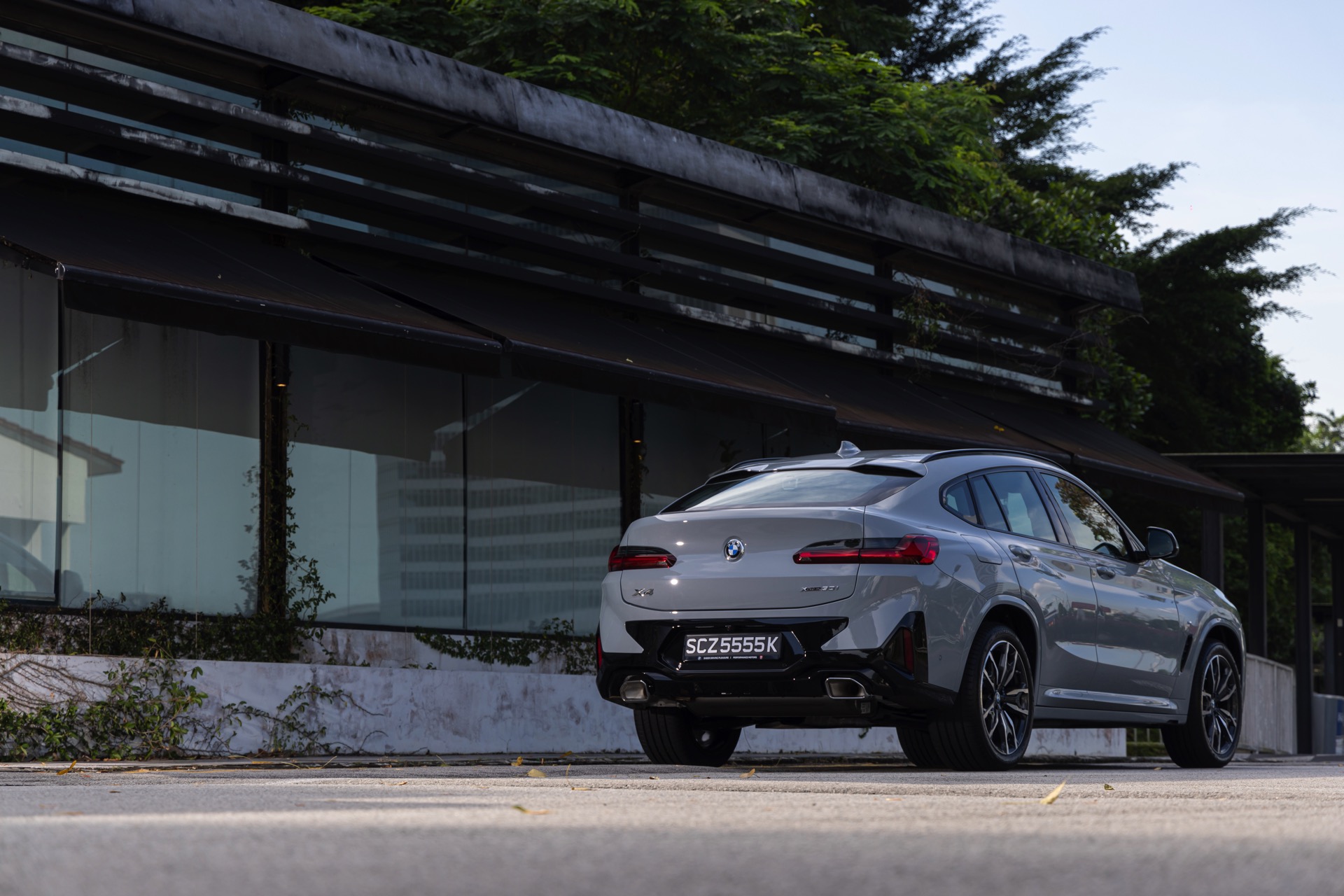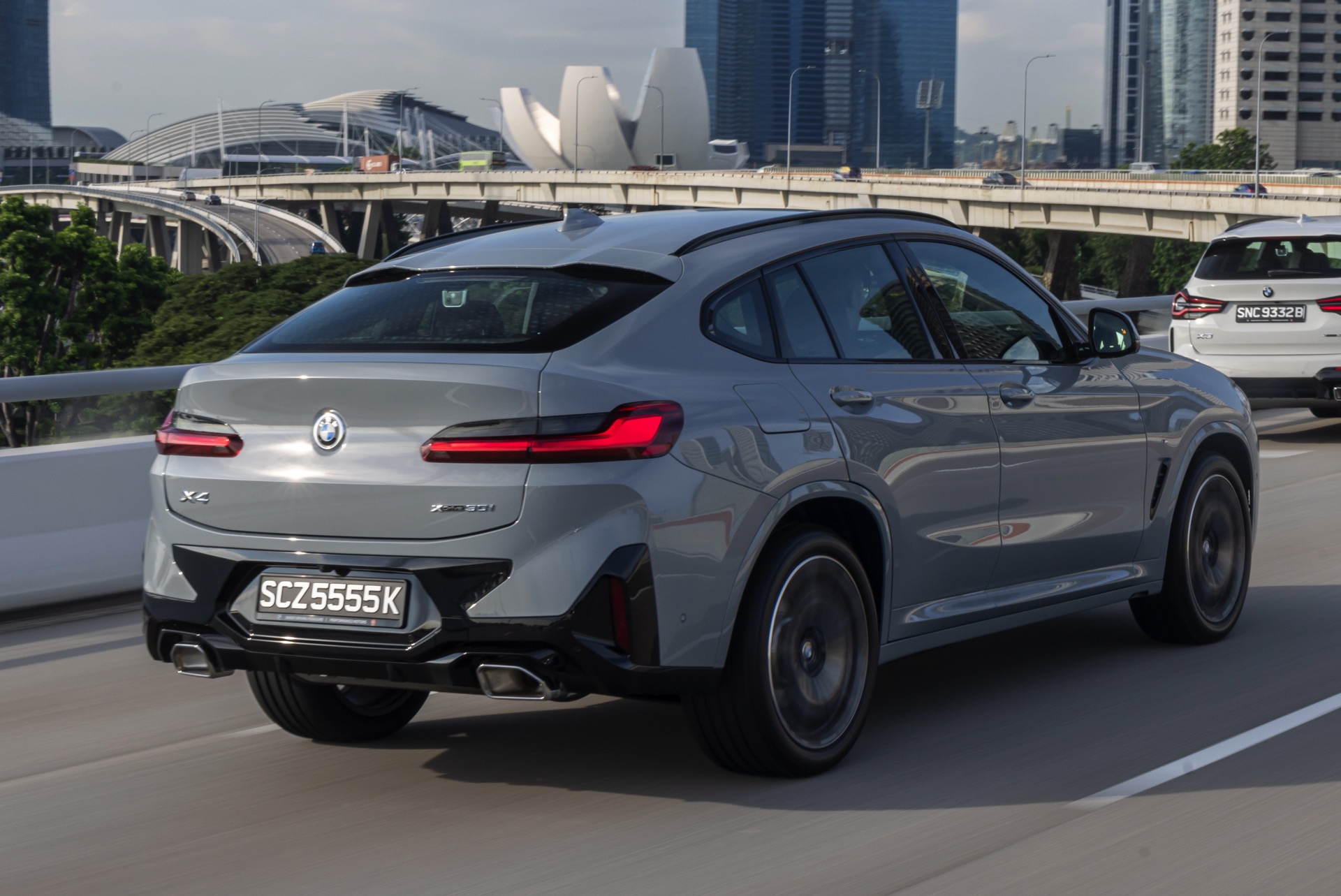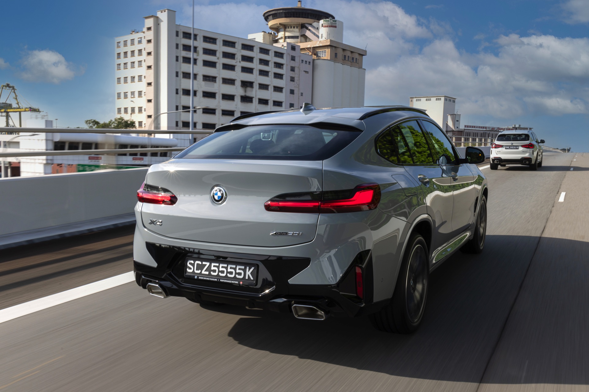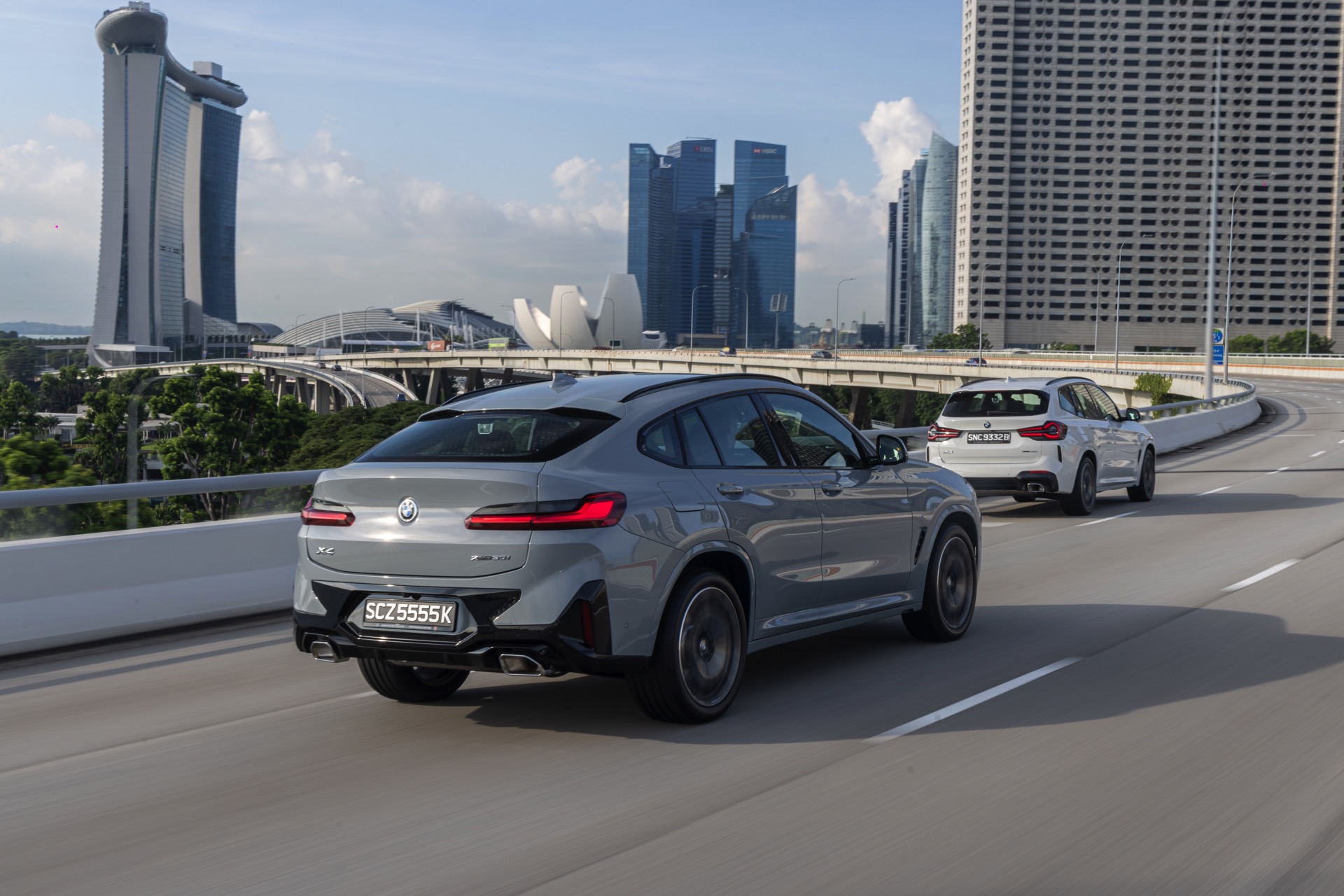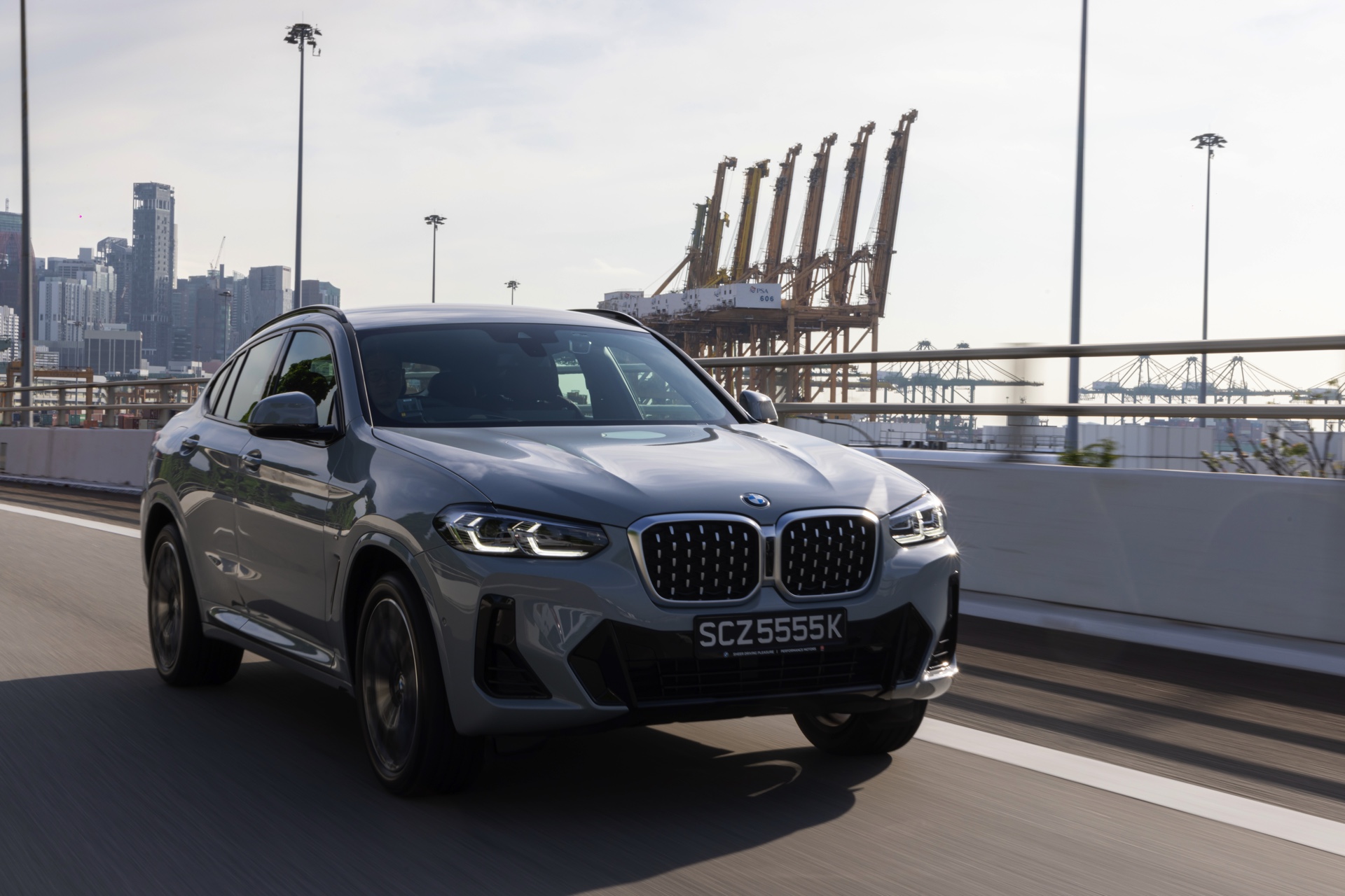 Die aktuellen Fotos stammen aus Singapur und zeigen uns einen BMW X4 xDrive30i (G02 LCI) mit M Sport-Paket, Lackierung in Brooklyn Grey und den 20 Zoll großen Leichtmetallrädern Doppelspeiche 787 M Bicolor. Das rund 4,75 Meter lange SUV-Coupé auf X3-Basis bringt auch mit Vierzylinder-Benziner fast 1,9 Tonnen auf die Waage, woran allerdings auch das 48-Volt-Bordnetz inklusive zusätzlichem Startergenerator mit 8 kW oder 11 PS seinen Anteil hat. Beim 245 PS starken Benziner handelt es sich bereits um die ZIK-Variante des B48-Motors, die dank zylinderkopfintegriertem Krümmer noch strengere Kohlenmonoxid-Grenzwerte einhalten kann.