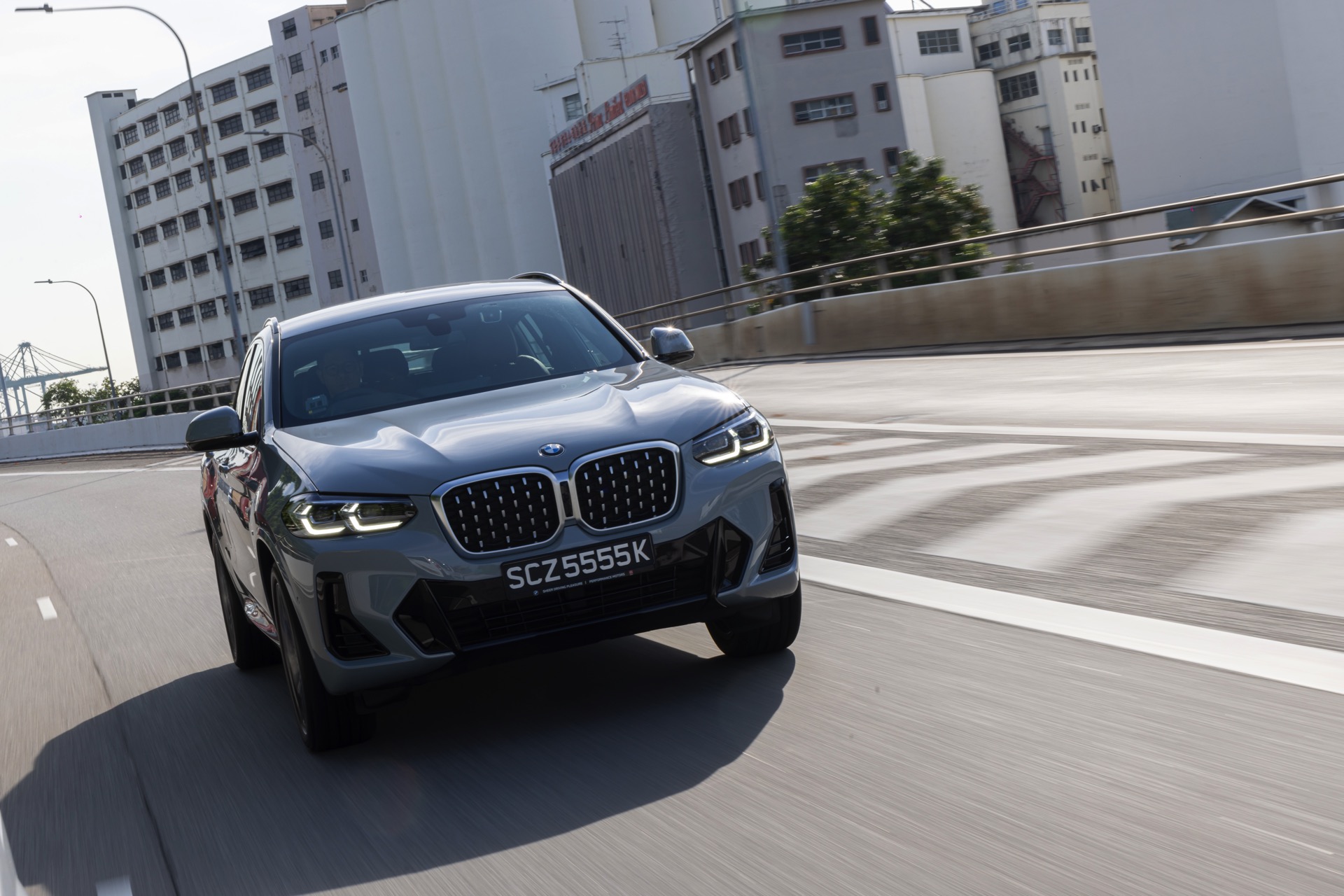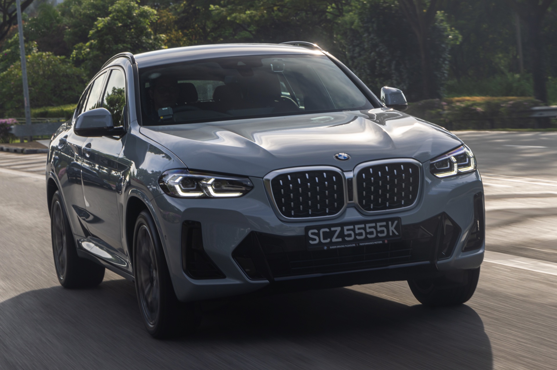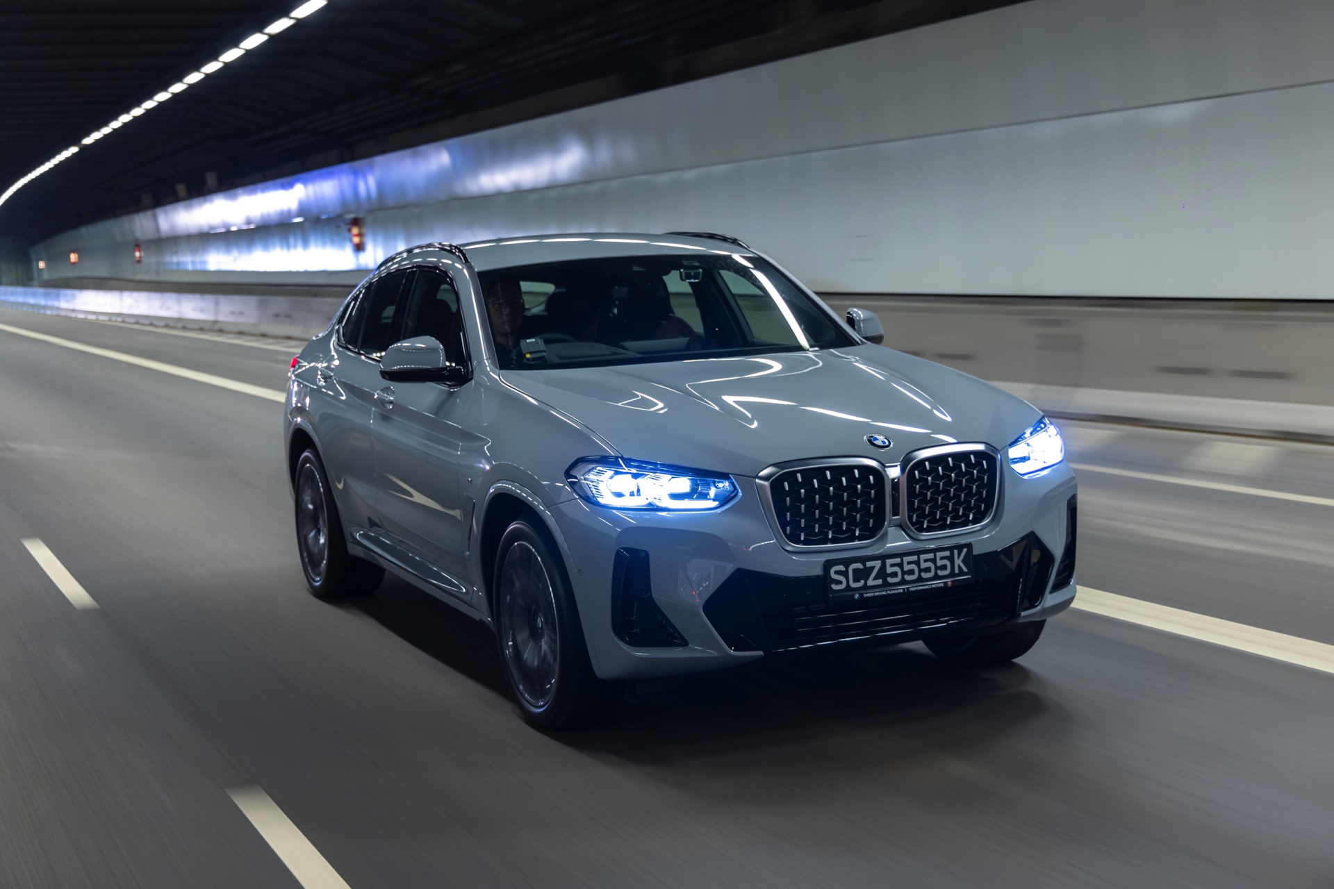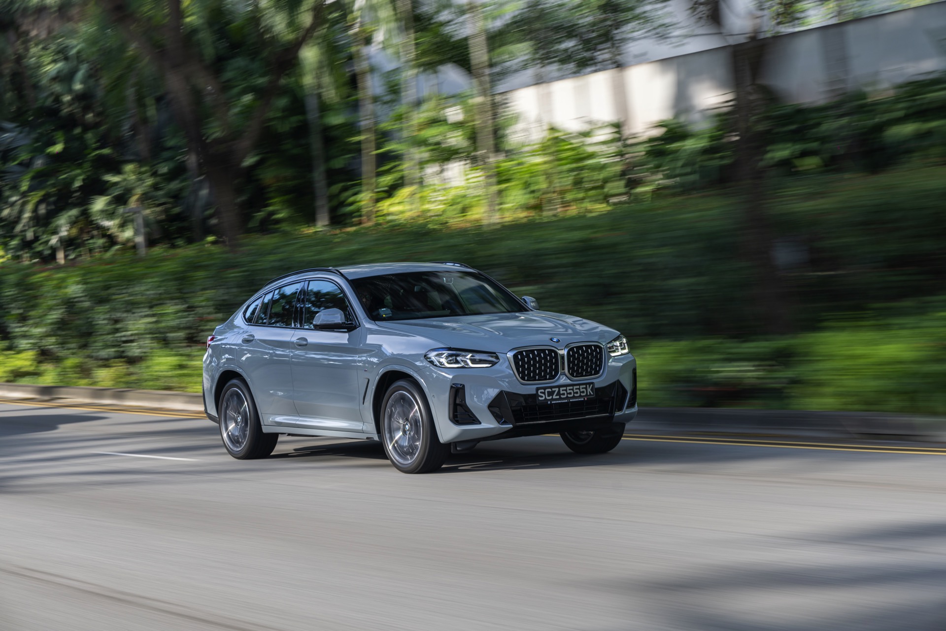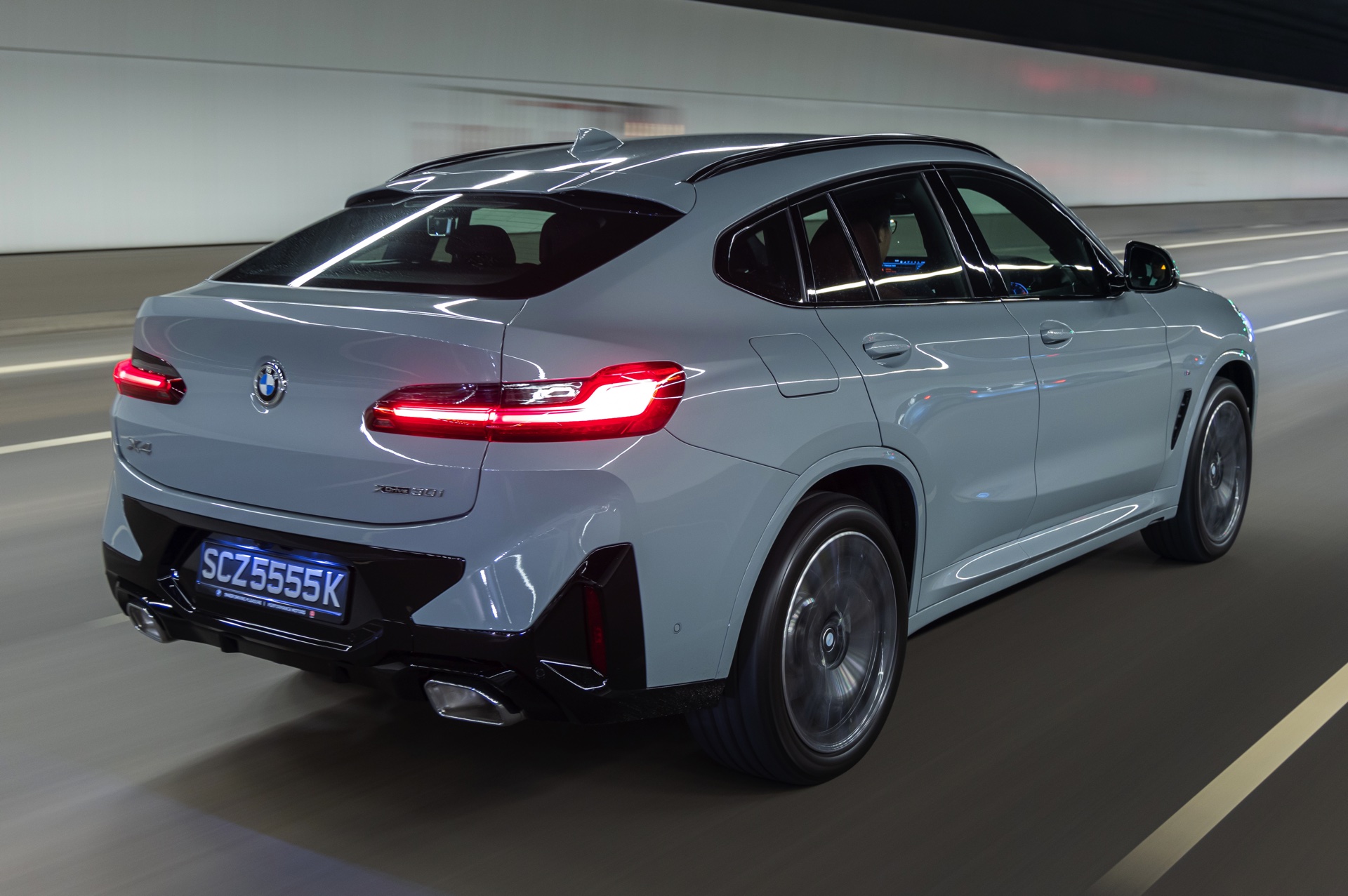Die aktuellen Fotos stammen aus Singapur und zeigen uns einen BMW X4 xDrive30i (G02 LCI) mit M Sport-Paket, Lackierung in Brooklyn Grey und den 20 Zoll großen Leichtmetallrädern Doppelspeiche 787 M Bicolor. Das rund 4,75 Meter lange SUV-Coupé auf X3-Basis bringt auch mit Vierzylinder-Benziner fast 1,9 Tonnen auf die Waage, woran allerdings auch das 48-Volt-Bordnetz inklusive zusätzlichem Startergenerator mit 8 kW oder 11 PS seinen Anteil hat. Beim 245 PS starken Benziner handelt es sich bereits um die ZIK-Variante des B48-Motors, die dank zylinderkopfintegriertem Krümmer noch strengere Kohlenmonoxid-Grenzwerte einhalten kann.