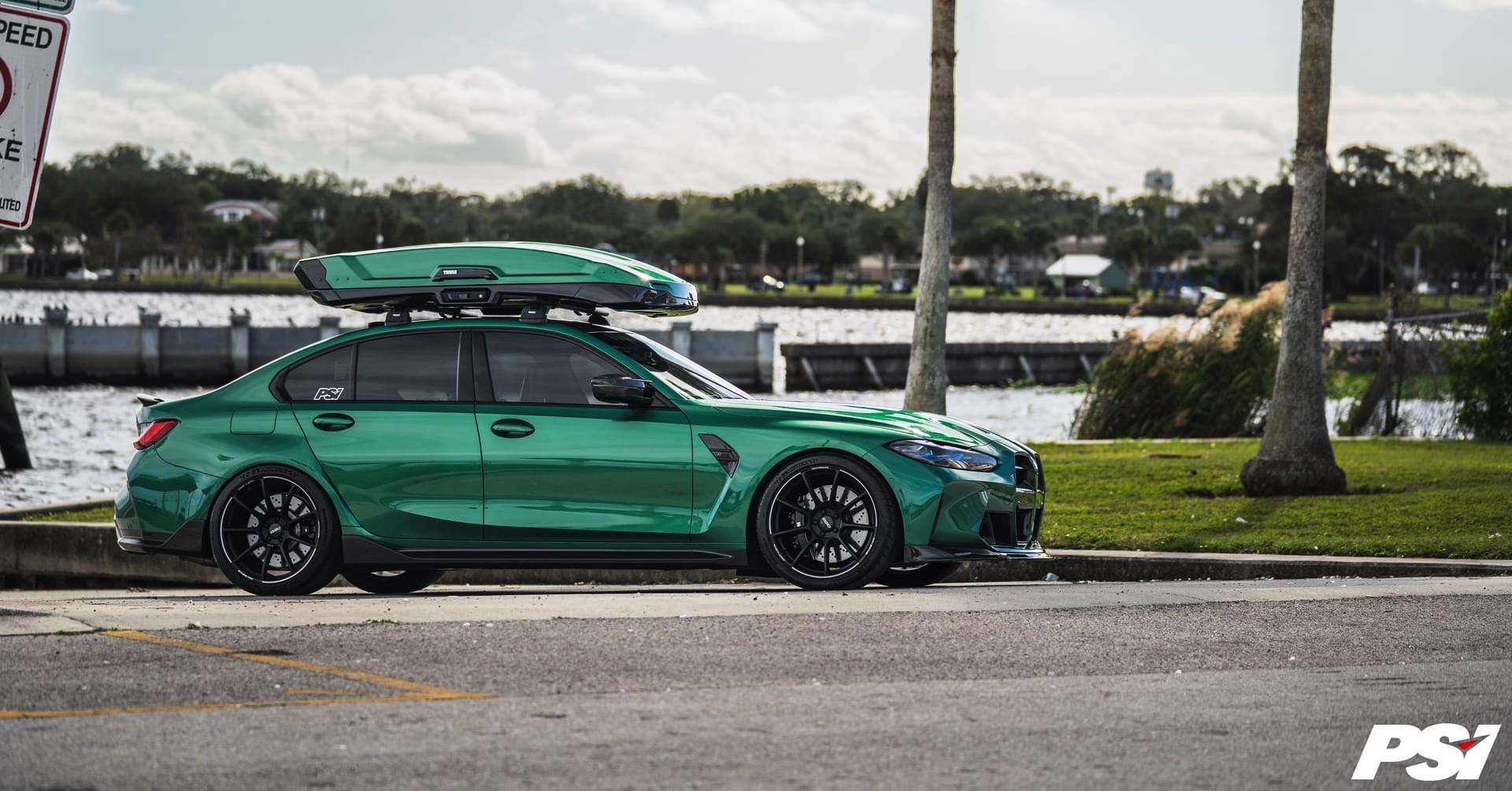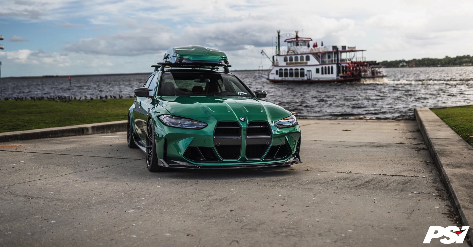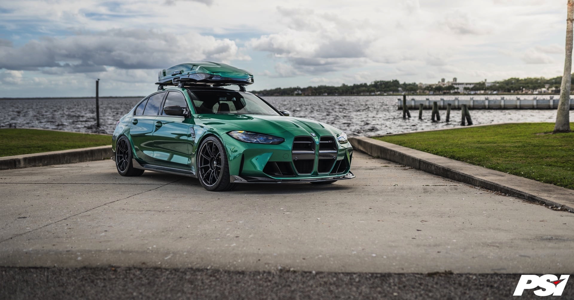 Wer nicht auf den BMW M3 Touring (G81) warten will, kann natürlich auch mit der Limousine einiges transportieren: Die aktuellen Fotos von Precision Sport Industries zeigen dabei die Option des zusätzlichen Stauraums zum Nachrüsten in Form einer Dachbox, die dank Lackierung in der Wagenfarbe Isle of Man Grün zum exklusiven Gesamtauftritt beiträgt.