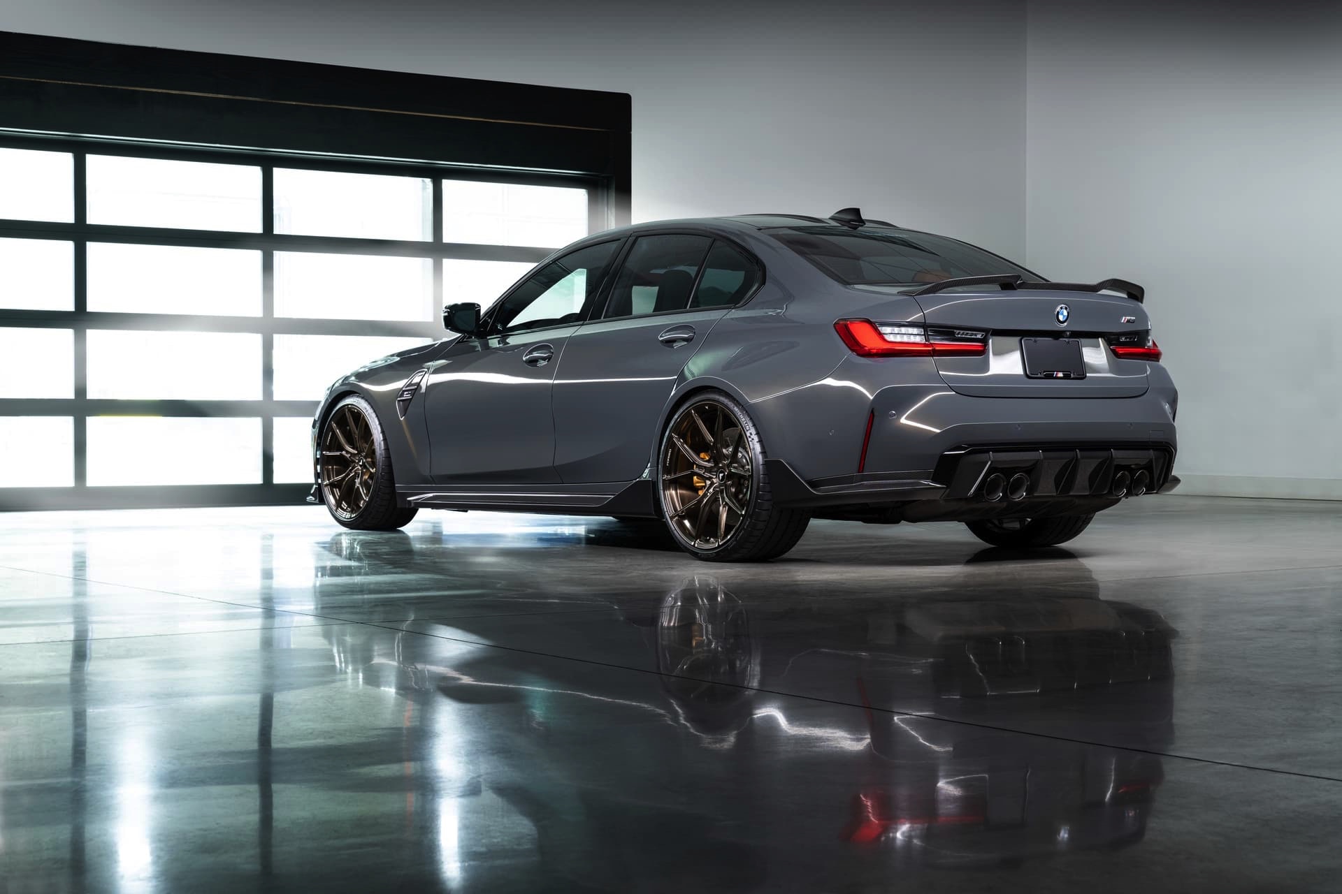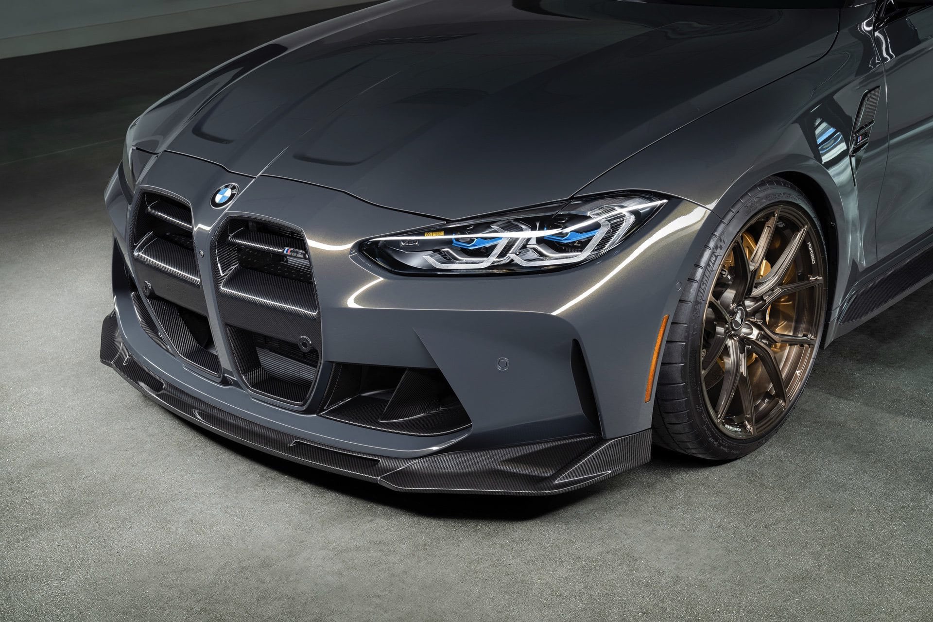 Neben den neuen Nieren umfasst das Tuning-Paket von Vorsteiner auch einen Frontsplitter und eine Heckspoiler-Lippe für die Kofferraum-Haube von M3 und M4. Letztere nimmt auf den ersten Blick den Look eines möglichen BMW M3 CS (G80) vorweg, denn mit ihrer starken Einkerbung in der Mitte erinnert sie nicht zufällig an eines der markantesten CS-Elemente der Vorgänger-Generation F80. Da die äußeren Bereiche aber auch unter- beziehungsweise durchströmt werden können, hat der Vorsteiner-Look durchaus einen eigenständigen Touch.